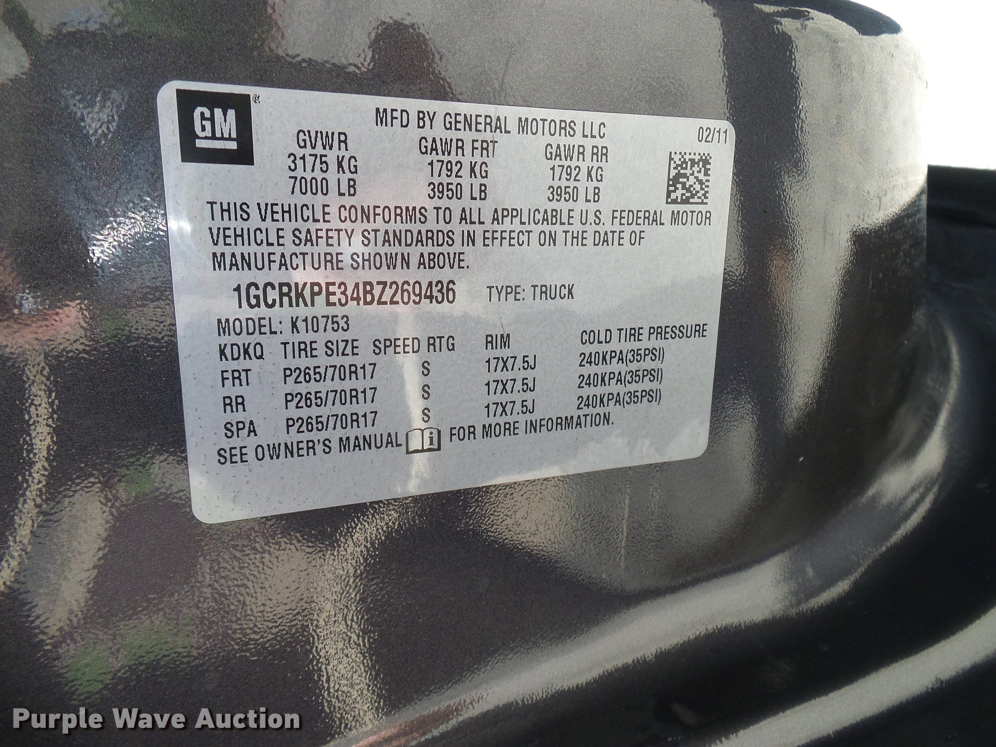 Purple Wave is selling a used 1/2 Ton Pickup or Van in Oklahoma. This item is a 2011 Chevrolet Silverado 1500 Ext. Cab pickup truck with the following: 105,202 miles on odometer, 5.3L V8 OHV 16V FFV gas engine, Automatic transmission, Four wheel drive, AC and heat, Tilt, Cruise, Power locks, windows, and mirrors, Vinyl interior, Front tow hooks, Grill guard, Trailer wiring, Receiver hitch, LT265/70R17 tires
