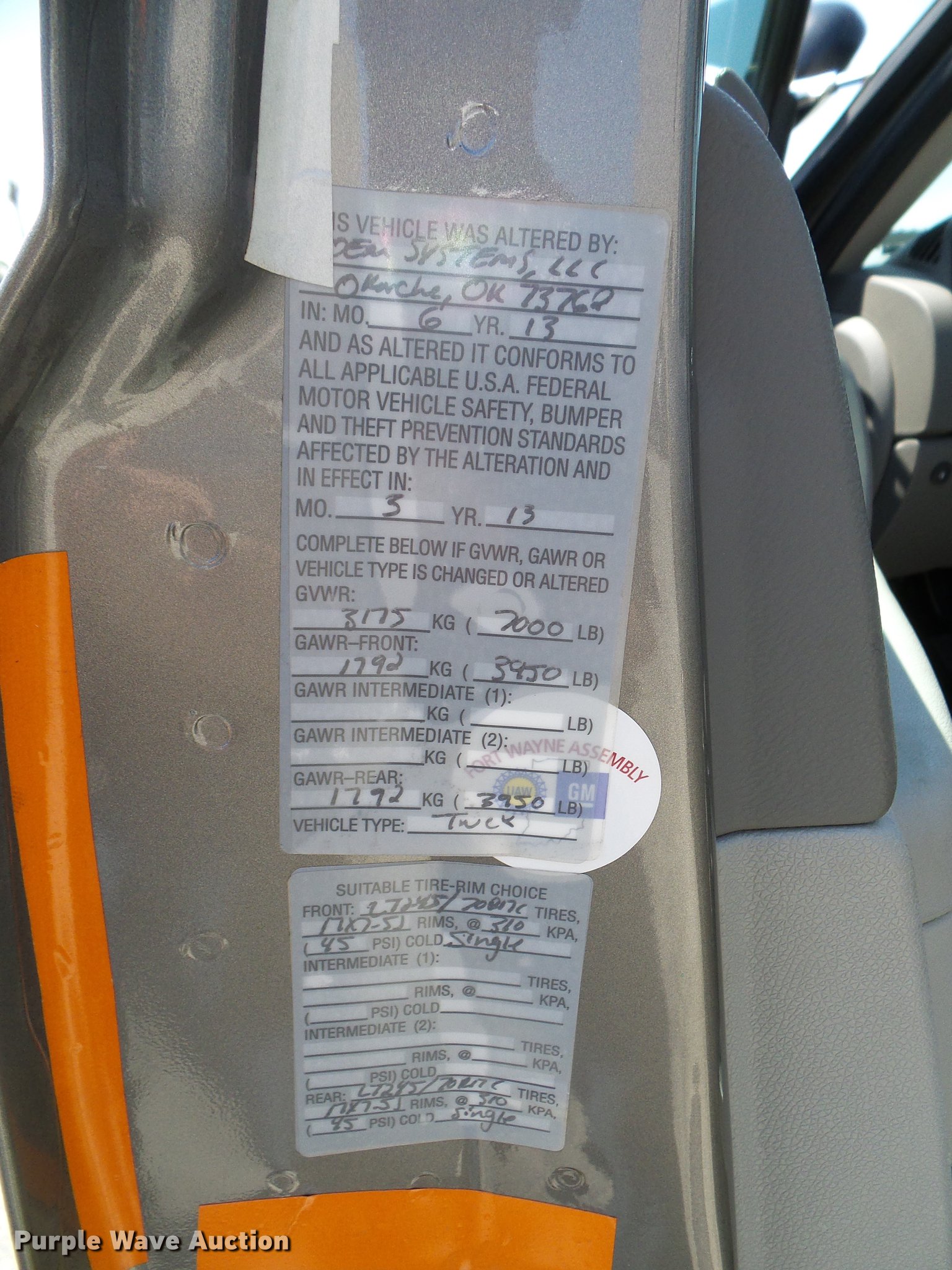 Purple Wave is selling a used 1/2 Ton Pickup or Van in Oklahoma. This item is a 2013 Chevrolet Silverado 1500 Ext. Cab pickup truck with the following: 103,147 miles on odometer, 5.3L V8 OHV 16V FFV dual fuel engine, Gas and CNG capable, Automatic transmission, Four wheel drive, AC and heat, Tilt, Cruise, Power locks, windows, and mirrors, Vinyl interior, Front tow hooks, Grill guard, Trailer wiring, Receiver hitch, LT265/70R17 tires, Check engine light on, Code P0446 - Evaporative Emission Control System Vent Control Circuit Malfunction