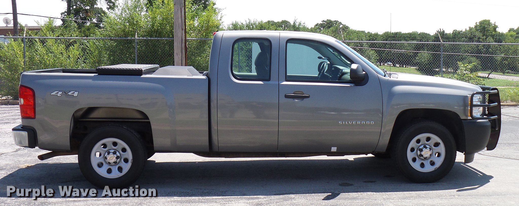 Purple Wave is selling a used 1/2 Ton Pickup or Van in Oklahoma. This item is a 2013 Chevrolet Silverado 1500 Ext. Cab pickup truck with the following: 114,622 miles on odometer, 5.3L V8 OHV 16V FFV dual fuel engine, Gas and CNG capable, Automatic transmission, Four wheel drive, AC and heat, Tilt, Cruise, Power locks, windows, and mirrors, Vinyl interior, Front tow hooks, Grill guard, Trailer wiring, Receiver hitch, 265/70R17 tires