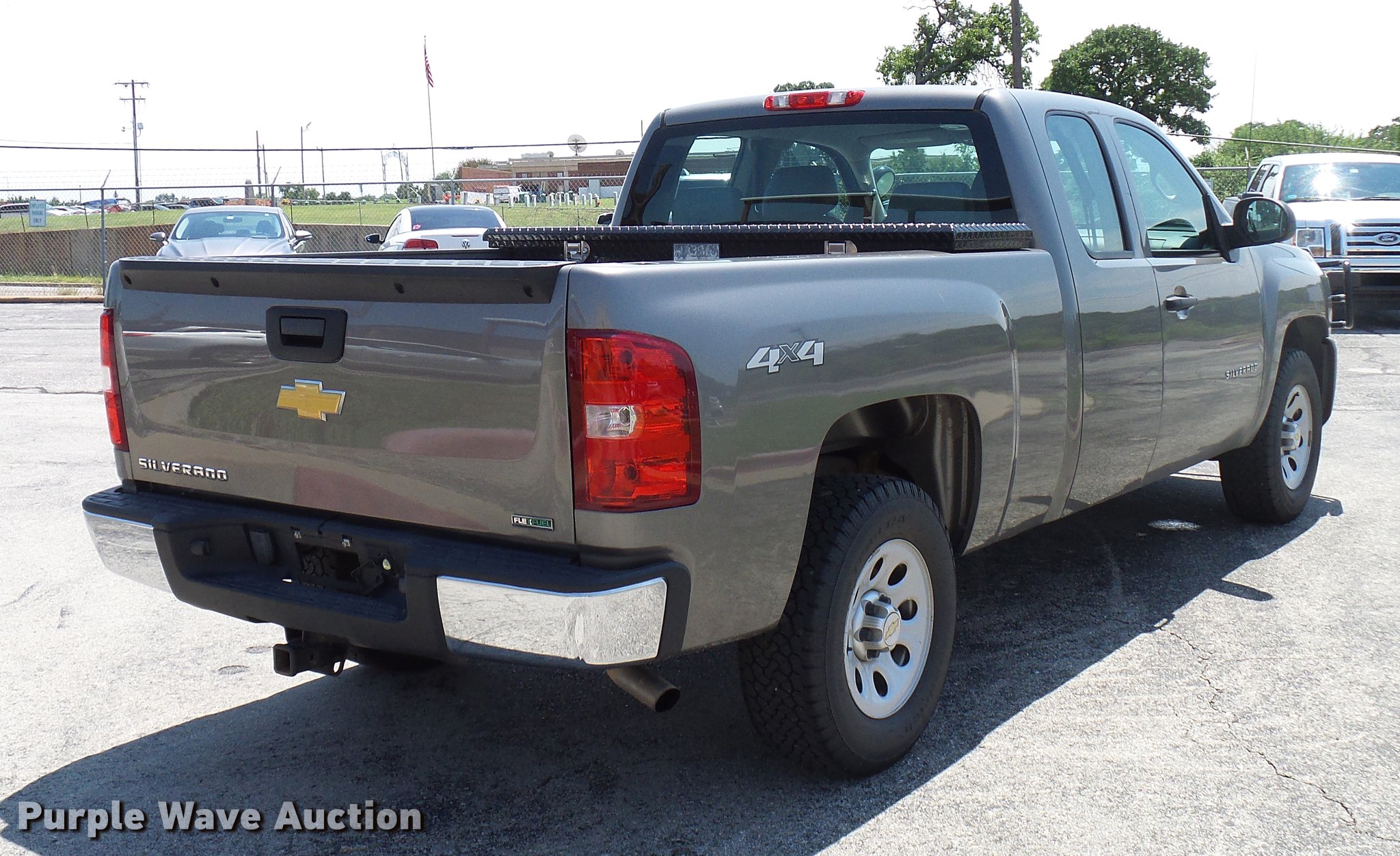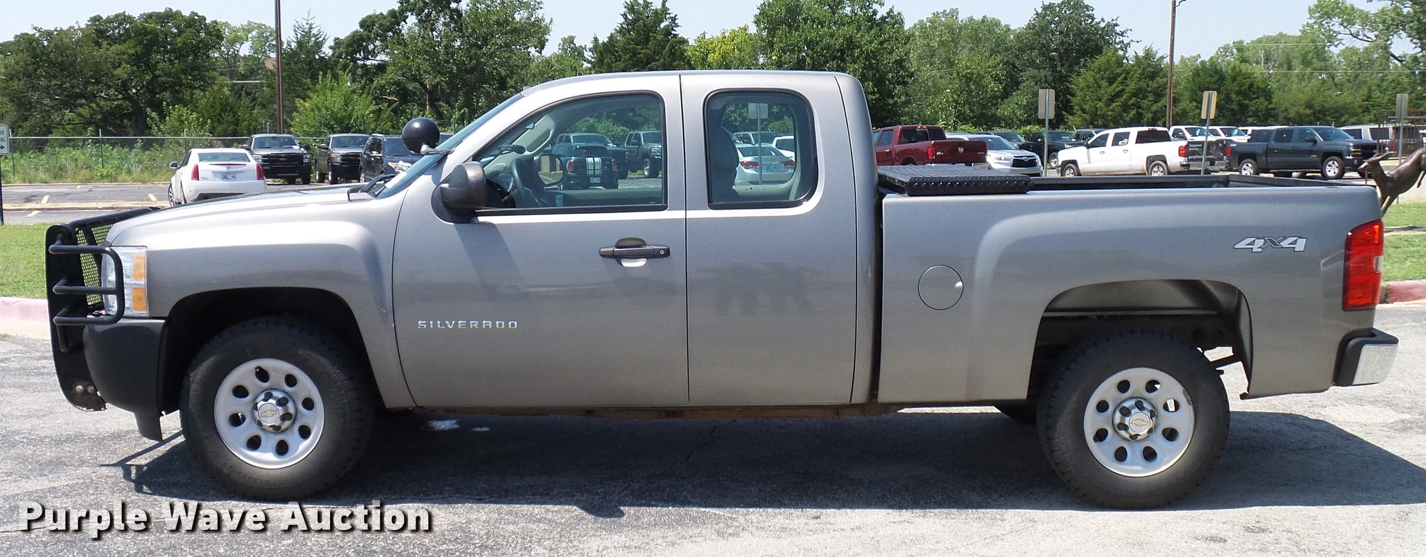 Purple Wave is selling a used 1/2 Ton Pickup or Van in Oklahoma. This item is a 2012 Chevrolet Silverado 1500 Ext. Cab pickup truck with the following: 99,190 miles on odometer, 5.3L V8 OHV 16V FFV gas engine, Automatic transmission, Four wheel drive, AC and heat, Tilt, Cruise, Power locks, windows, and mirrors, Vinyl interior, Front tow hooks, Grill guard, Trailer wiring, Receiver hitch, LT265/70R17 tires