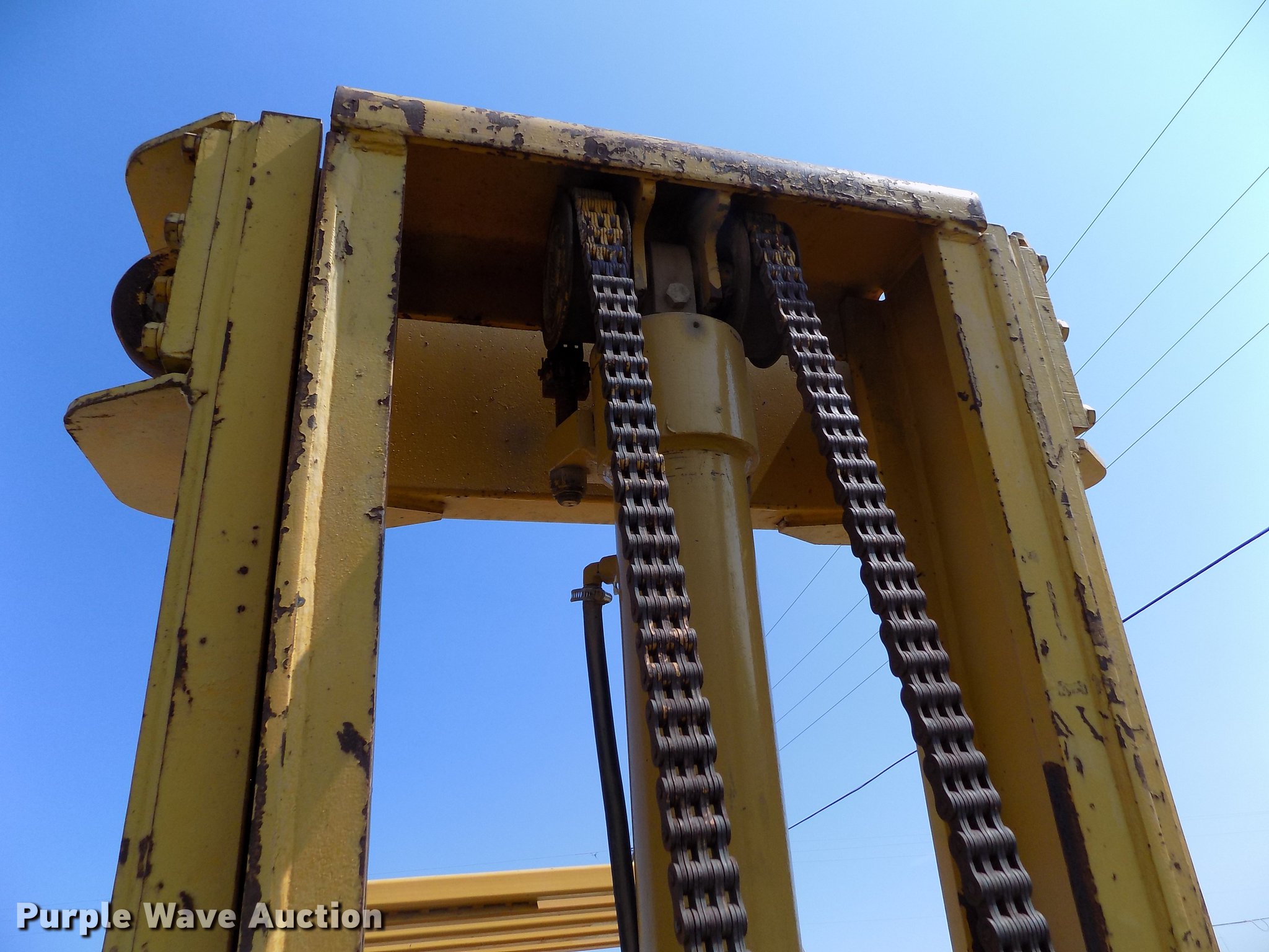 Caterpillar V120 forklift. 2,946 hours on meter, Four cylinder gas engine, Shuttle shift transmission 1F-1R gears, OROPS, 12,000 lbs max lift capacity, 146' max lift height, Two stage mast Mast tilt, 54" fork length, 8.25-15 tires, Non-operational unit, Serial 60W270. Foley Equipment. 1600 E Wyatt Earp Blvd. Dodge City, KS 67801