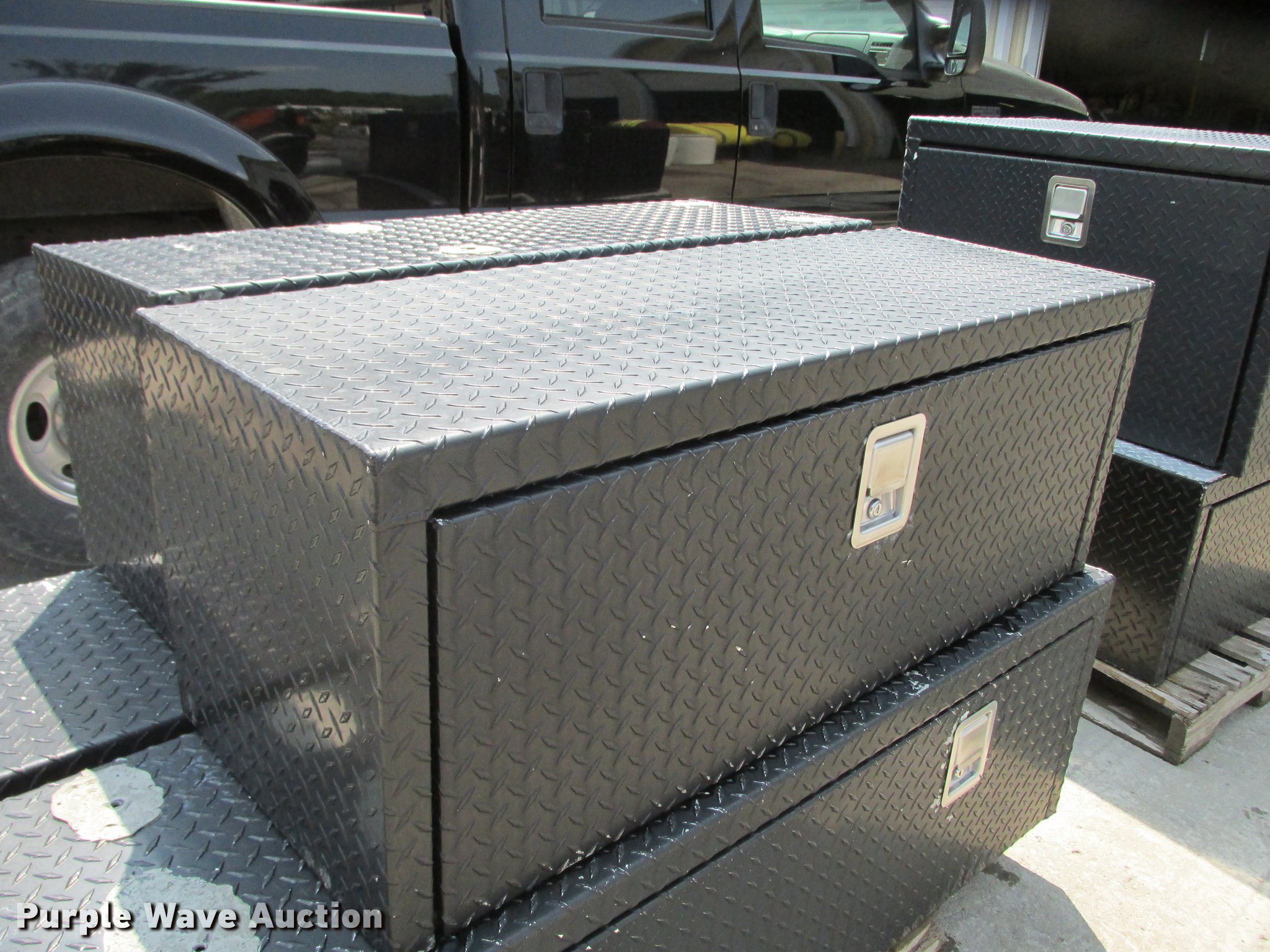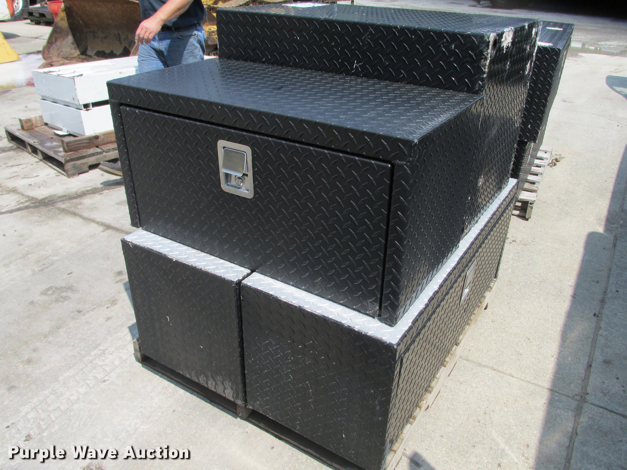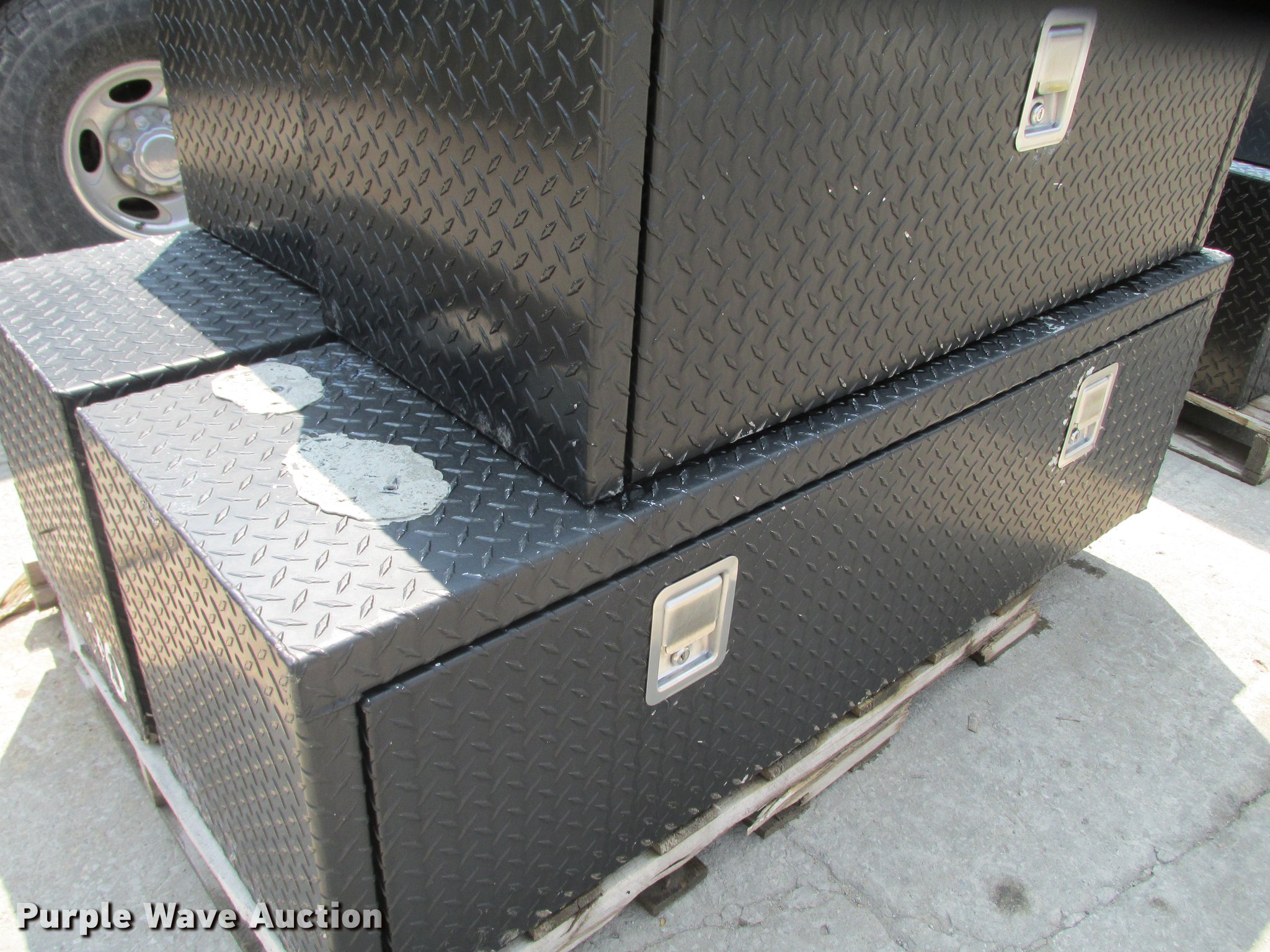 Purple Wave is selling a used Automotive Parts or Acces. in Missouri. This item is a (8) Weatherguard aluminum tread plate toolboxes with the following: 36" x 24" x 24", 36" x 18" x 18", (4) 48" x 18" x 18", (2) 60" x 18" x 18"