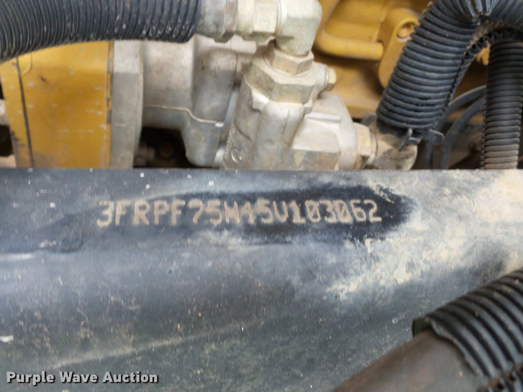 Purple Wave is selling a used Construction Dump Truck in Missouri. This item is a 2005 Ford F750 Super Duty dump truck with the following: 50,120 miles on odometer, Caterpillar C7 six cylinder turbo diesel engine, 210 HP, Serial KA142191, Six speed manual transmission, Single axle, AC and heat, AM/FM, Suspension seat, Brake controller, Chrome bumper, PTO, Ledwell LW5/6BD steel dump bed, 10'L, 28" side height, 6" side board height, Single ram hoist, Manual end gate, Serial 020401675-47, Single fuel tank, Pintle hitch, Trailer wiring, Spring suspension, Air brakes, 10R22.5 tires, GVWR 31,000 lbs, FAWR 10,000 lbs, RAWR 21,000 lbs, Unit# 38