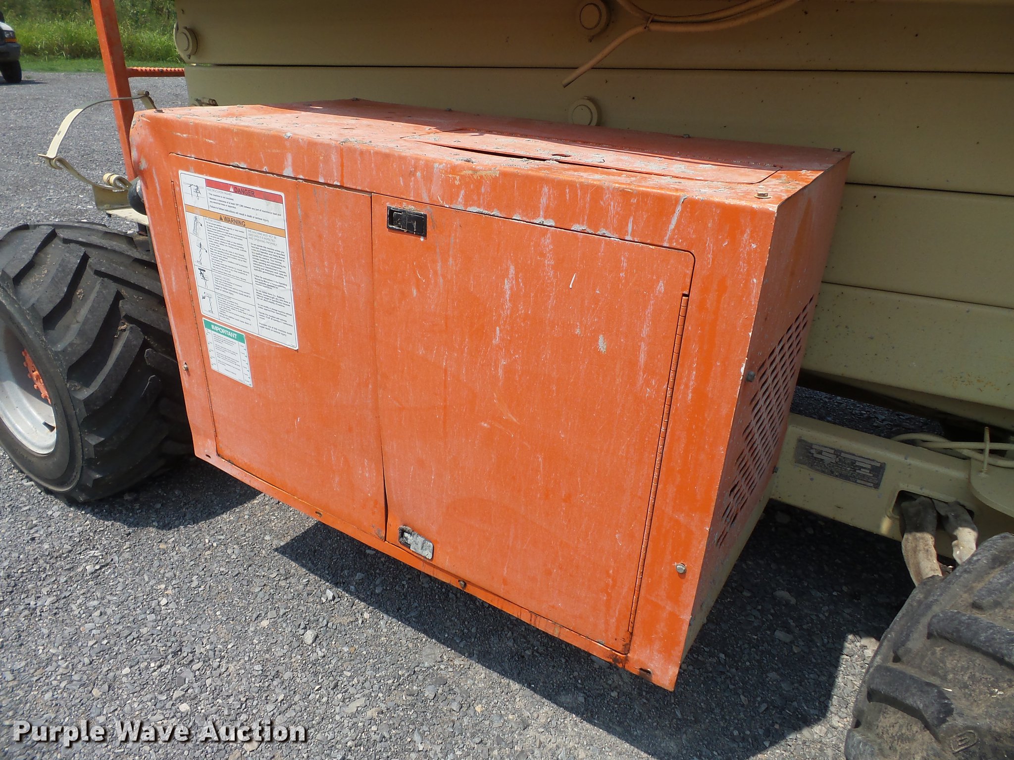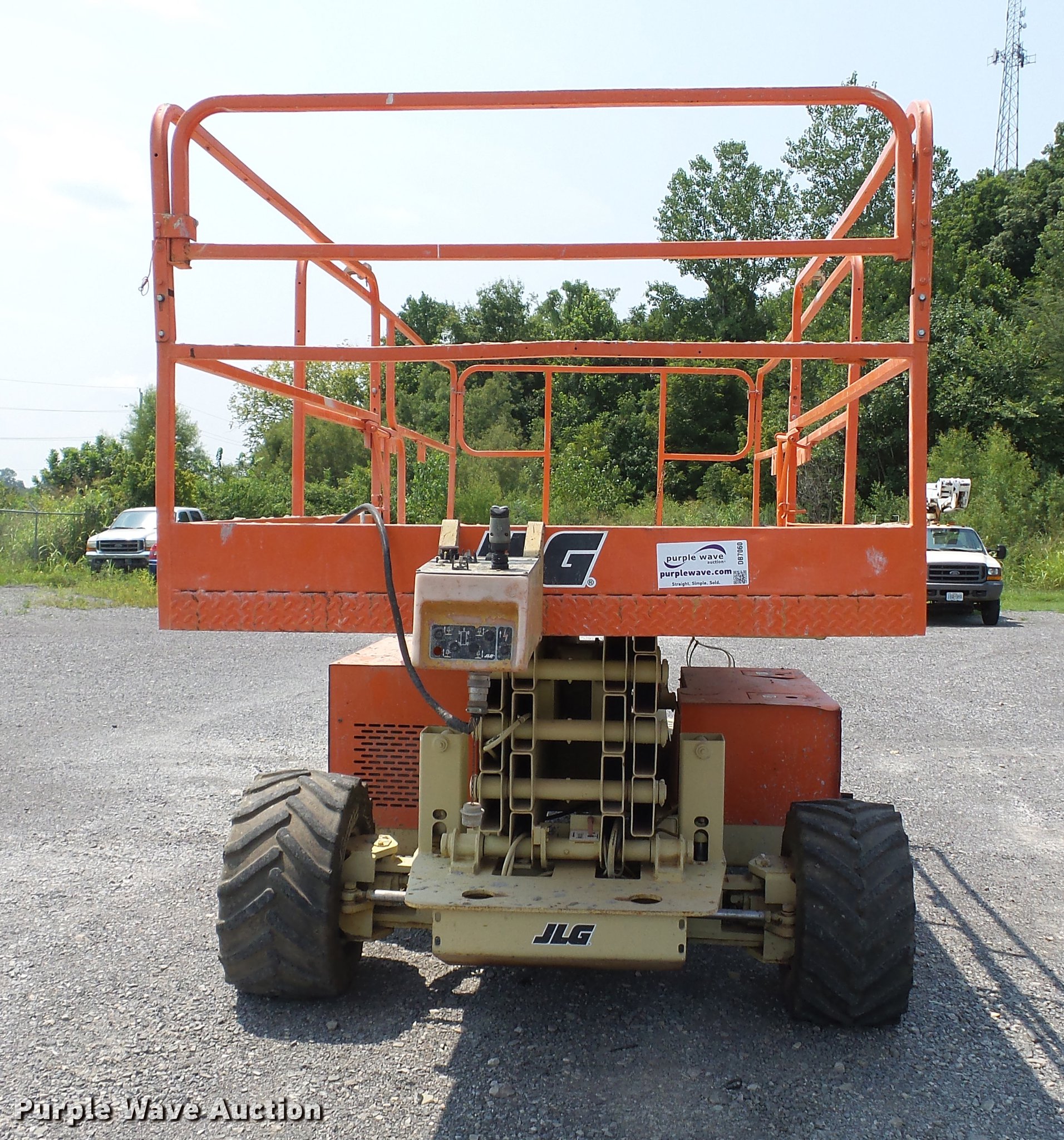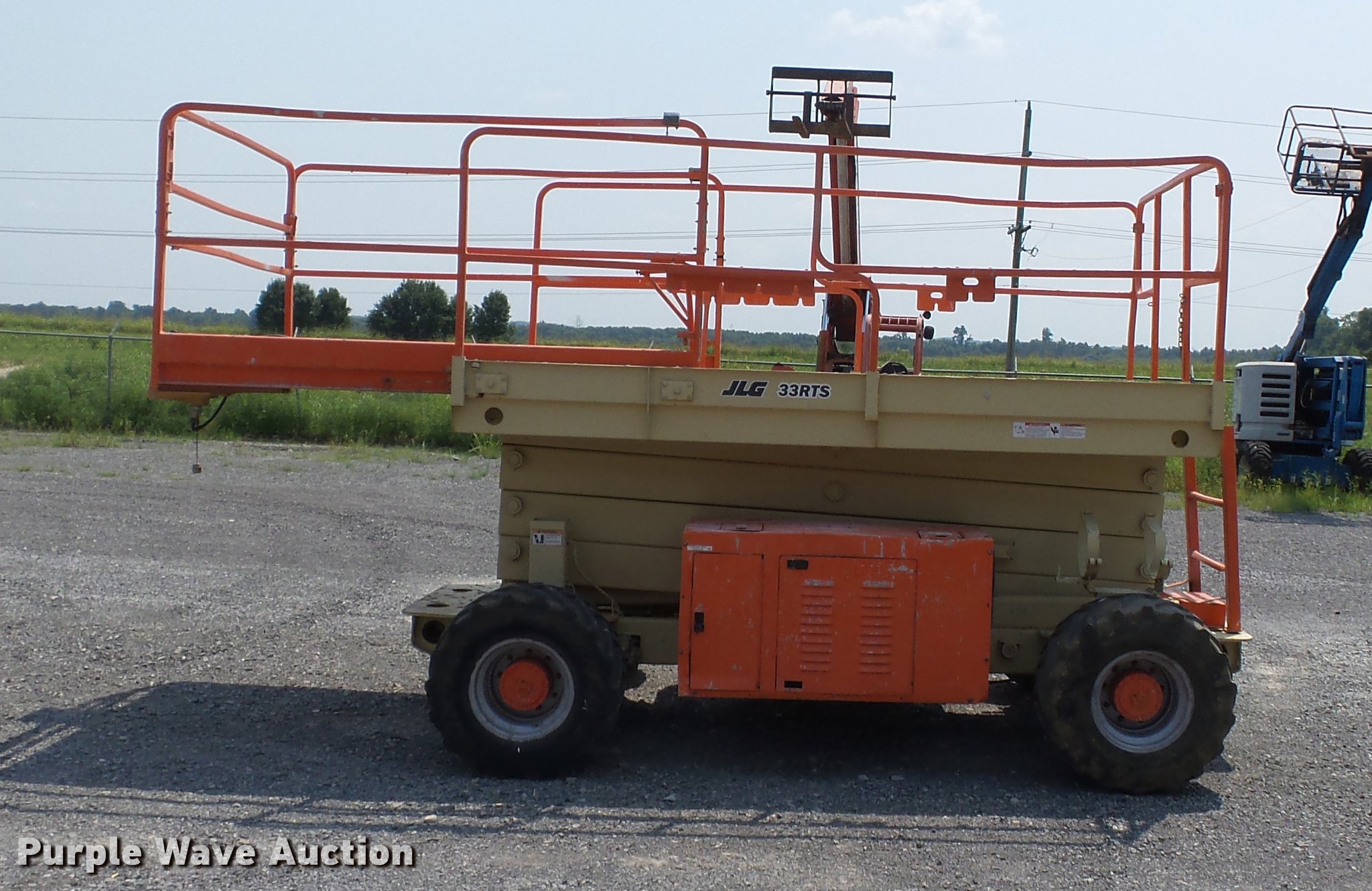 Purple Wave is selling a used Scissor or Vertical Lift in Missouri. This item is a JLG 33RTS scissor lift with the following: 6,224 hours on meter, 2.3L four cylinder dual fuel engine, Four wheel drive, 500 lbs maximum lift capacity, 33' maximum lift height, 10.5'L x 6'W platform, Ground and platform controls, Manual platform extensions, 31 x 15.5 x 15NHS pneumatic tires, Serial 0030071-0200024479