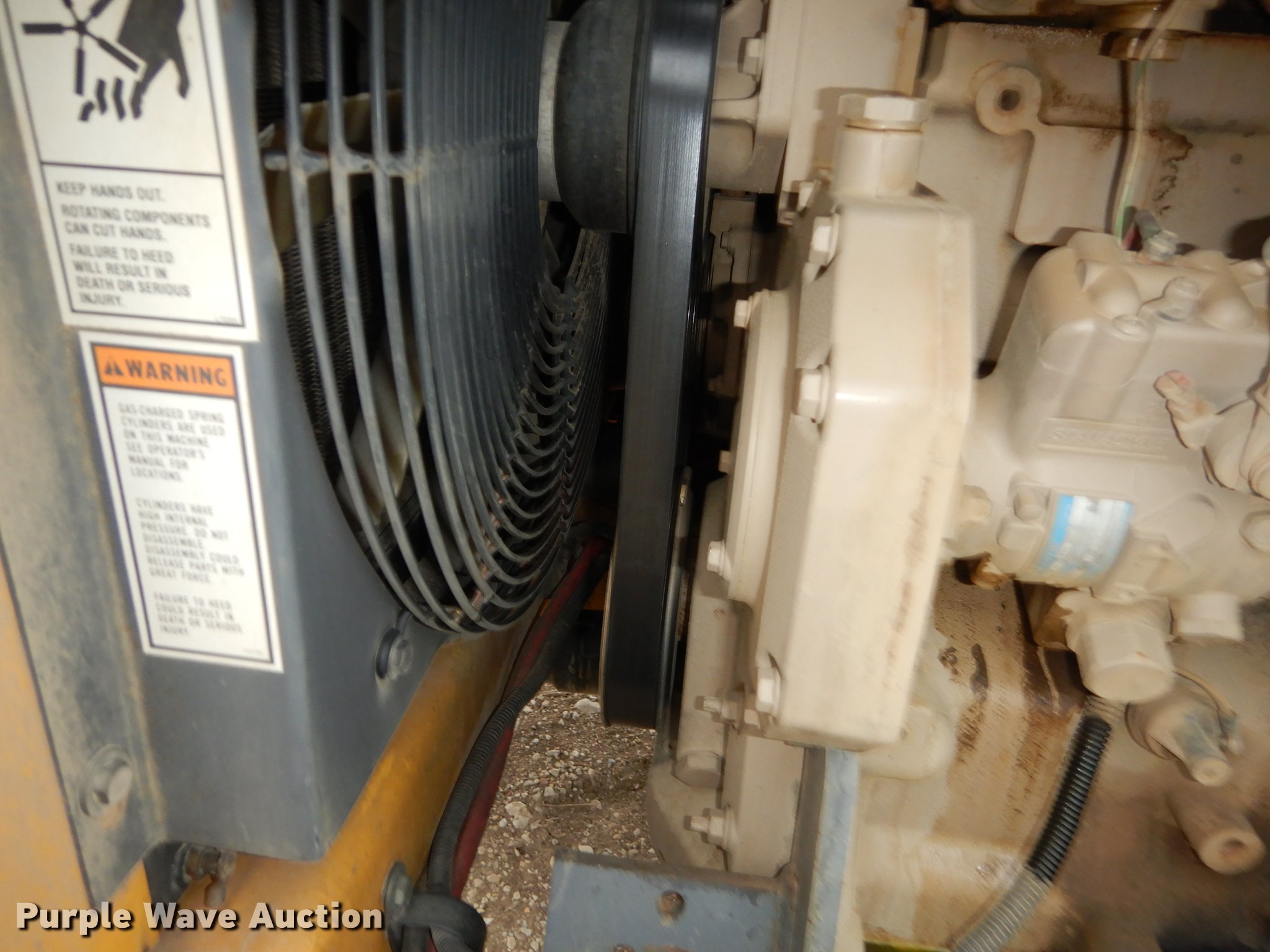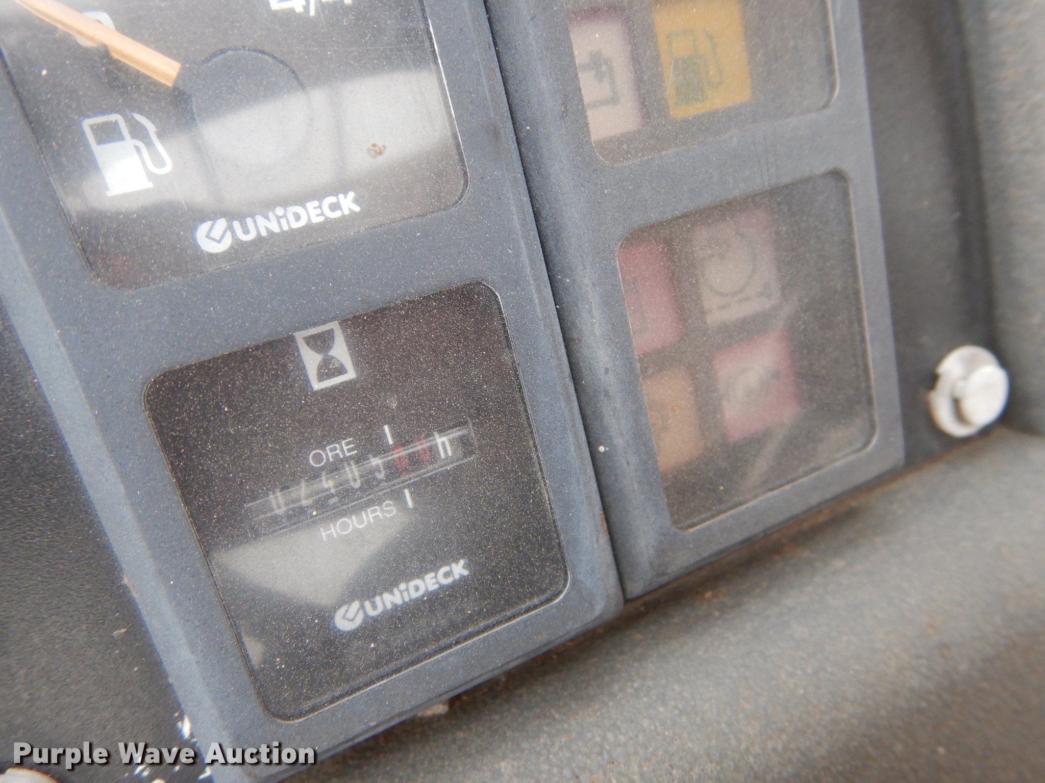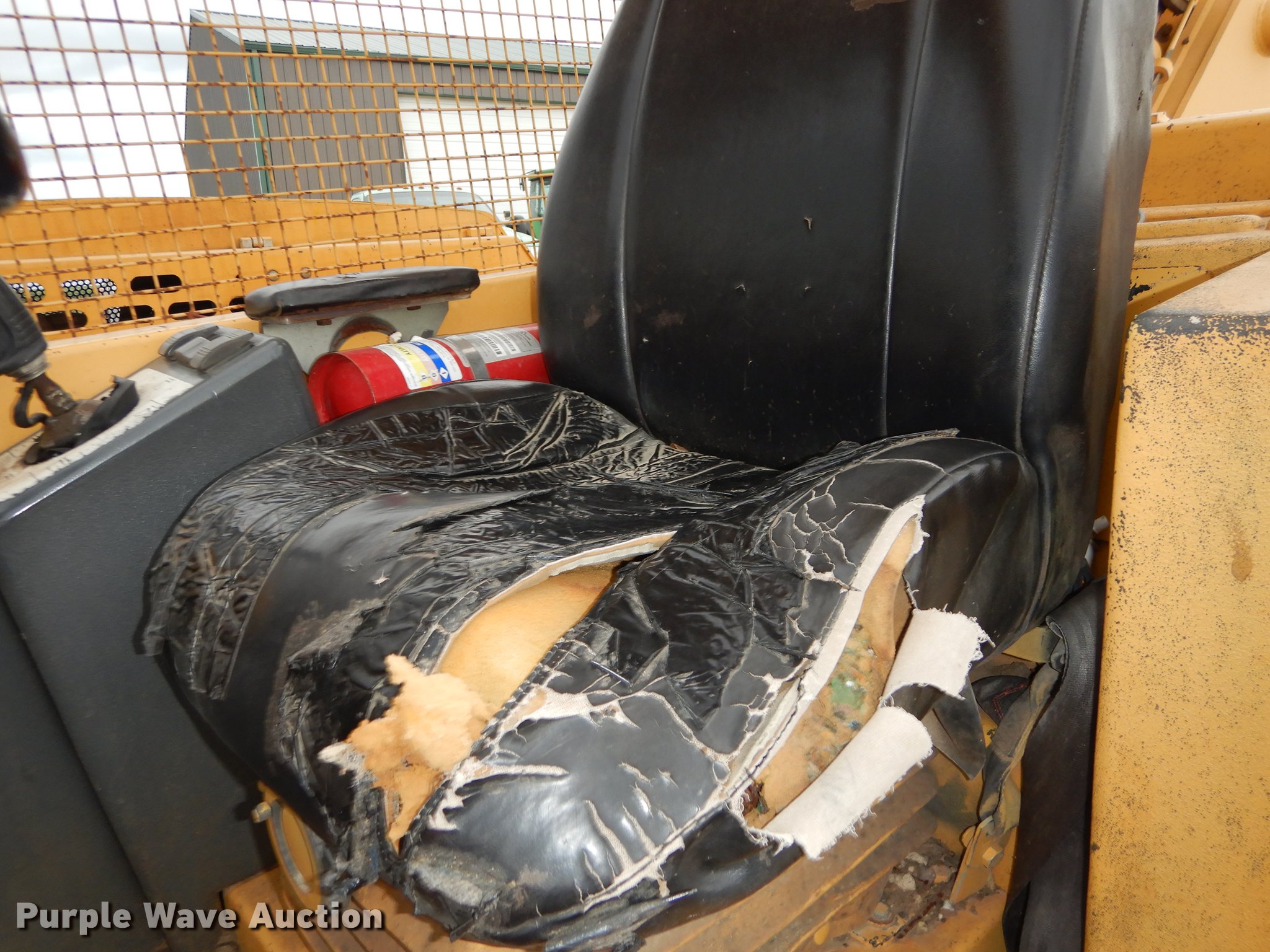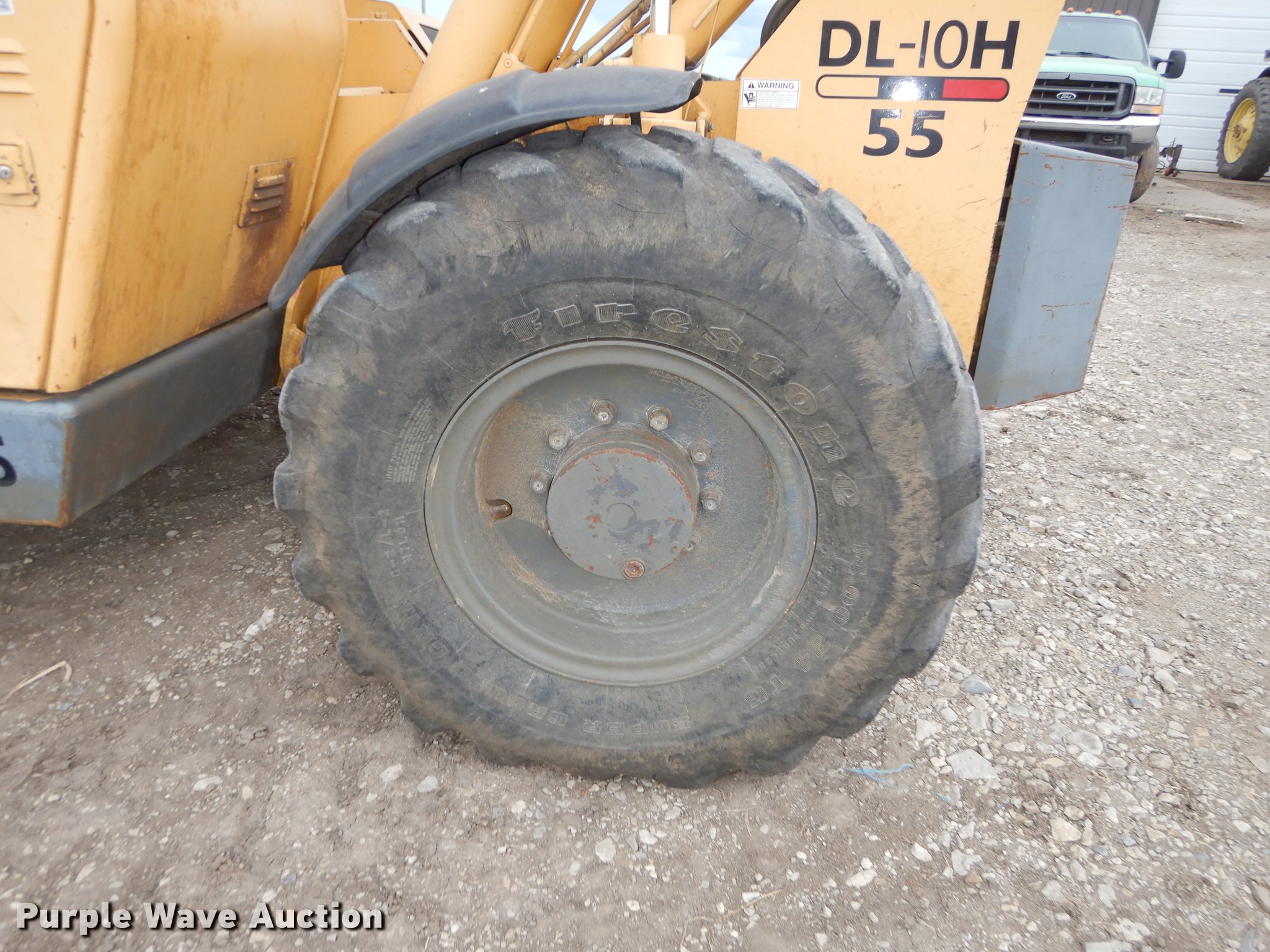 Purple Wave is selling a used Telehandler in Kansas. This item is a Gehl DL10H-55 telehandler with the following: 2,405 hours on meter, John Deere four cylinder turbo diesel engine, Four wheel drive, OROPS, Tilt cab, 10,000 lbs maximum lift capacity, 55' maximum lift height, 45' maximum reach, Three boom stages, 4'L x 4"W forks, Hydraulic outriggers, counter weights, 14.00-24 tires, Battery weak, Hood damaged, Hose leaking antifreeze