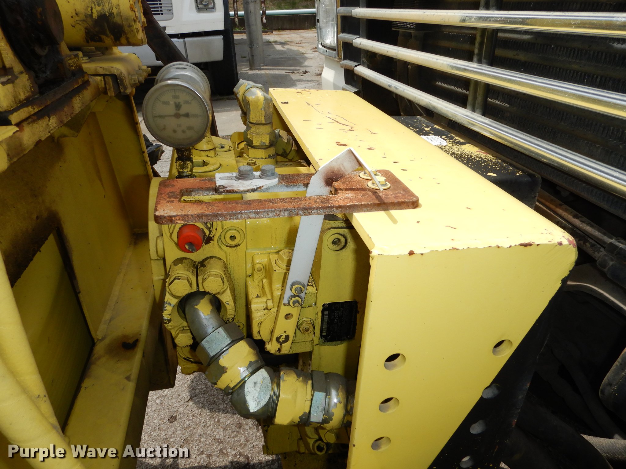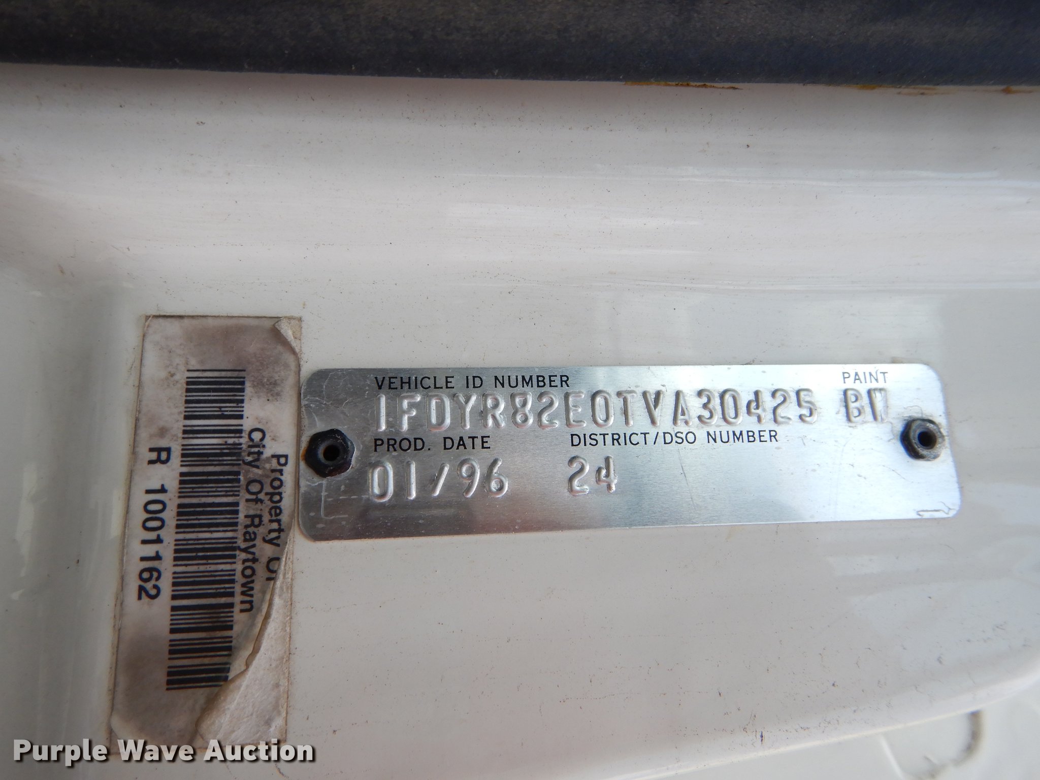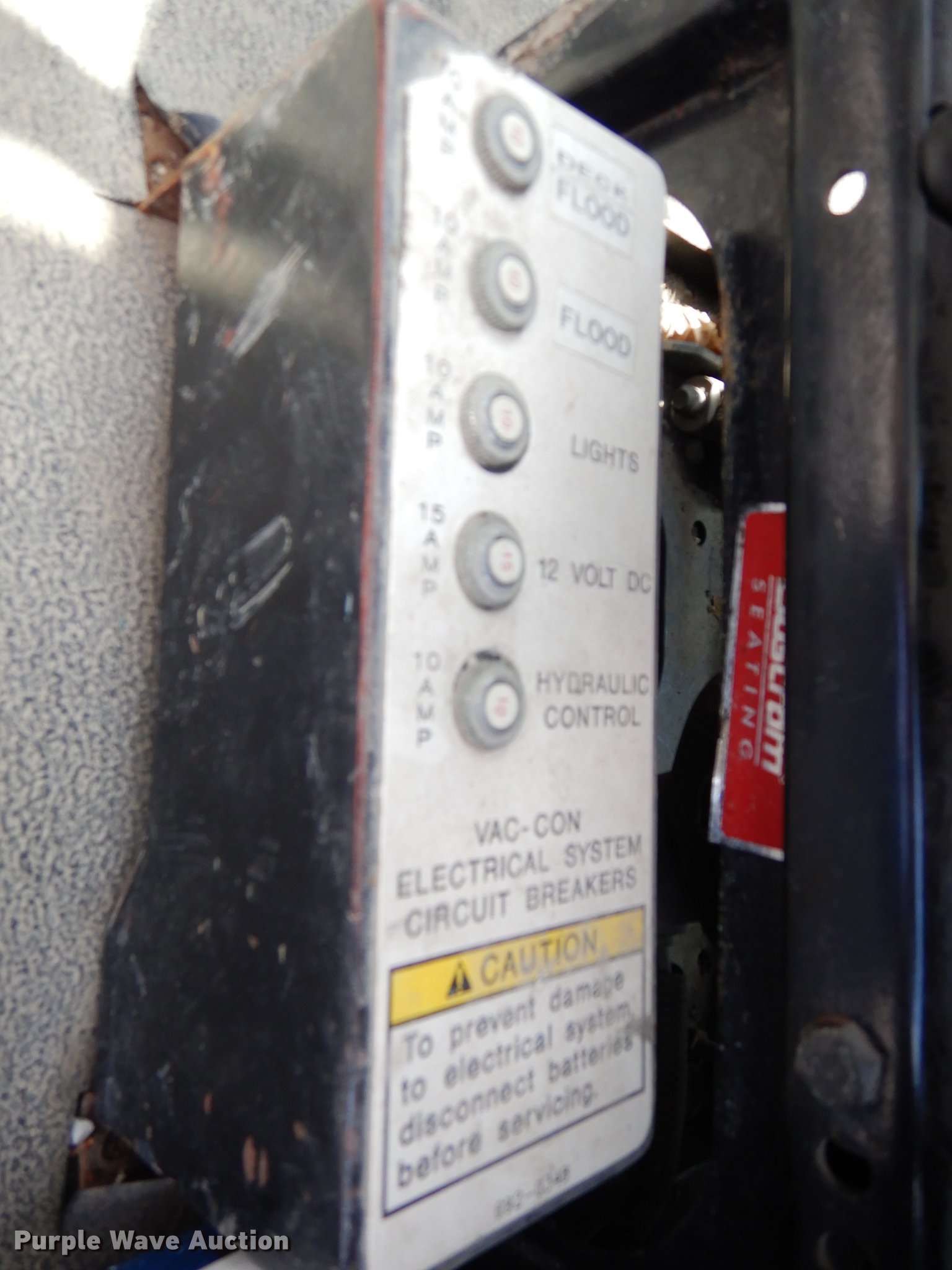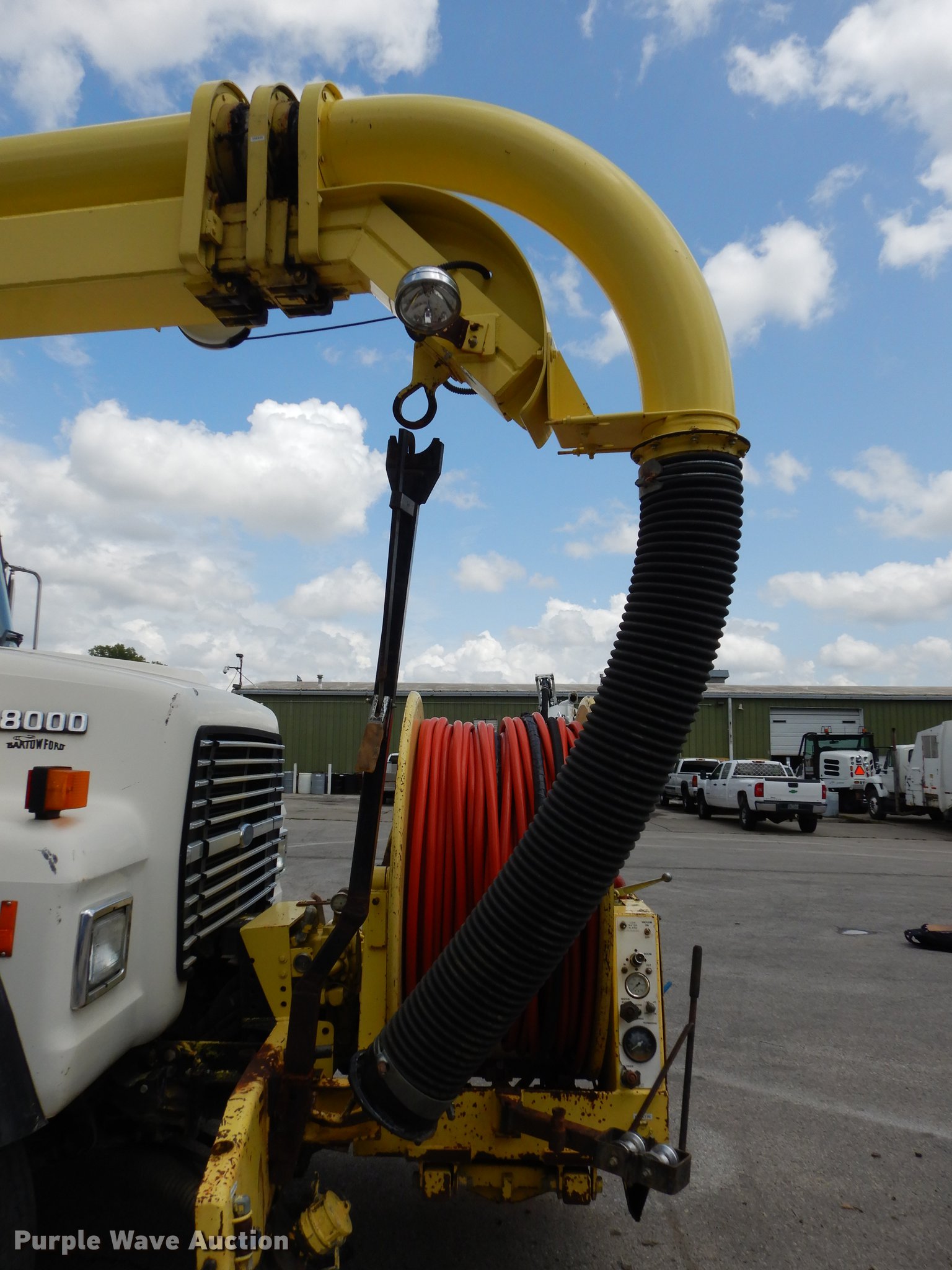 Purple Wave is selling a used Vacuum Truck in Kansas. This item is a 1996 Ford LN8000 vacuum truck with the following: 32,549 miles on odometer, 5,618 hours on meter, Cummins 8.3L L6 diesel engine, Allison automatic trasnmission, Heat, AM/FM, Vacuum unit, 255 hours on meter, John Deere diesel engine, Serial T04039T527934, Storage boxes, Nine cu.yd. debris tank, 1,000 gallon water tank, 65 gallon per minute capacity at 3,000 psi, 10' to 22' boom reach, Hose reel, 600' hose, Arrow board, Work lights, Dual fuel tanks, 224" wheelbase, Spring suspension, Air brakes, 315/65R22.5 front tires, 11R22.5 rear tires, GVWR 45,000 lbs, FAWR 18,000 lbs, RAWR 23,000 lbs