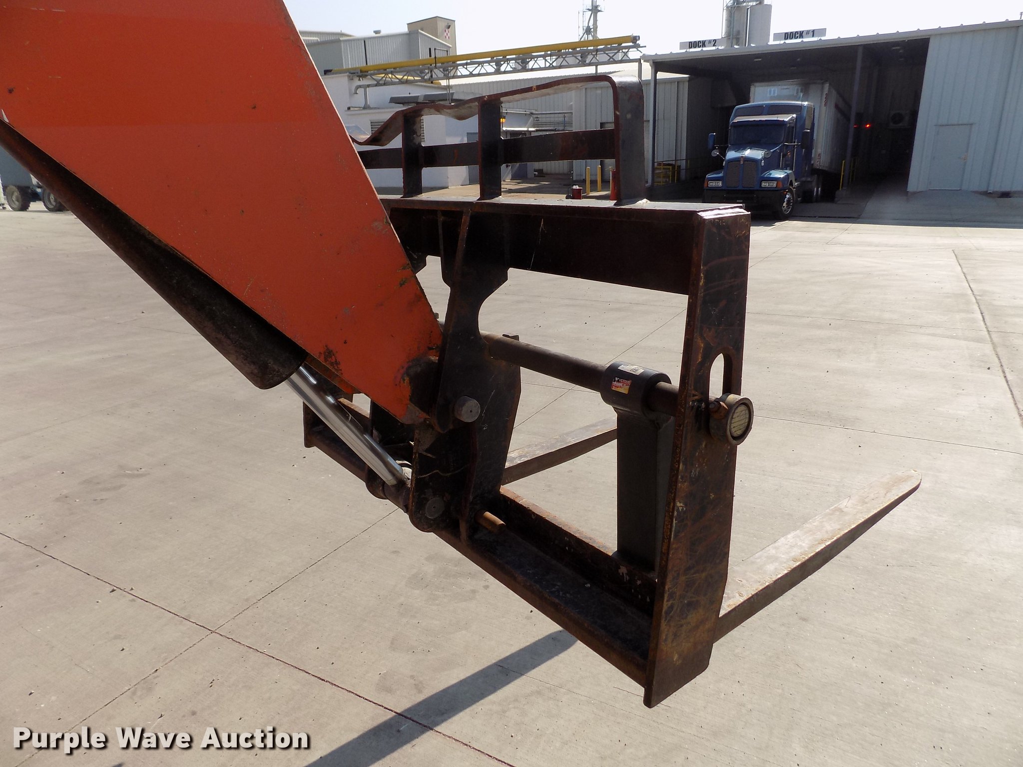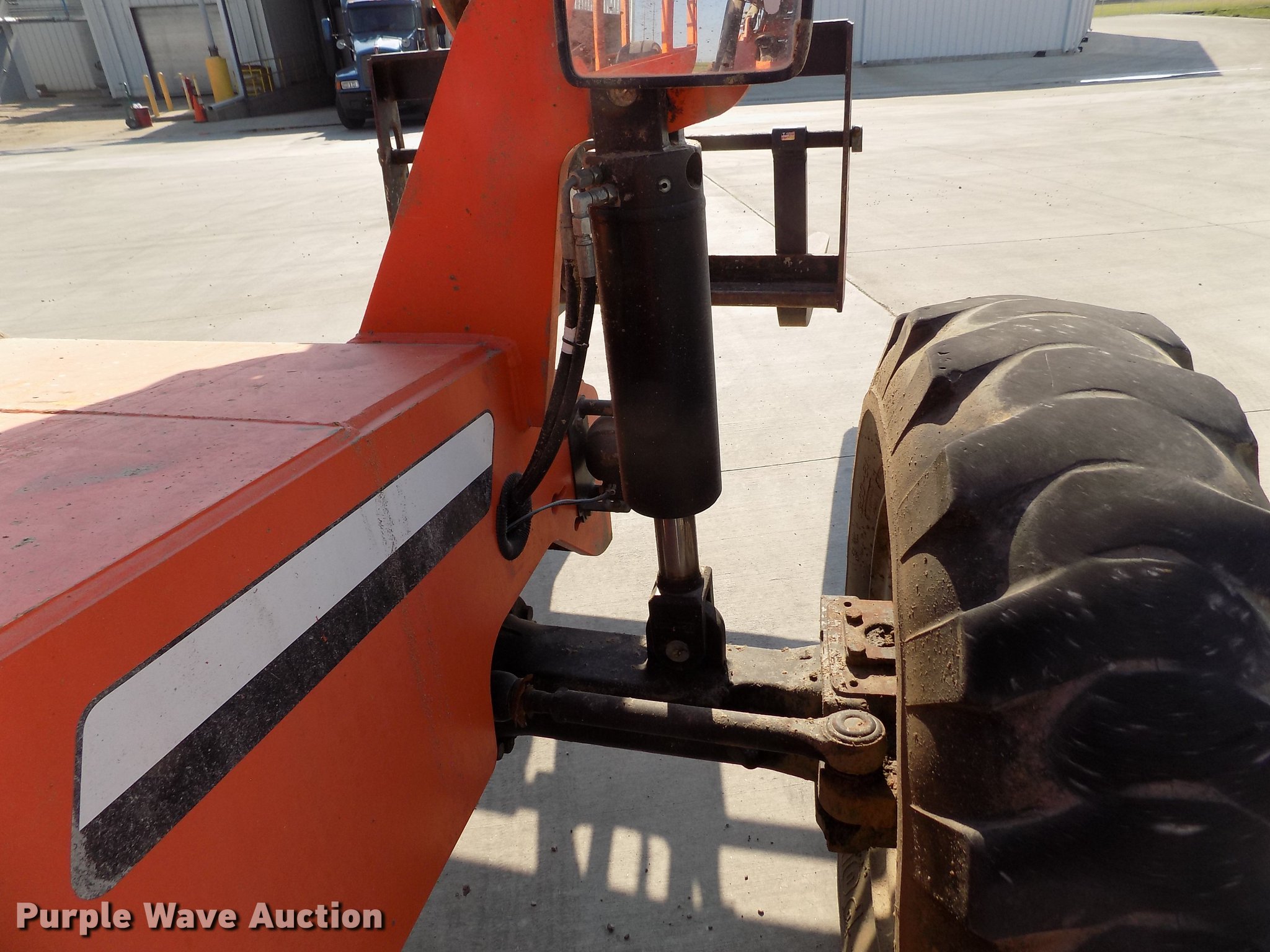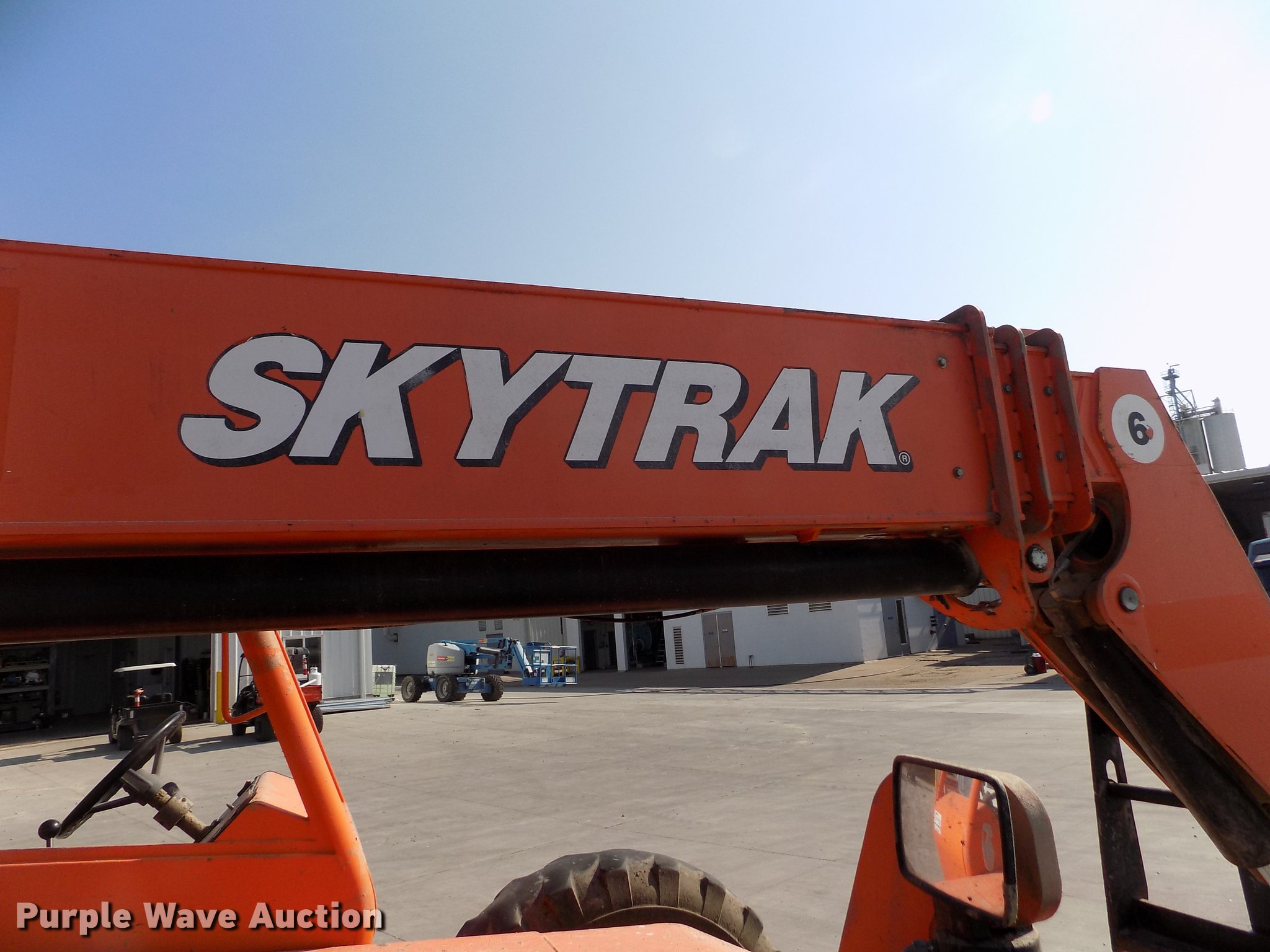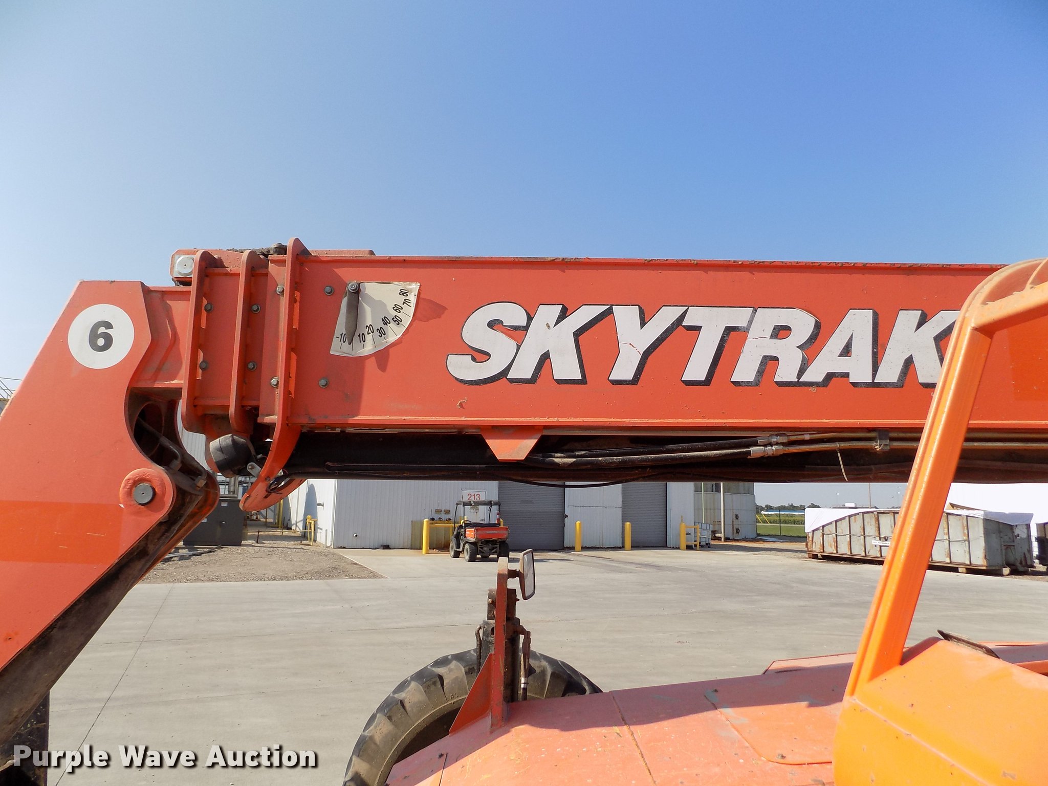 Purple Wave is selling a used Telehandler in Kansas. This item is a 2008 SkyTrak 6042 telehandler with the following: Cummins B4.5 4.5L four cylinder turbo diesel engine, 99 HP, Serial 30246714, Powershift transmission, 4F-4R gears, Four wheel drive, Crab steer, Four wheel steer, OROPS, Tilt cab, Work lights, Backup alarm, 6,000 lbs maximum lift capacity, 42' maximum lift height, 28' maximum reach, Three stage boom, 48"L forks, Tilt carriage, Hydraulic leveling, 13.00-24 tires, Serial 0160032741