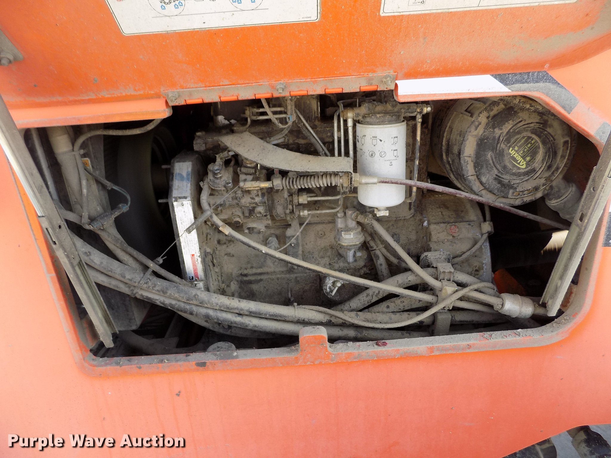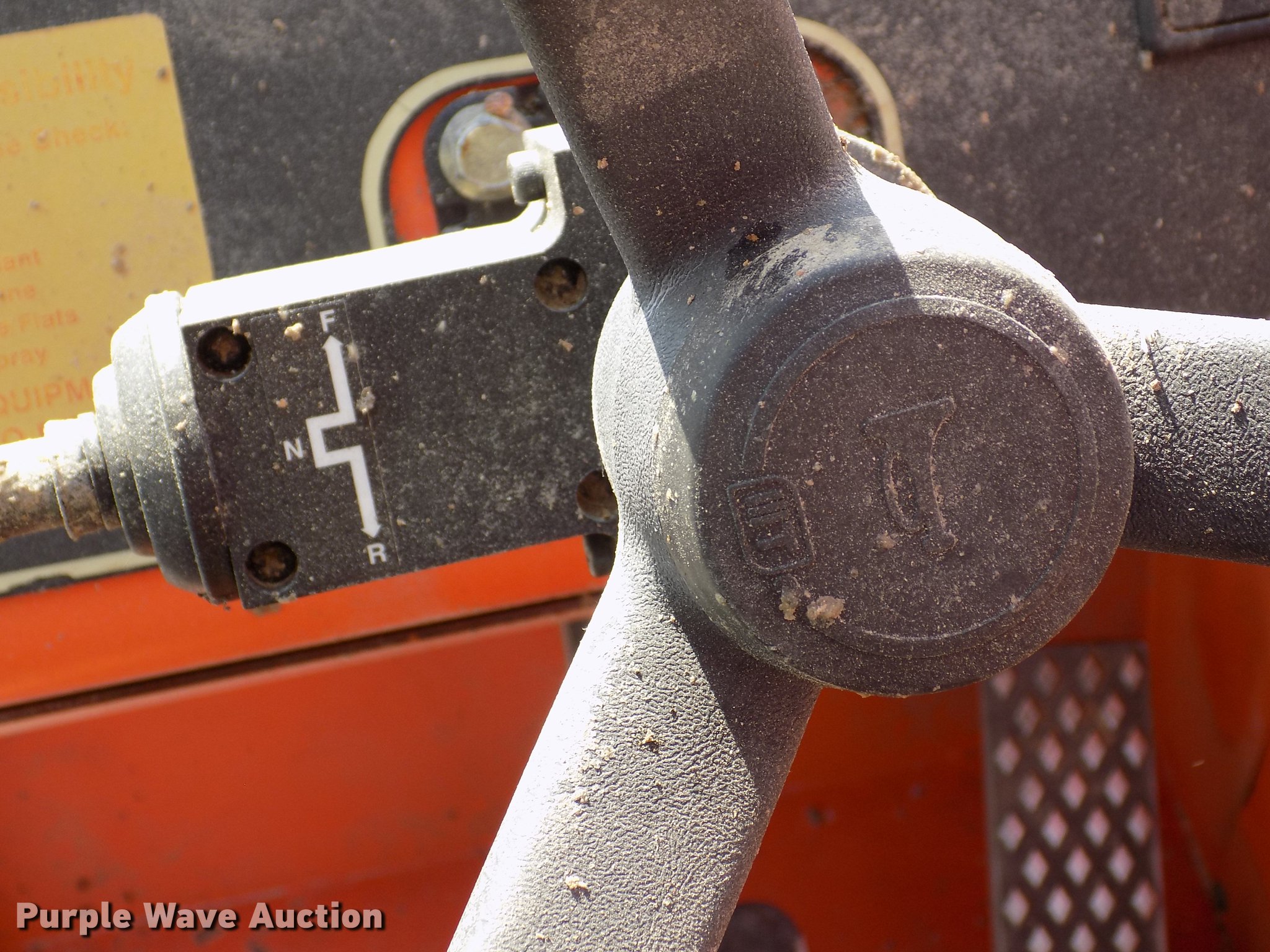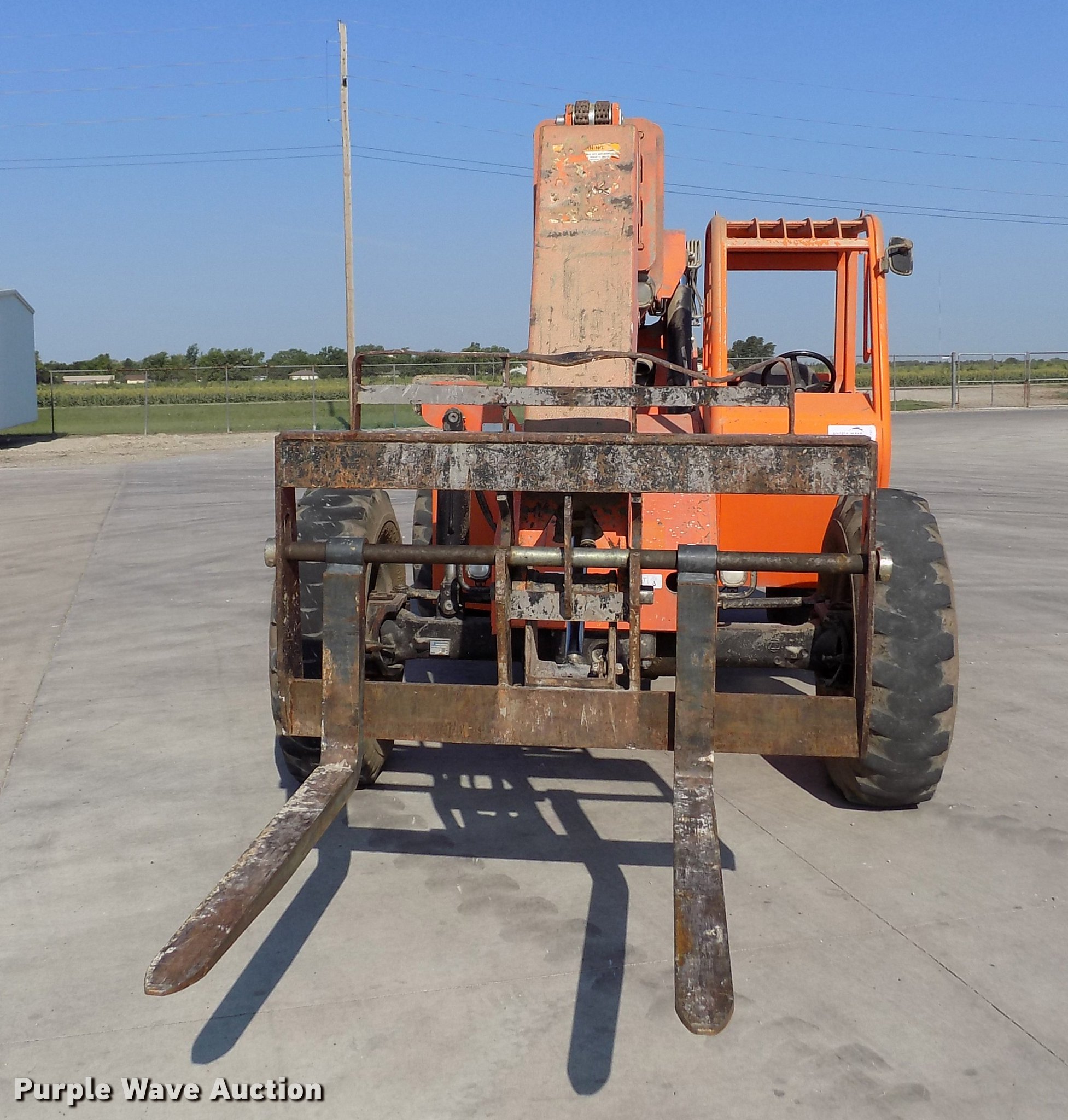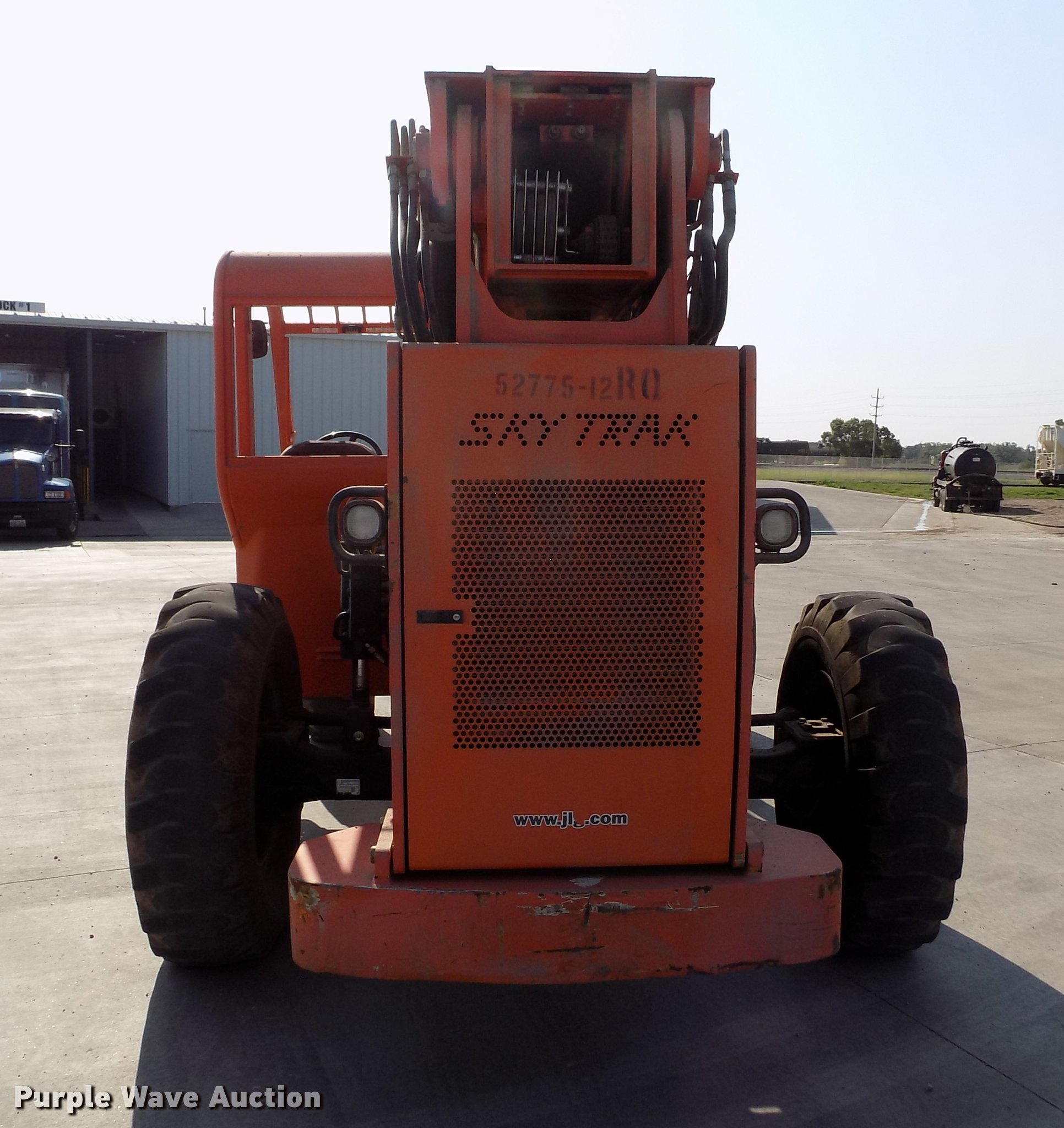 Purple Wave is selling a used Telehandler in Kansas. This item is a 2008 SkyTrak 6042 telehandler with the following: Cummins B4.5 4.5L four cylinder turbo diesel engine, 99 HP, Serial 30246714, Powershift transmission, 4F-4R gears, Four wheel drive, Crab steer, Four wheel steer, OROPS, Tilt cab, Work lights, Backup alarm, 6,000 lbs maximum lift capacity, 42' maximum lift height, 28' maximum reach, Three stage boom, 48"L forks, Tilt carriage, Hydraulic leveling, 13.00-24 tires, Serial 0160032741