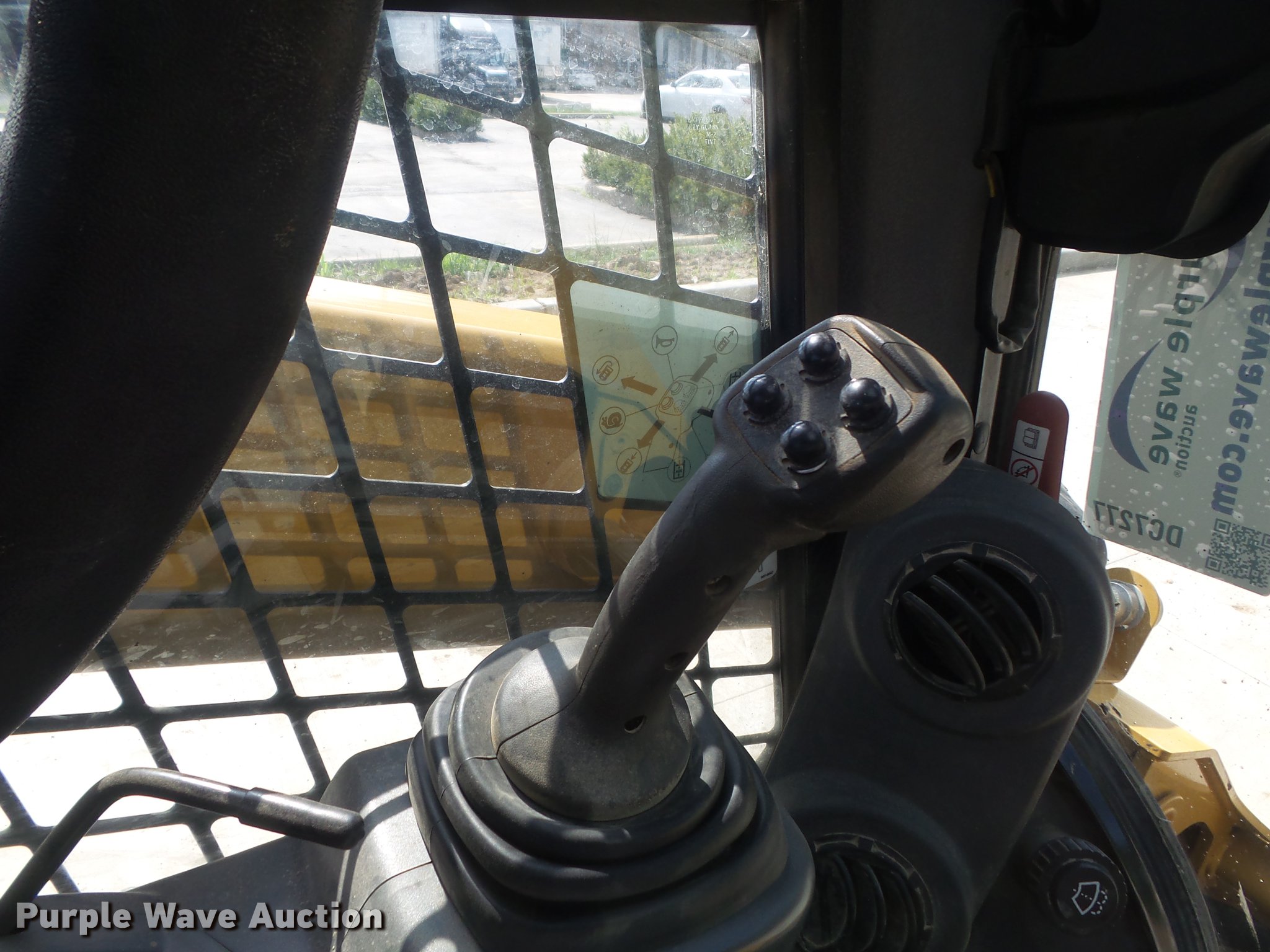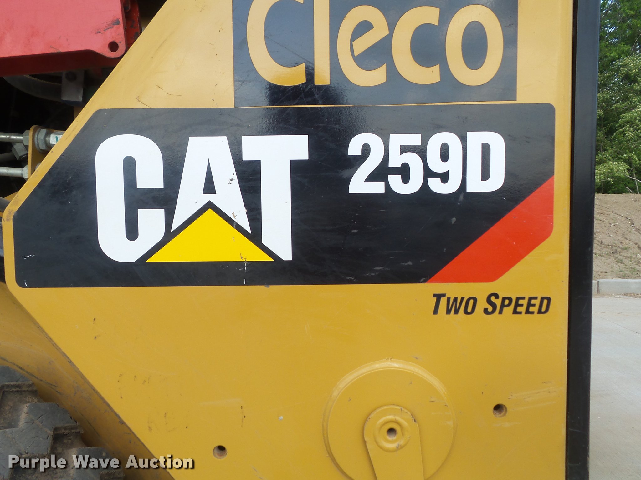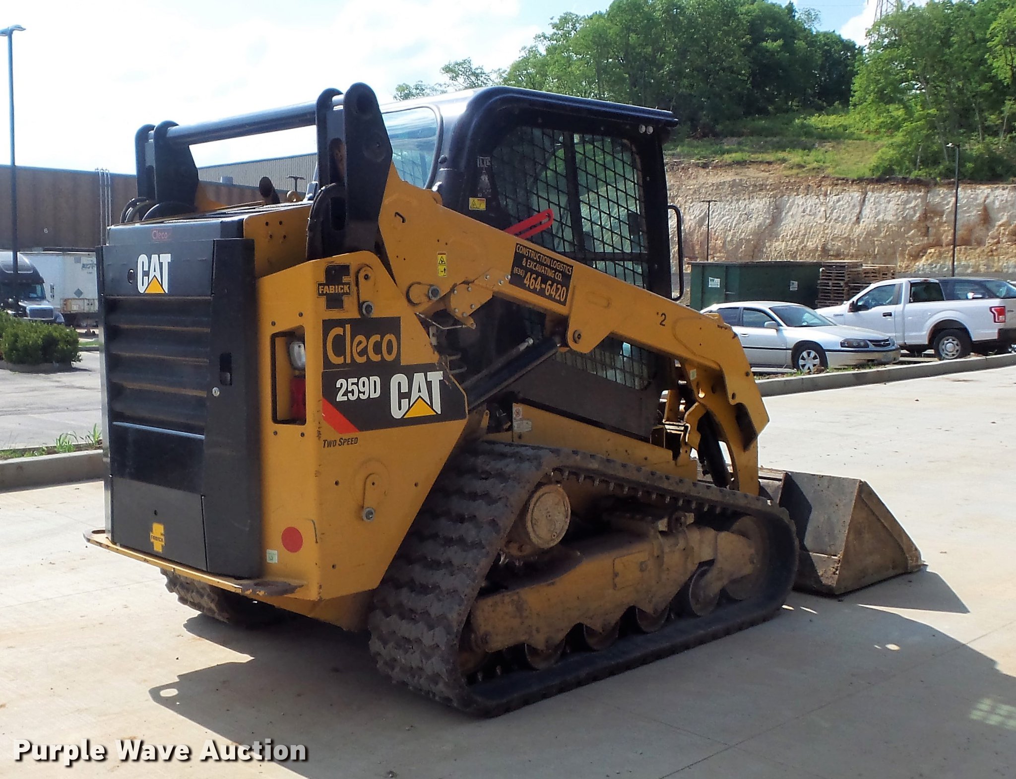 Purple Wave is selling a used Tracked Skid Steer Loader in Missouri. This item is a 2015 Caterpillar 259D skid steer with the following: 2,038 hours on meter, Hours may vary, still in use, Caterpillar C3.3B 3.3L four cylinder turbo diesel engine, 75 HP, Serial 8FL1394, Two speed hydrostatic transmission, Enclosed cab, AC and heat, AM/FM, Joystick controls, Air suspension seat, EMS panel, Anti-theft security system, Backup alarm, Front and rear work lights, Wipers, Rear view camera, Standard and high flow auxiliary hydraulics, Auxiliary electrical outlet, Hydraulic quick coupler, Caterpillar 279-5372 low profile bucket, 72"W, Bolt-on teeth, 0.57 cu. yd. capacity, 16"W tracks, Serial CAT0259DJFTL05911
