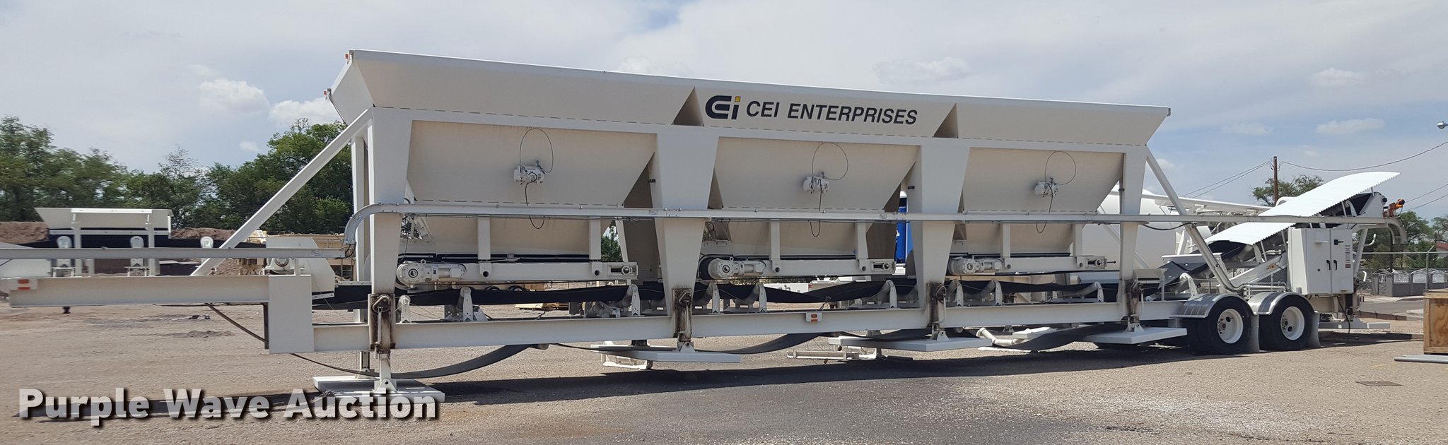 Purple Wave is selling a used Asphalt Plant in New Mexico. This item is a CEI TSC-CPAS-10 triple bin cold feeder with the following: 79'L x 10'W overall width, 48" conveyor collection, (4) stabilizing platforms, Two speed manual operation, 4' x 10', Individual bin conveyors, Electric motors, 480V, Serial C14-110