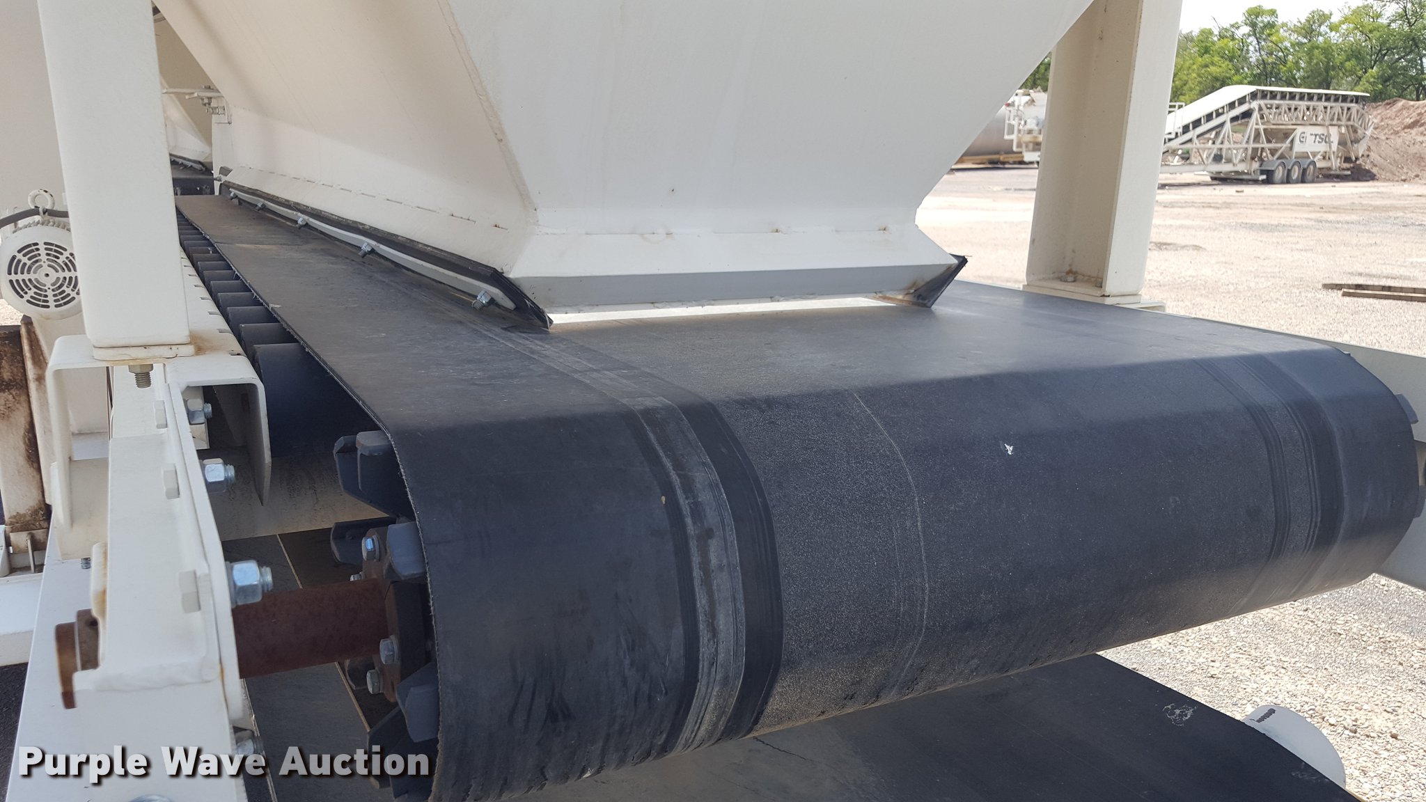 CEI TSC-CPAS-10 triple bin cold feeder. 79'L x 10'W overall width, 48" conveyor collection, (4) stabilizing platforms Two speed manual operation, 4' x 10', Individual bin conveyors Electric motors, 480V, Serial C14-110. Transfer of ownership documentation will be a bill of sale. C14110. CEI Enterprises. 245 Woodward Rd SE. Albuquerque, NM 87102