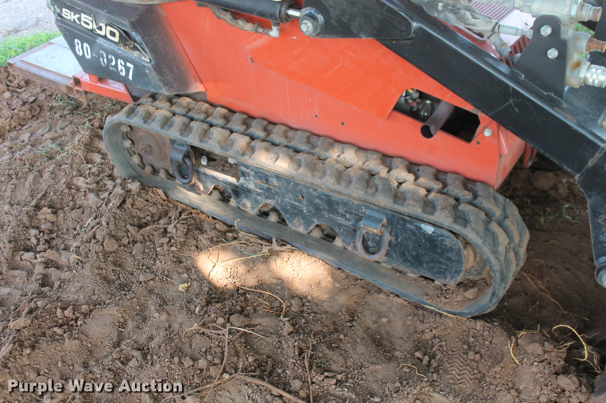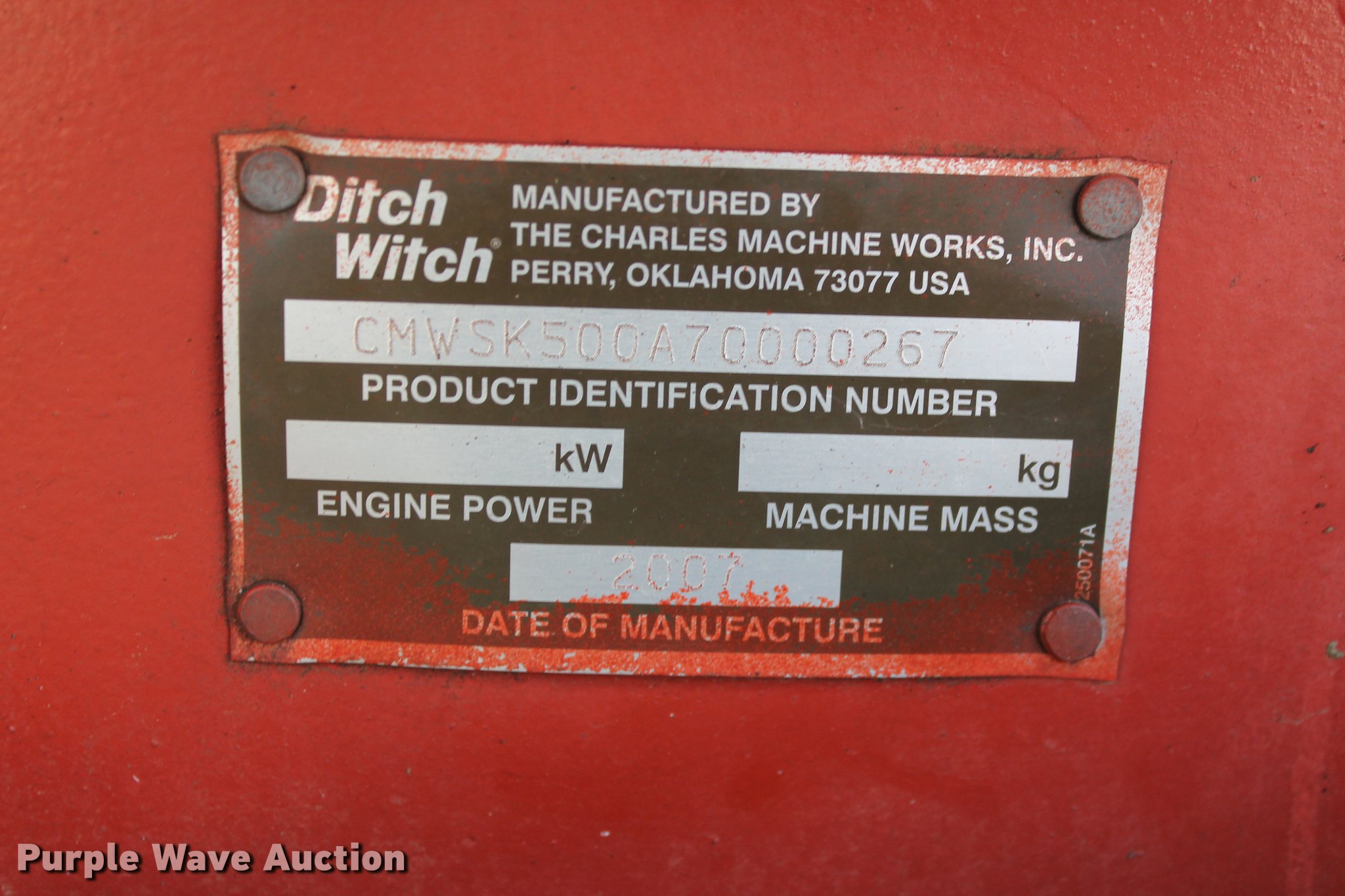 Purple Wave is selling a used Compact Utility Loader in Oklahoma. This item is a 2007 Ditch Witch SK500 compact utility loader with the following: 1,776 hours on meter, Honda two cylinder gas engine, Hydrostatic transmission, Auxiliary hydraulics, 36"W bucket, 7"W rubber tracks, Serial CMWSK500A70000267