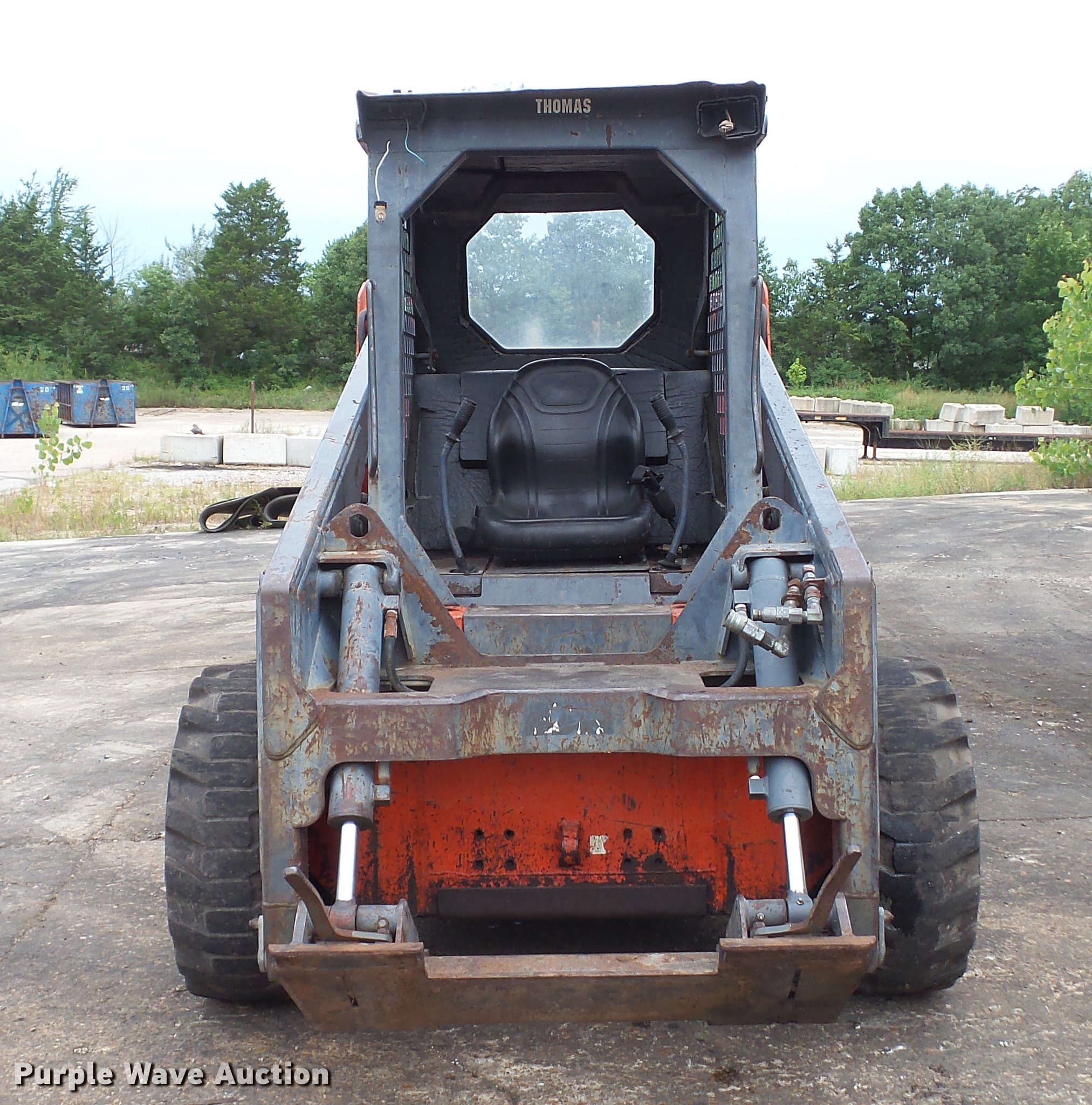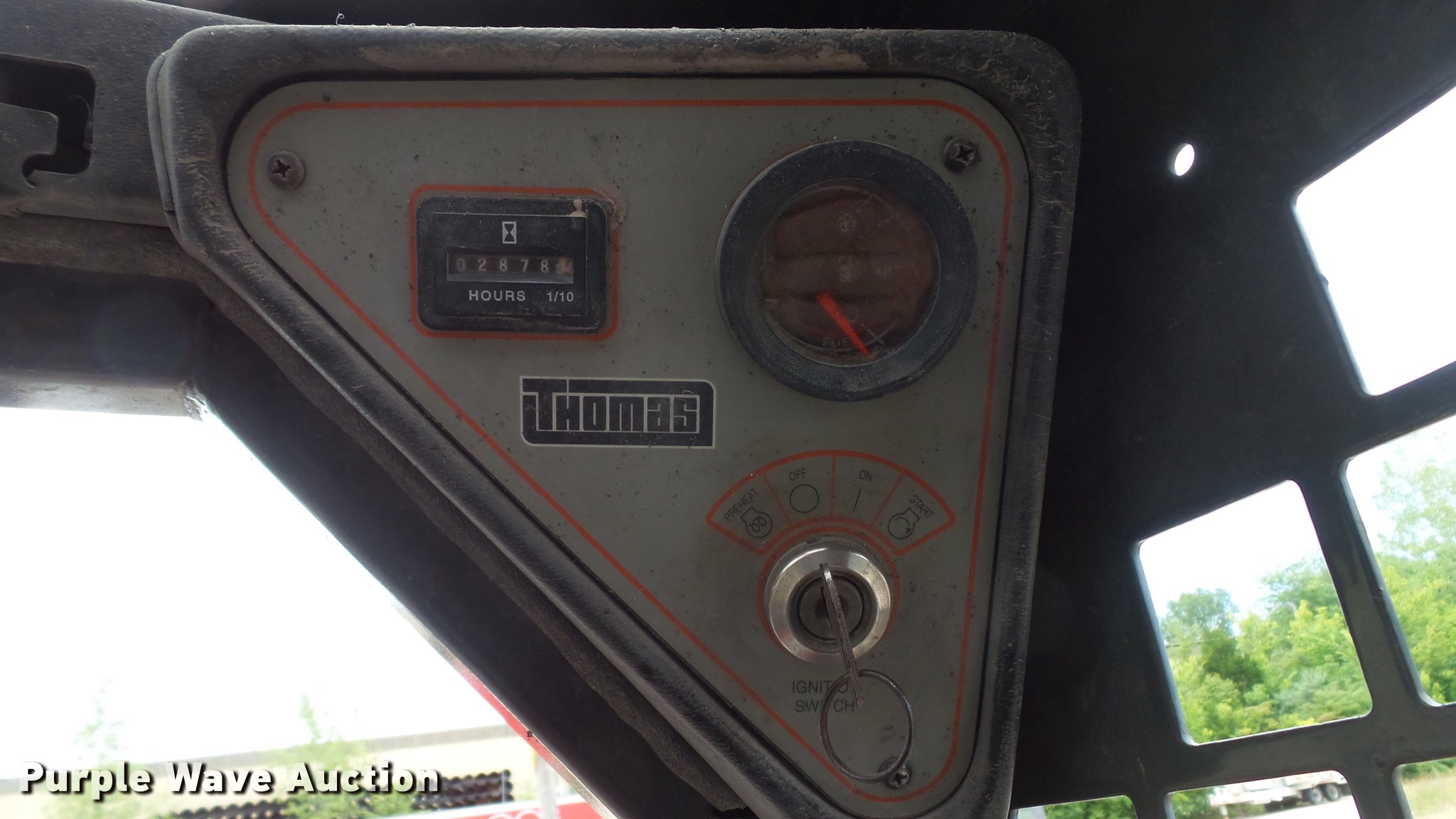 Purple Wave is selling a used Skid Steer Loader in Missouri. This item is a 1999 Thomas T-245 skid steer with the following: 2,878 hours on meter, Deutz BF4M1011F four cylinder turbo diesel engine, 82 HP, Serial 00358562, Hydrostatic transmission, Open station/canopy, Hand and foot controls, EMS panel, Front and rear work lights, Manual quick coupler, Auxiliary hydraulics, 12 x 16.5 tires, Non-operational lights, Serial LM001103