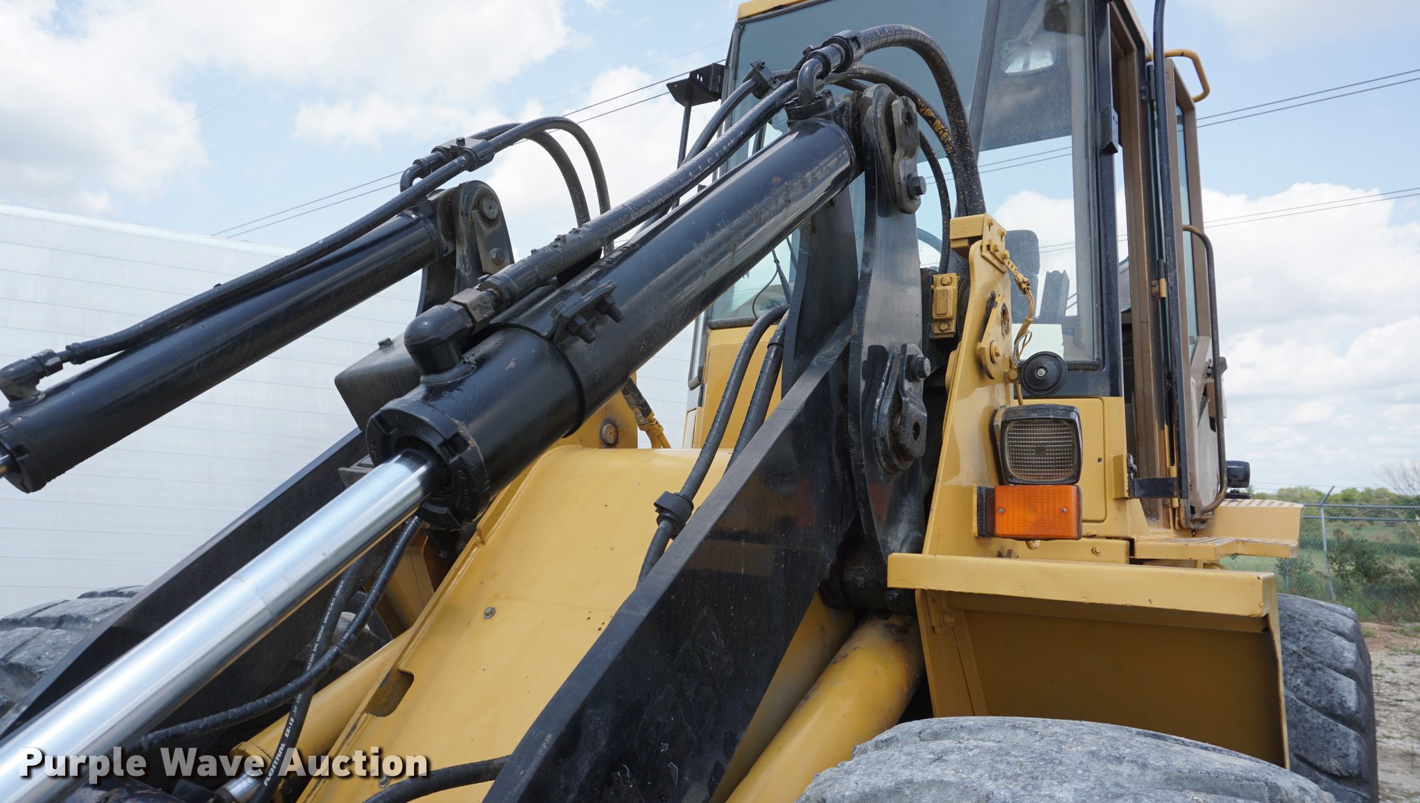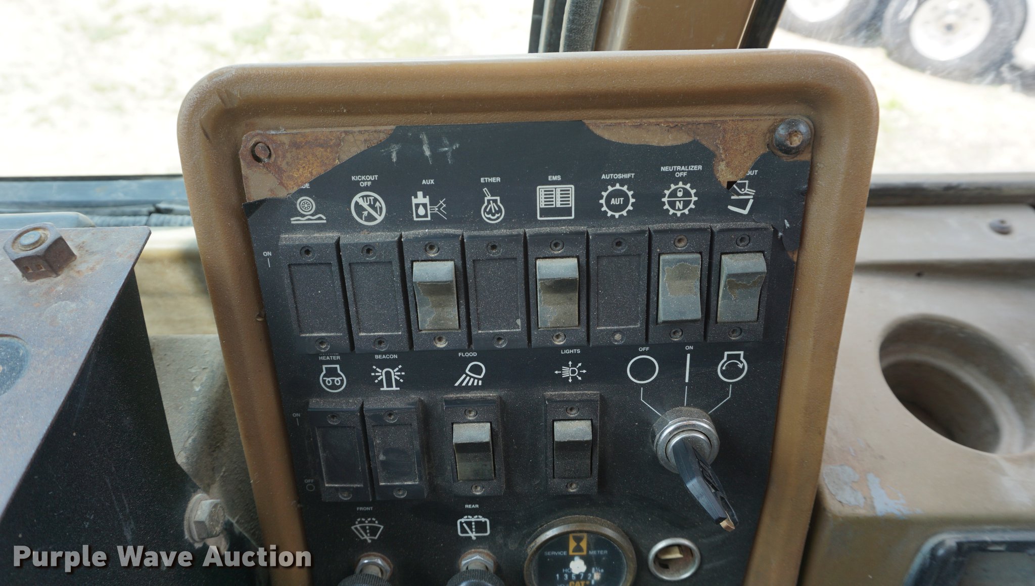 Purple Wave is selling a used Wheel Loader in Kansas. This item is a 1993 Caterpillar IT28F wheel loader with the following: 13,572 hours on meter, Caterpillar 3116 six cylinder turbo diesel engine, 156 HP, Serial 98203195, Powershift transmission, 4F-3R gears, Enclosed cab, Heat, Suspension seat, Two-lever bucket controls, 99"W general purpose bucket, 2.2 cu. yd. capacity, Bolt-on cutting edge, Hydraulic quick coupler, 20.5-25 tires, Serial 3CL00363