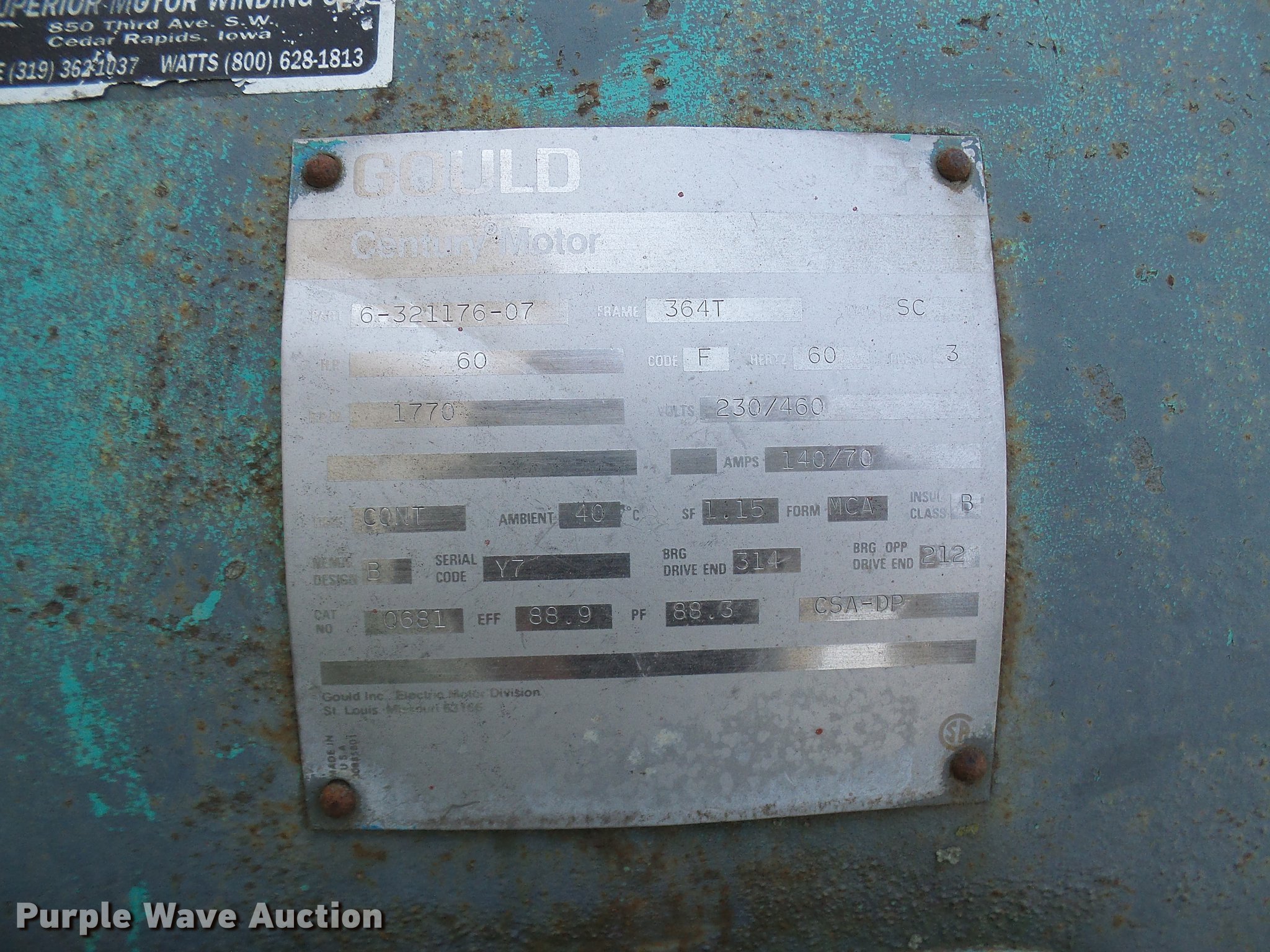 Purple Wave is selling a used Pump in Missouri. This item is a Peabody Barnes 200CUE-12 water pump with the following: Gould electric motor, 60 HP, Three phase, Serial 68716U182