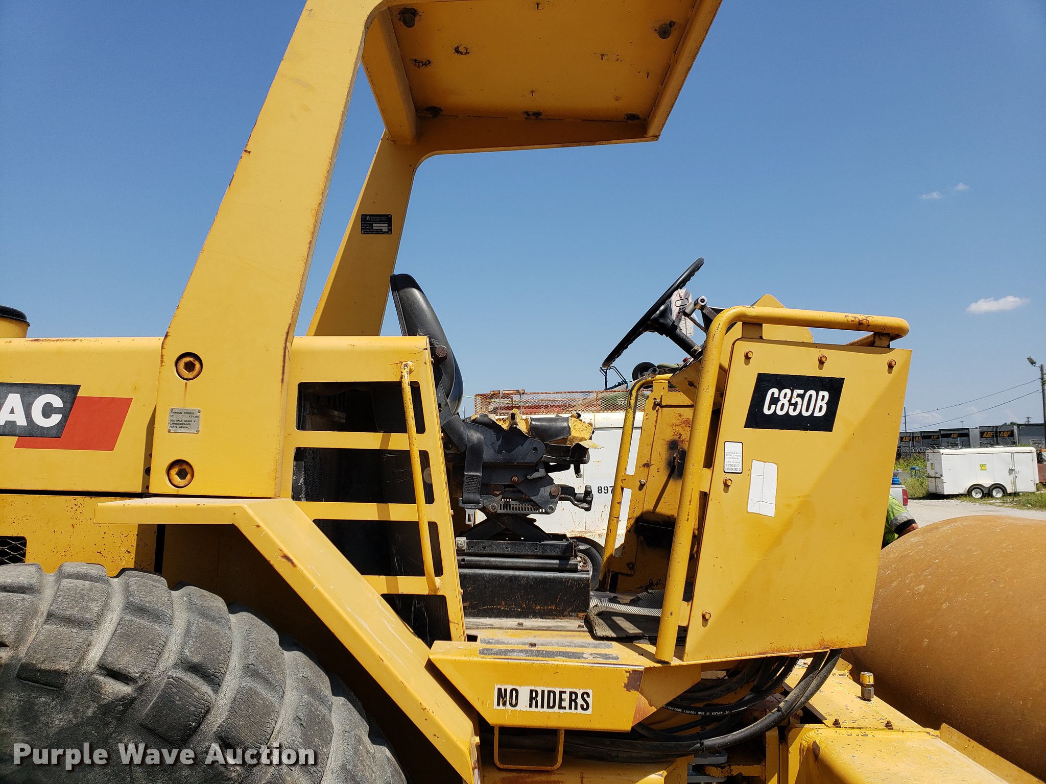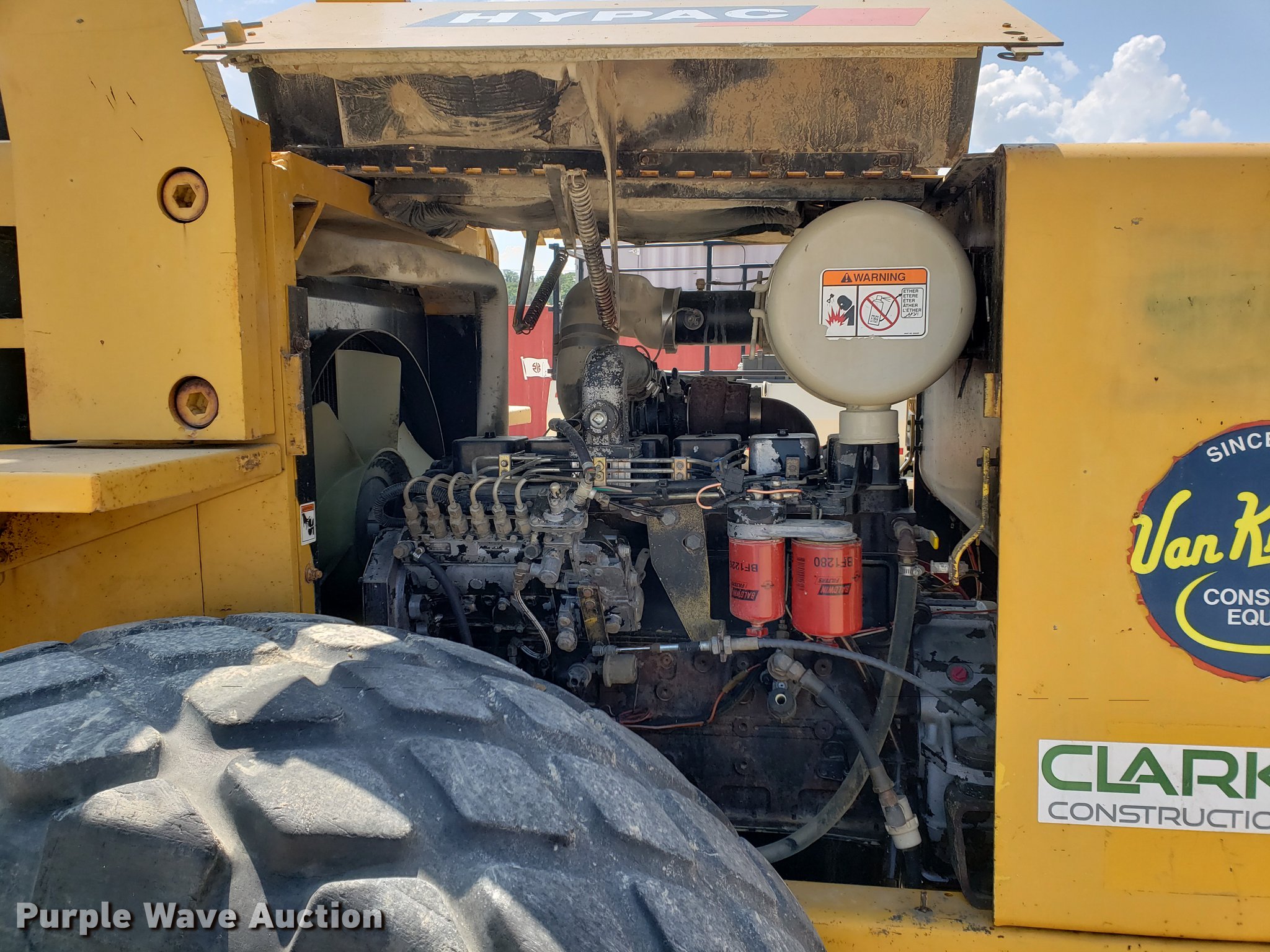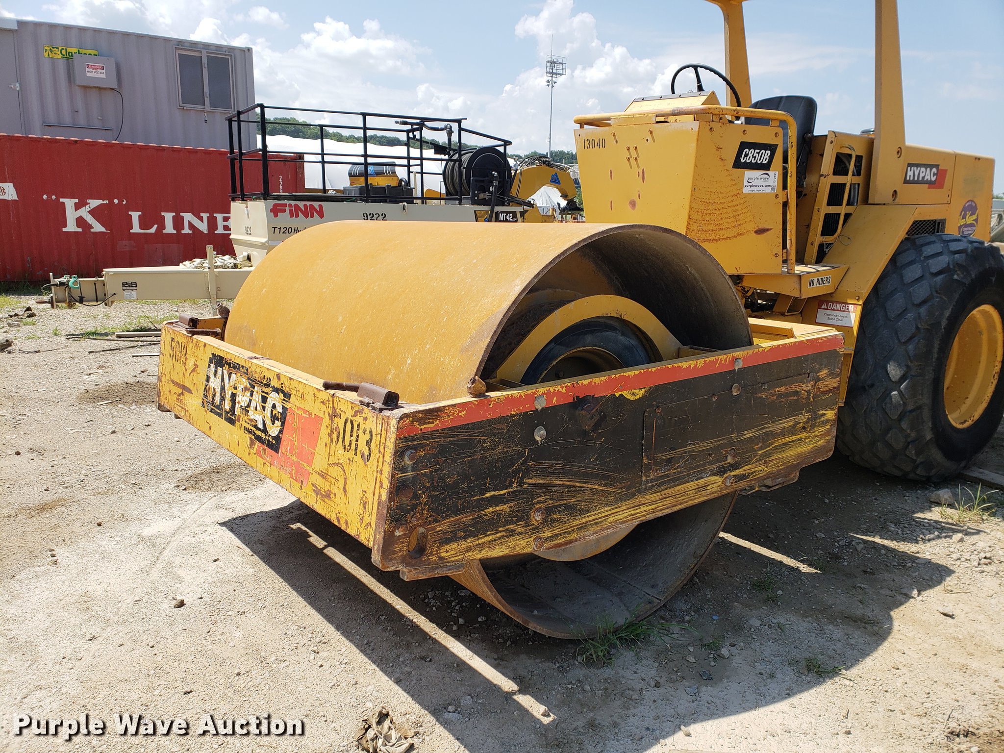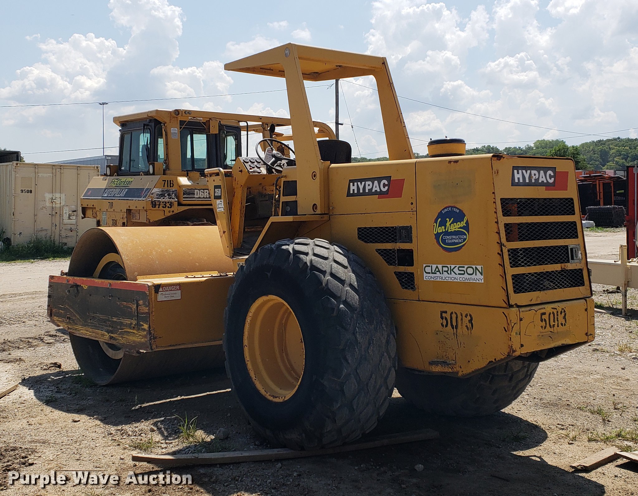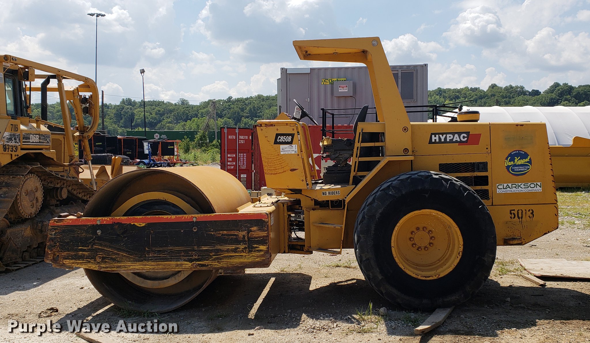 Hypac 850B single drum roller. 7,964 hours on meter, Cummins 5.9L six cylinder turbo diesel engine, Hydrostatic transmission, Canopy, 84"W x 60" diameter smooth drum, 23.1-26 tires, 20,000 lbs. base operating weight, Hydraulic drive issues, Serial 13188C2109U, Unit# 5013. Clarkson Construction Co.. 4133 Gardner Ave. Kansas City, MO 64120