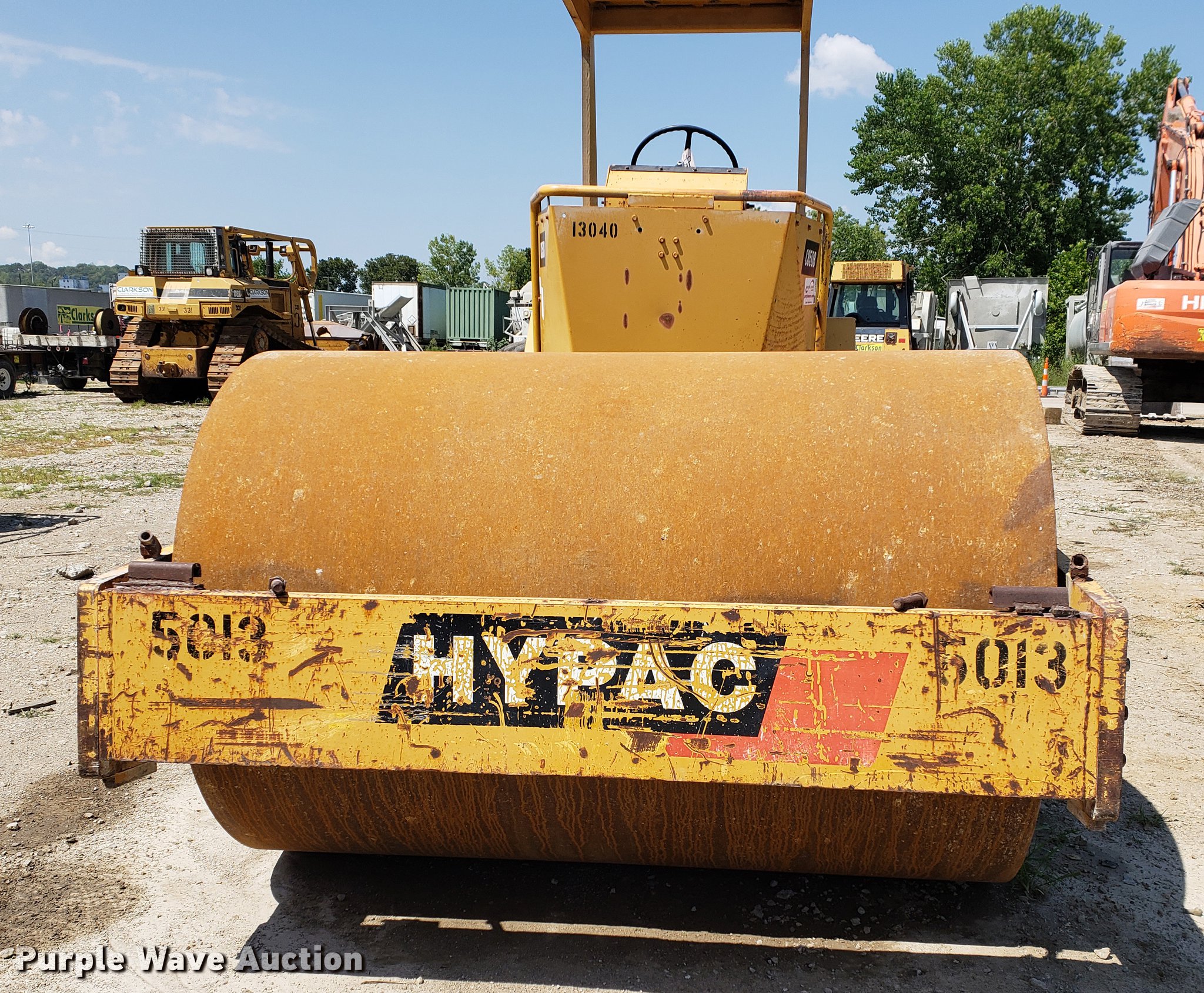 Purple Wave is selling a used Single Drum Roller Compactor in Missouri. This item is a Hypac 850B single drum roller with the following: 7,964 hours on meter, Cummins 5.9L six cylinder turbo diesel engine, Hydrostatic transmission, Canopy, 84"W x 60" diameter smooth drum, 23.1-26 tires, 20,000 lbs. base operating weight, Hydraulic drive issues, Serial 13188C2109U, Unit# 5013