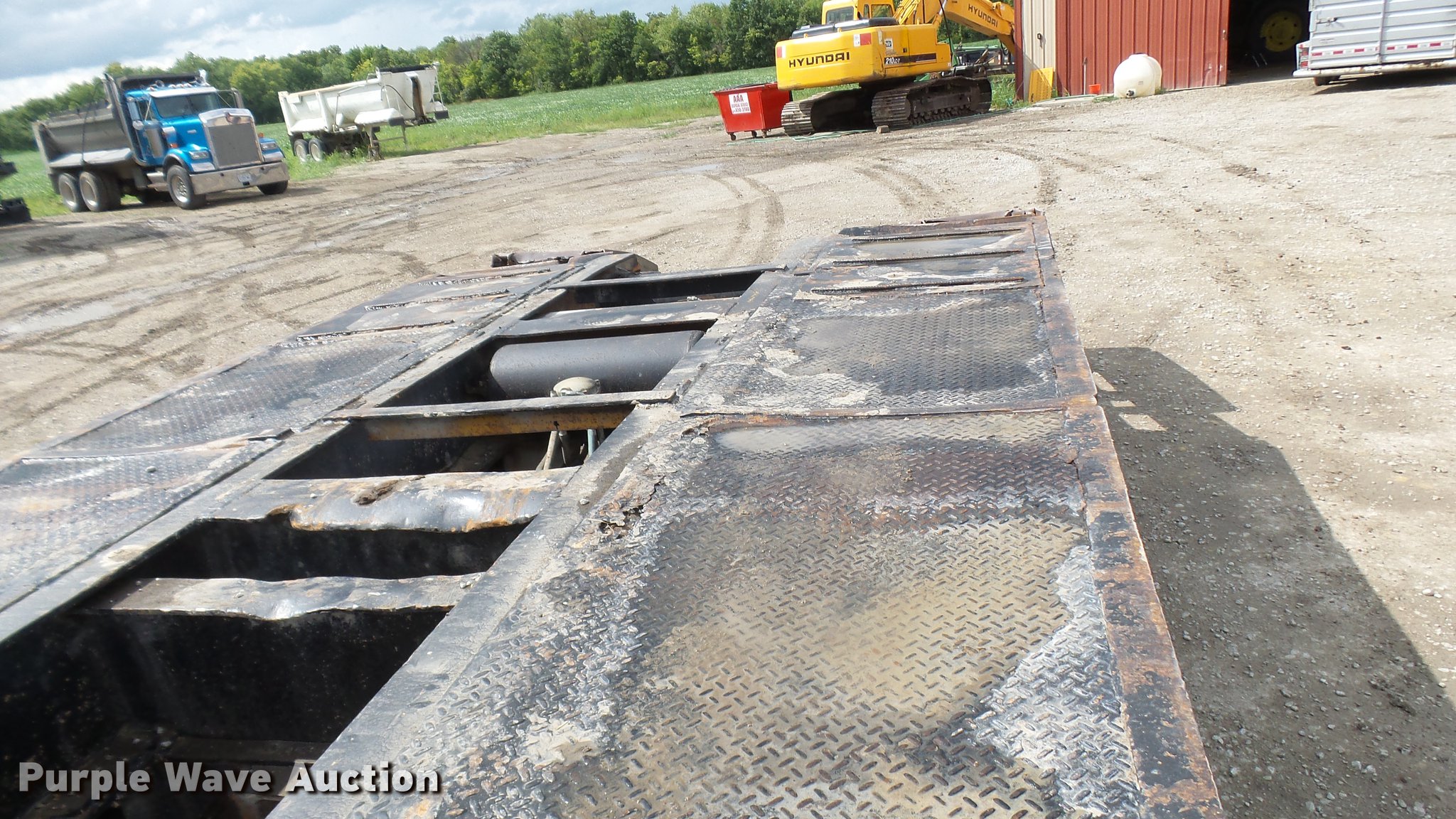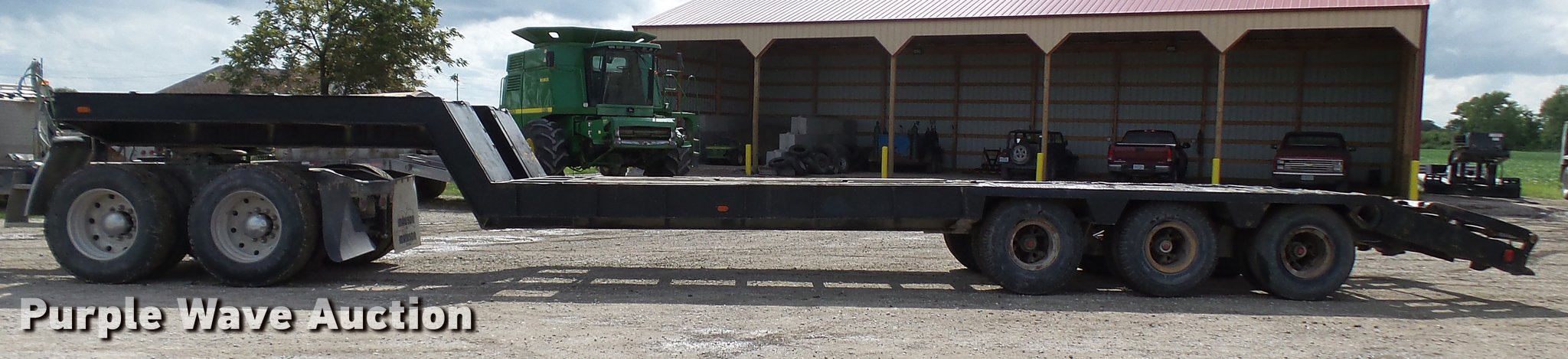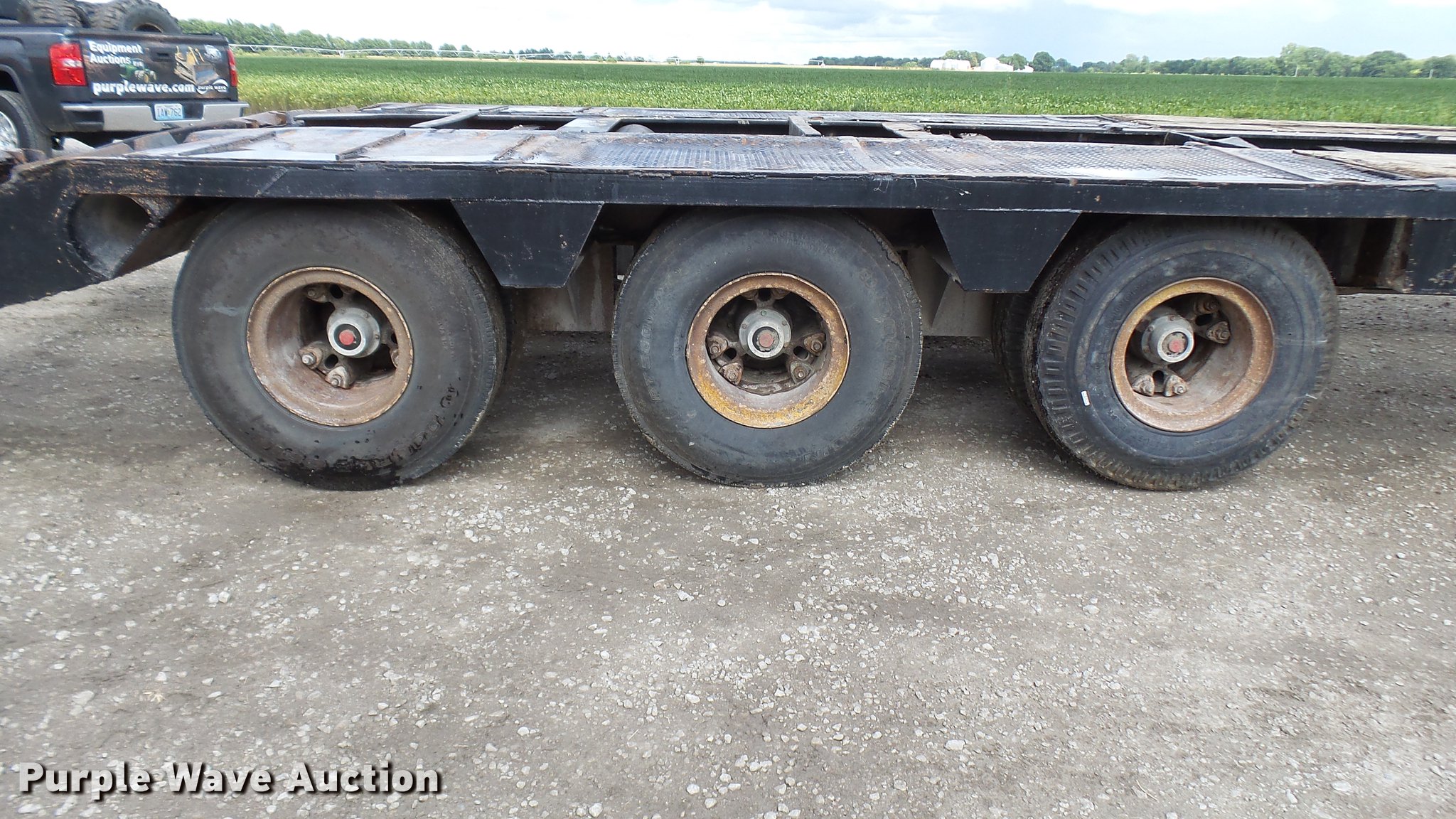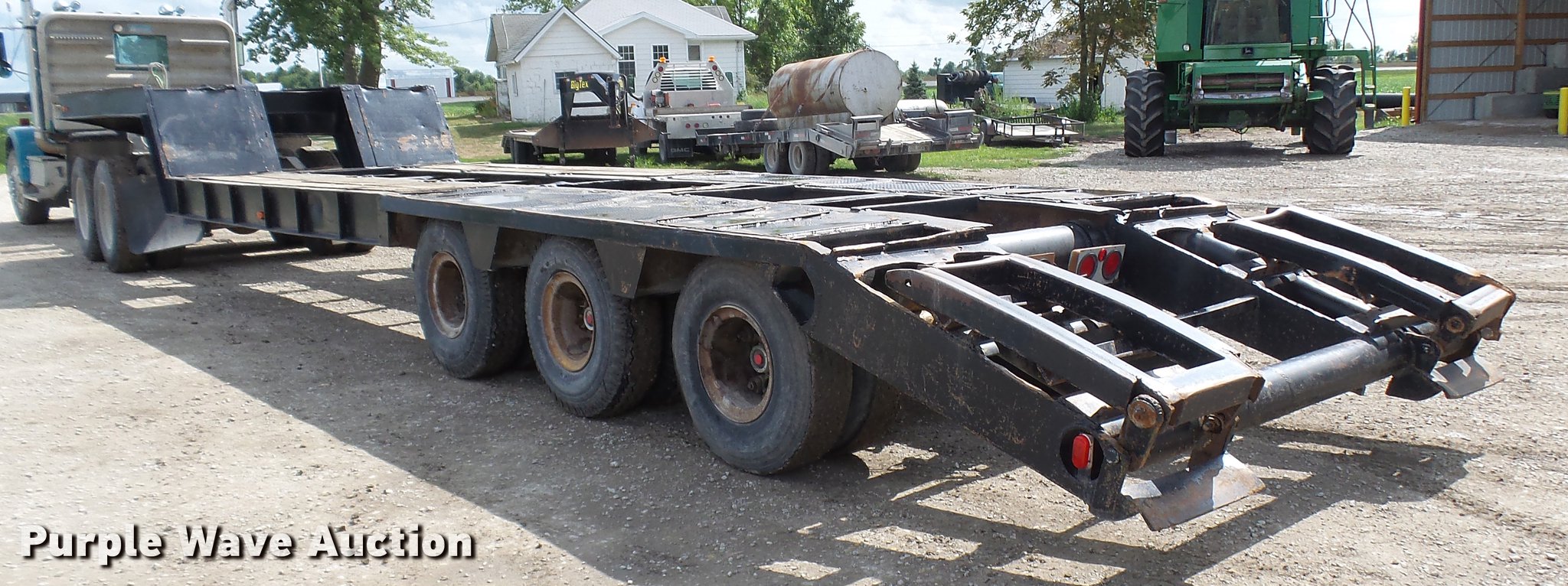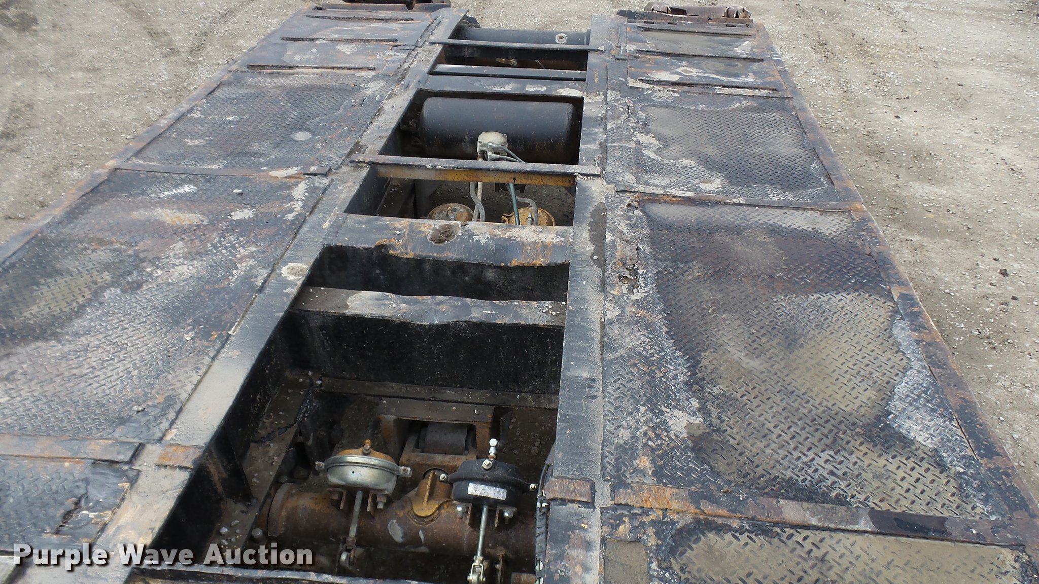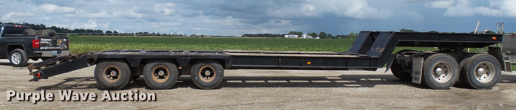 Purple Wave is selling a used Equip. Trailer in Missouri. This item is a 1977 Tram low boy equipment trailer with the following: 42'L x 102"W overall, 11'L top deck, 25'L main deck, 48"L dovetail, 36"L ramps, 40 ton capacity, Air brakes, Triple axle, 10.00-15 tires