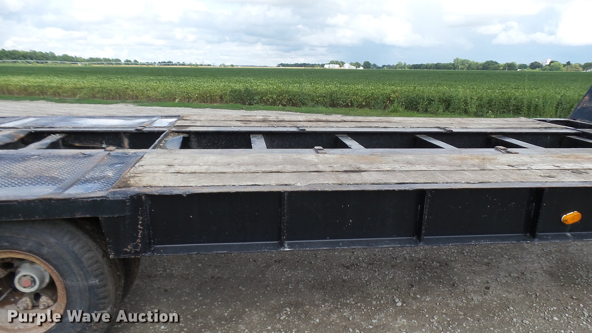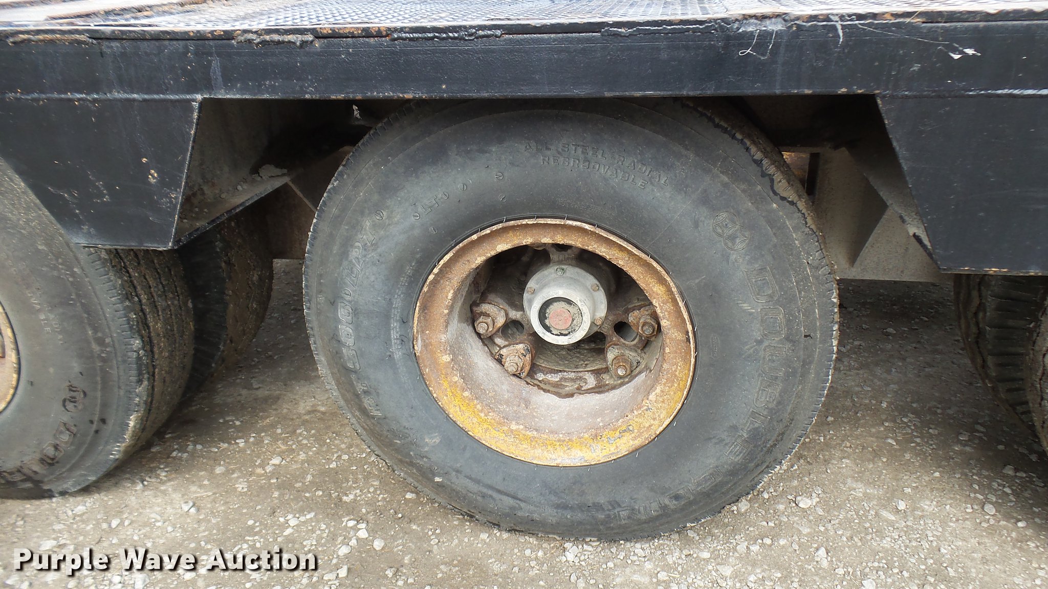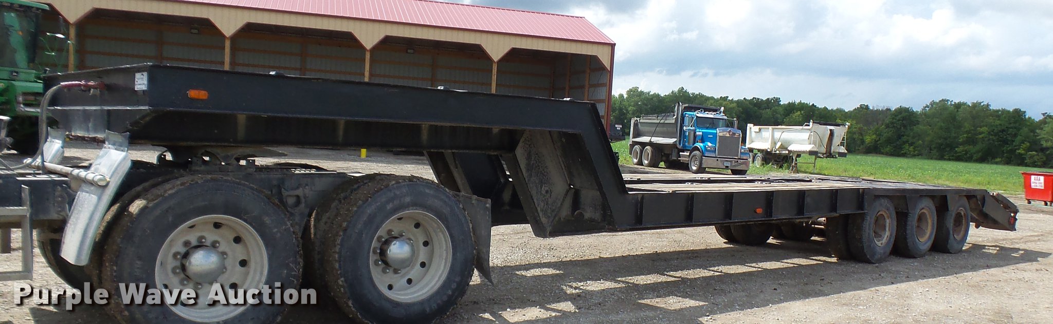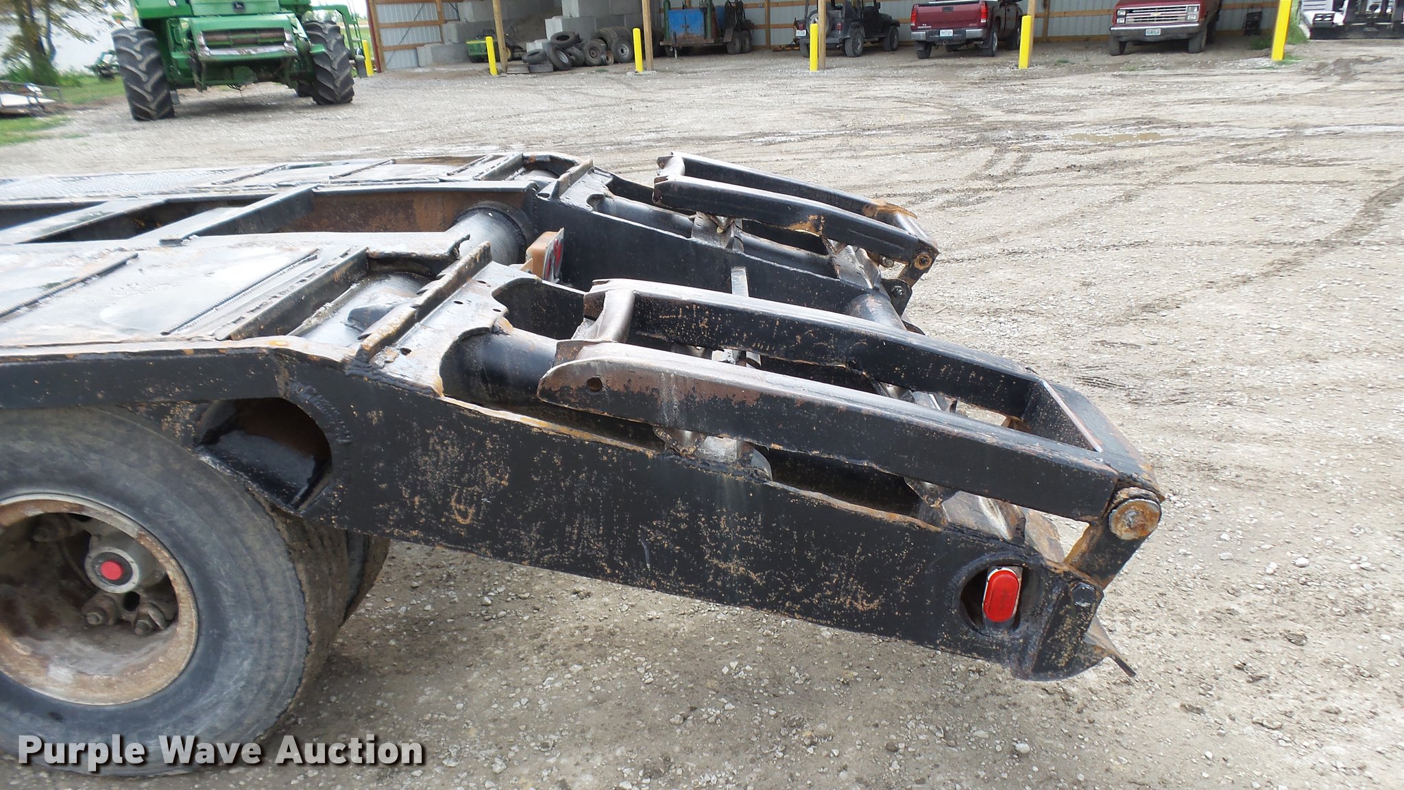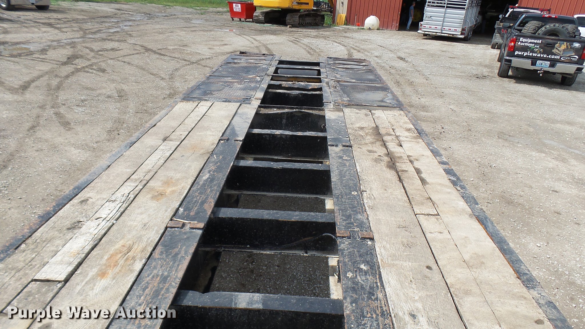 Purple Wave is selling a used Equip. Trailer in Missouri. This item is a 1977 Tram low boy equipment trailer with the following: 42'L x 102"W overall, 11'L top deck, 25'L main deck, 48"L dovetail, 36"L ramps, 40 ton capacity, Air brakes, Triple axle, 10.00-15 tires