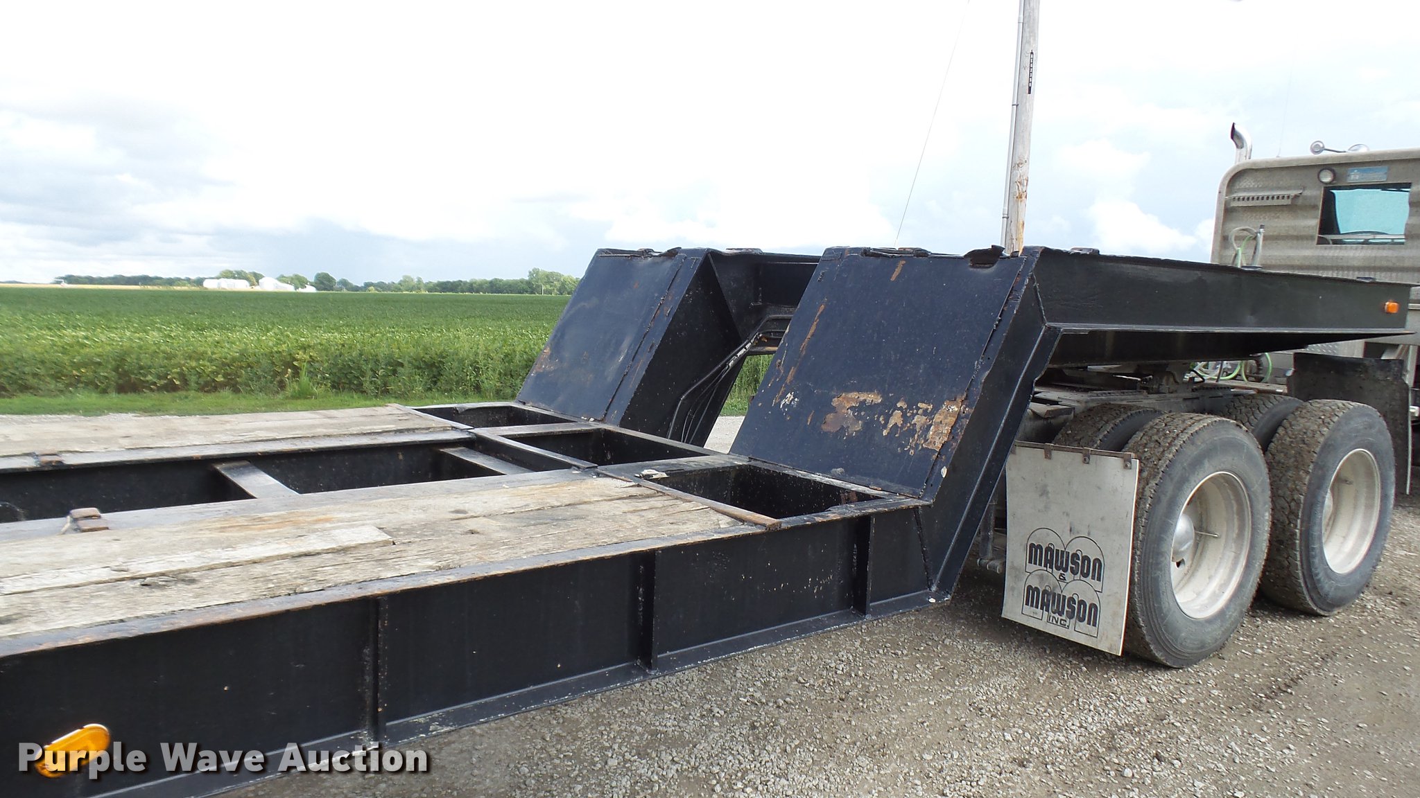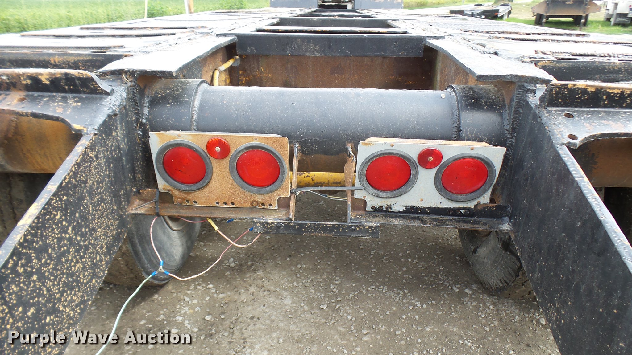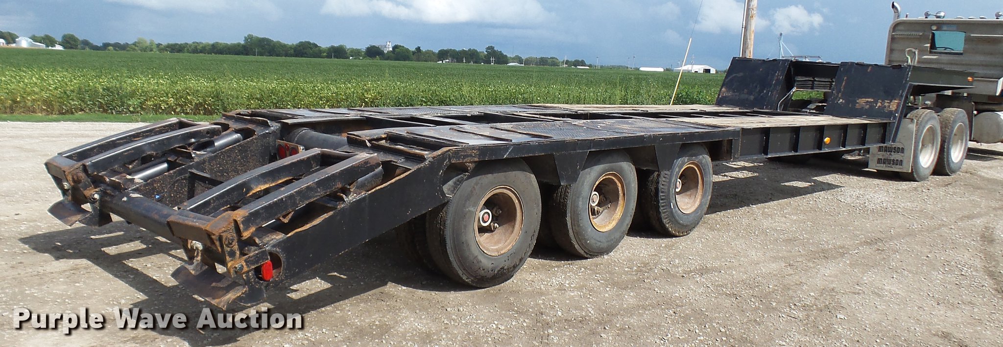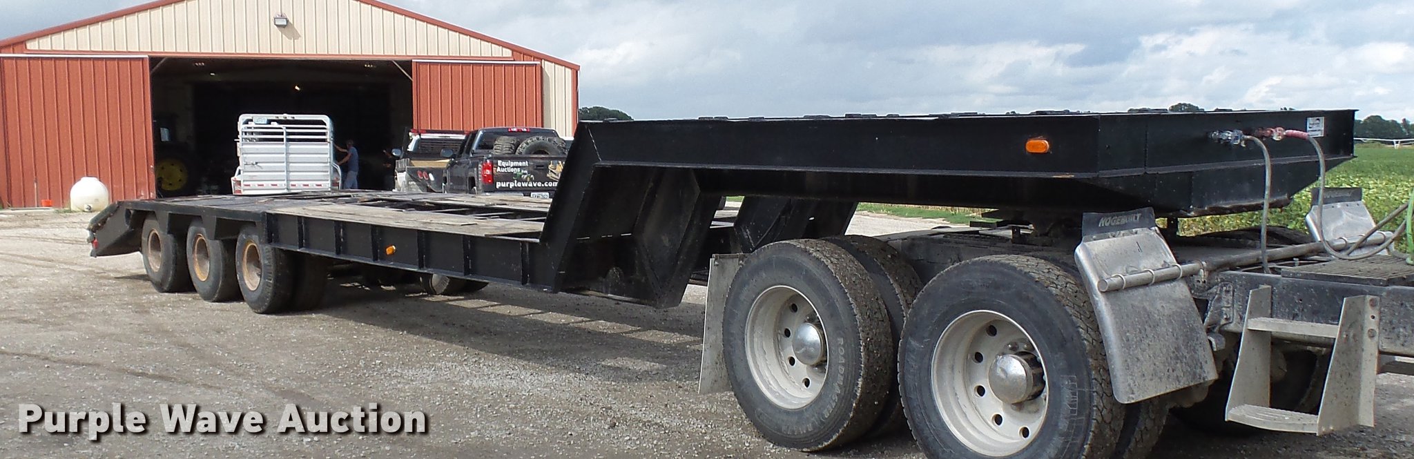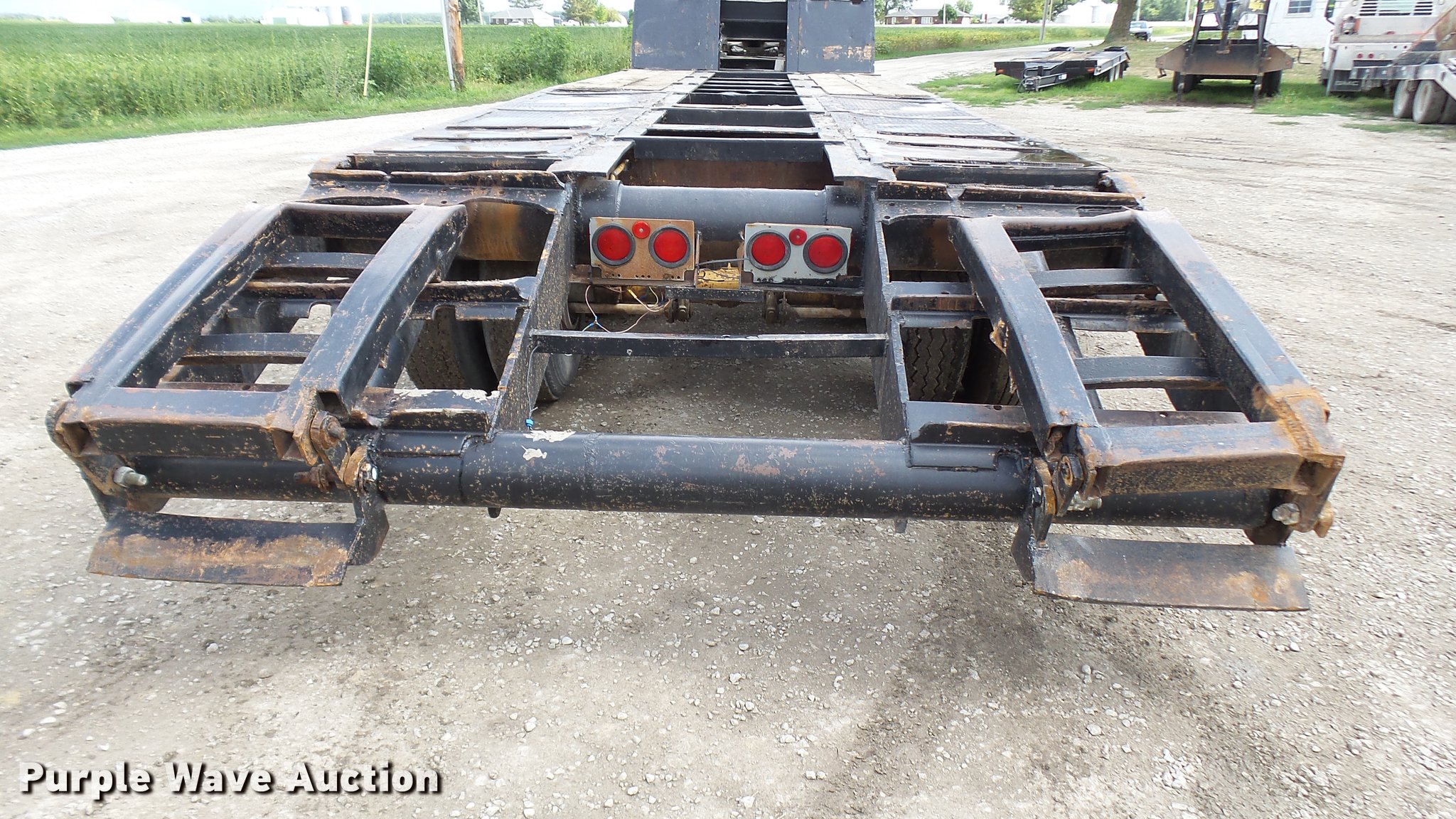 Purple Wave is selling a used Equip. Trailer in Missouri. This item is a 1977 Tram low boy equipment trailer with the following: 42'L x 102"W overall, 11'L top deck, 25'L main deck, 48"L dovetail, 36"L ramps, 40 ton capacity, Air brakes, Triple axle, 10.00-15 tires