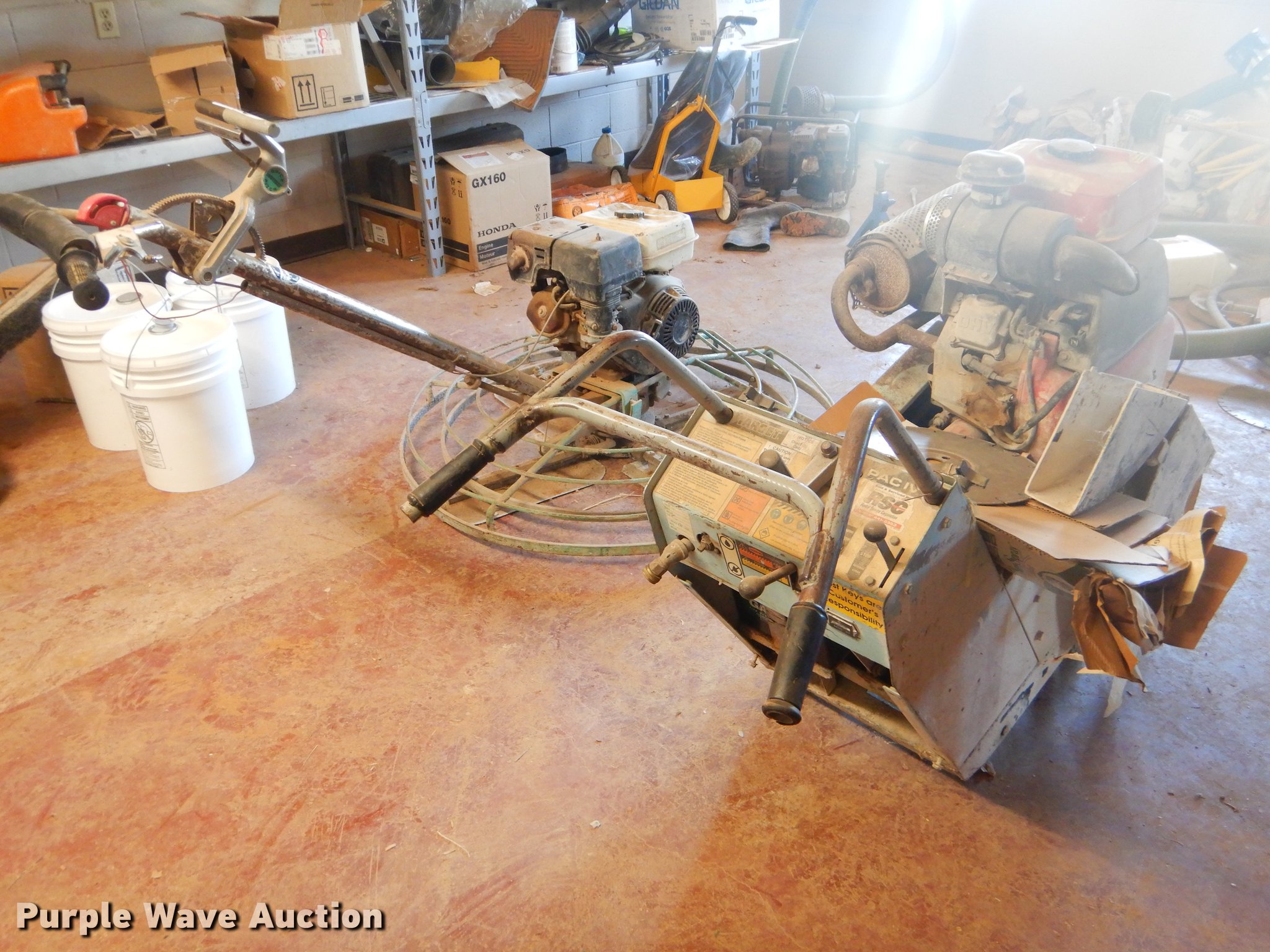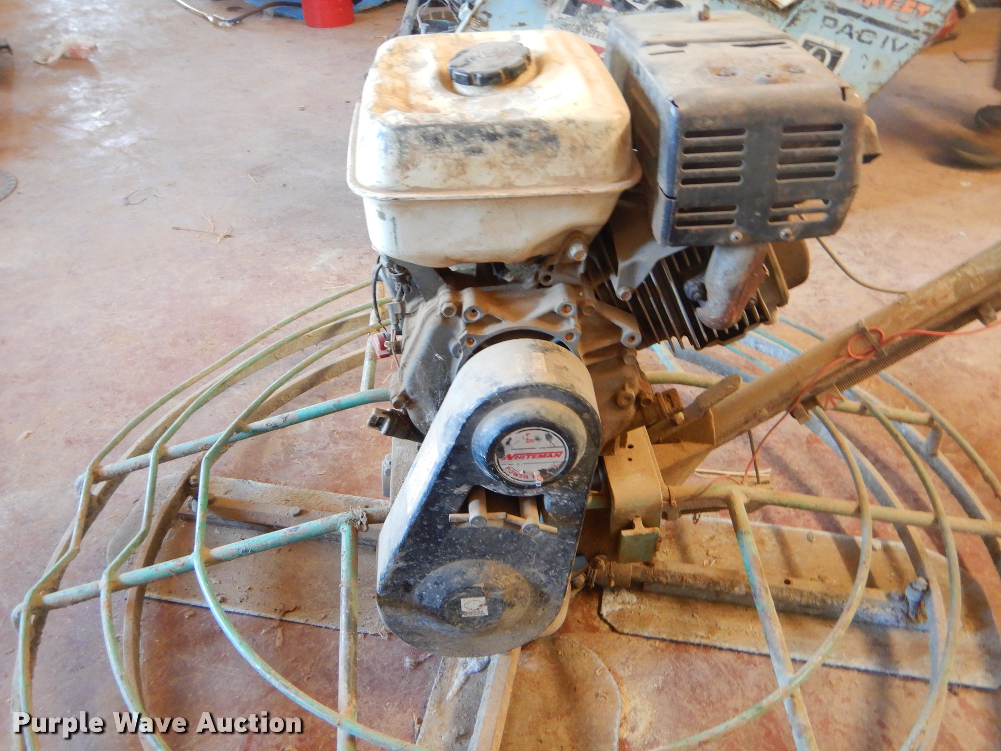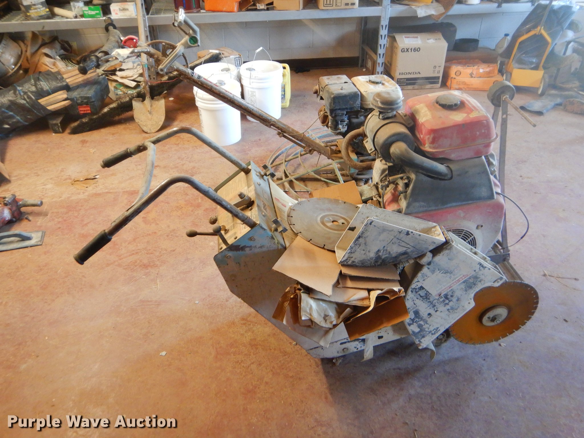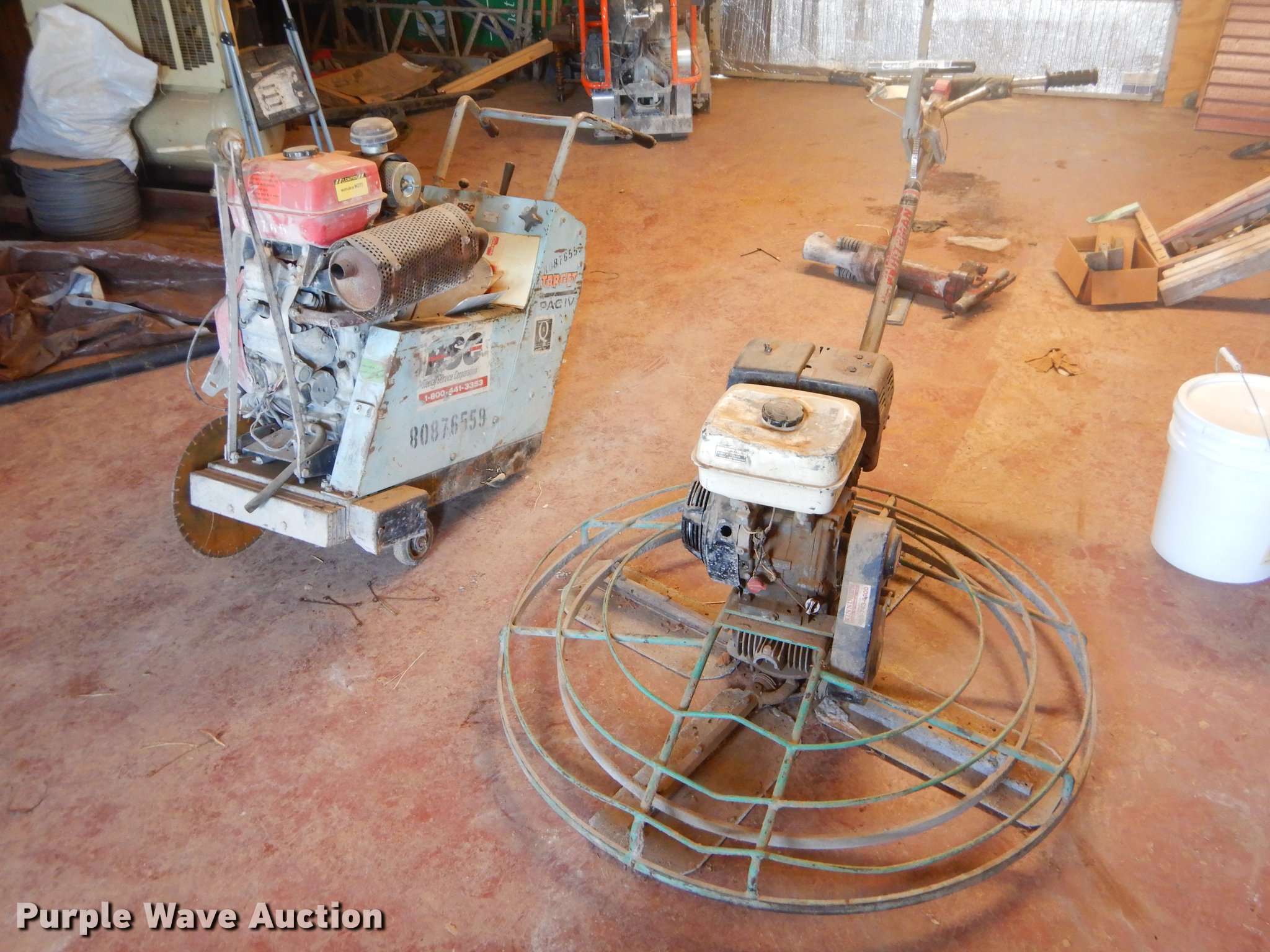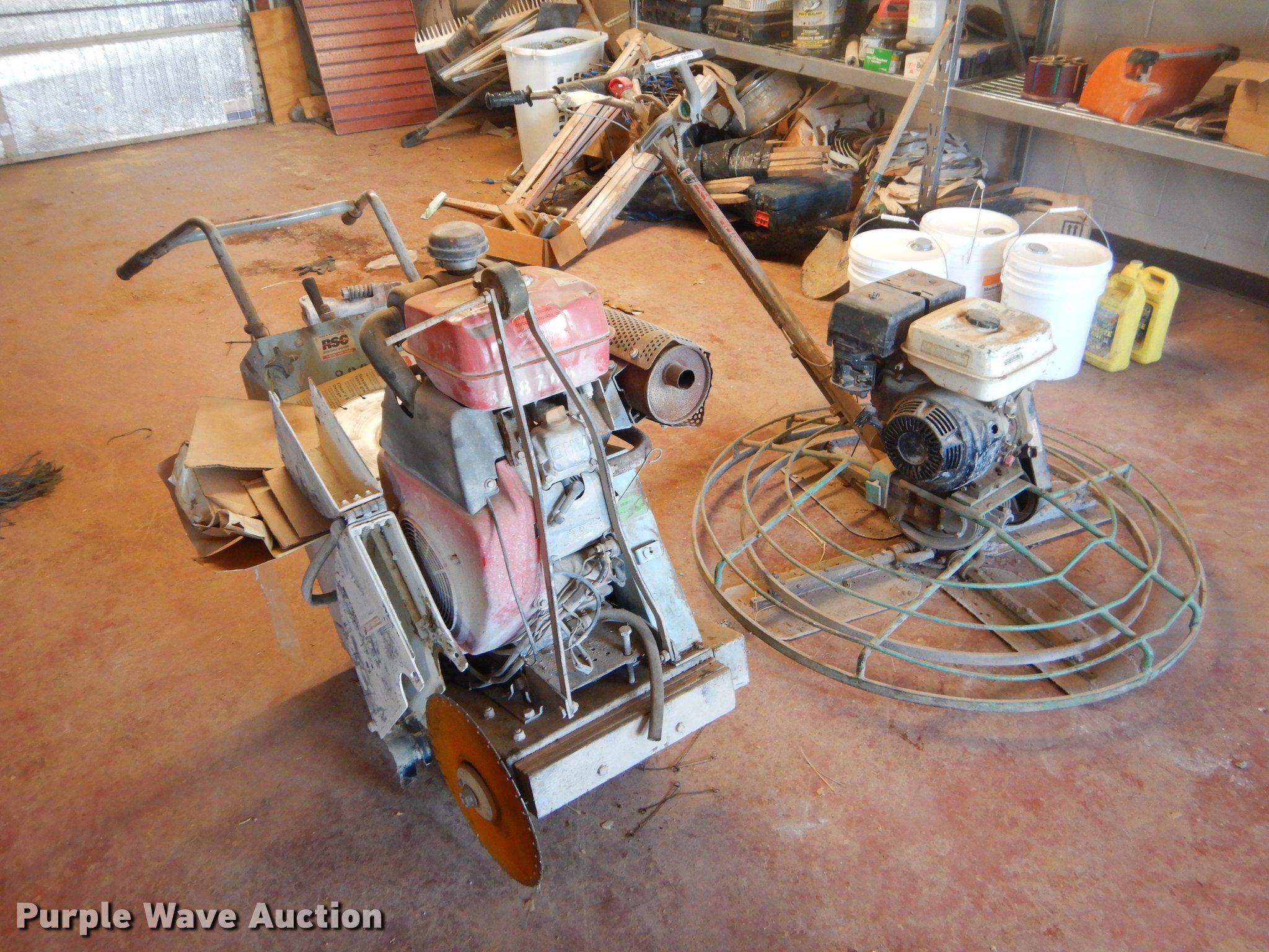Purple Wave is selling a used Concrete Equip. or Acces. in Oklahoma. This item is a Concrete tools with the following: Target PAC IV concrete saw, 1,198 hours on meter, Gas engine, 13" blade capacity, Adjustable height, Additional blade included, Serial 296283, Whiteman concrete Trowel, 45", Gas engine, Unknown operating conditions