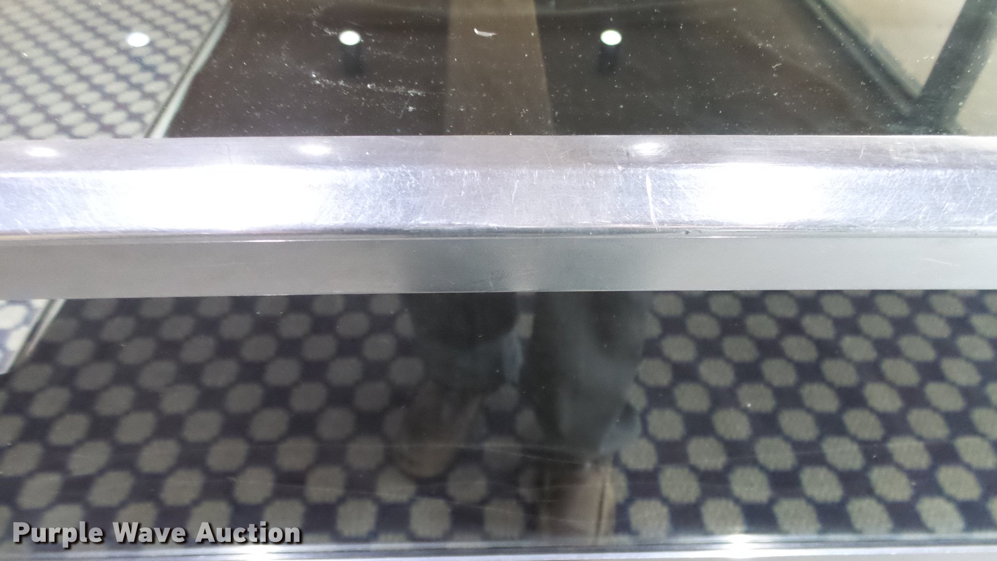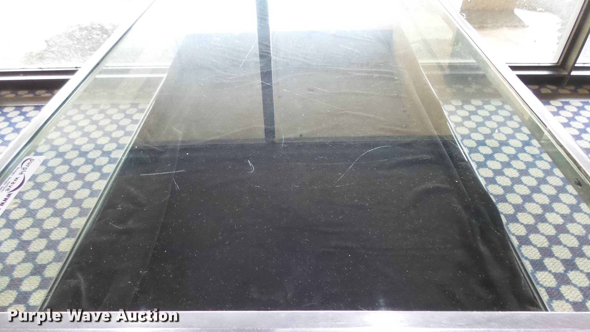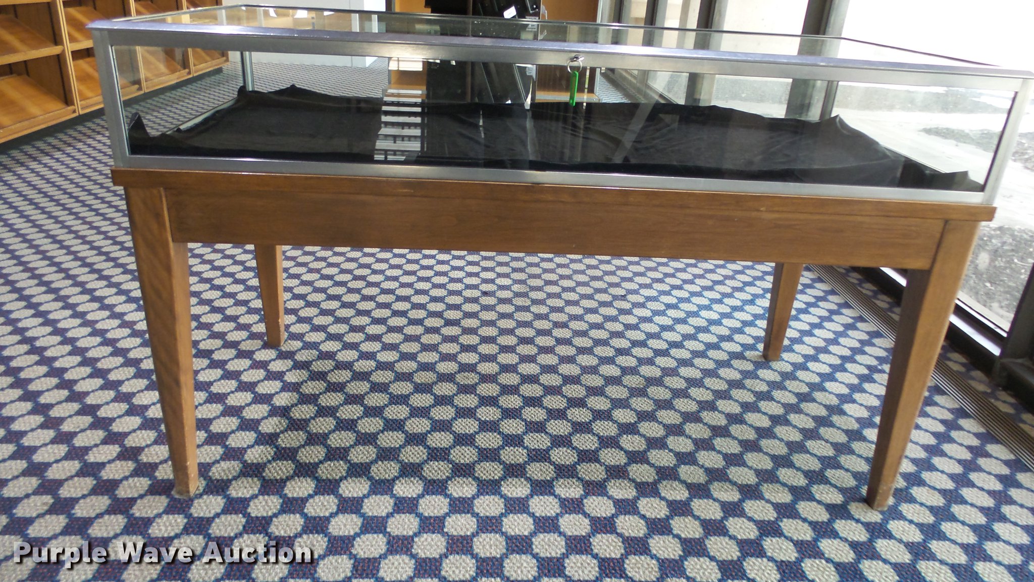 Purple Wave is selling a used Retail Displays in Kansas. This item is a Glass show case on wood base with the following: 60"W x 28"D x 9"H case, 36"H from floor, Location 2nd floor