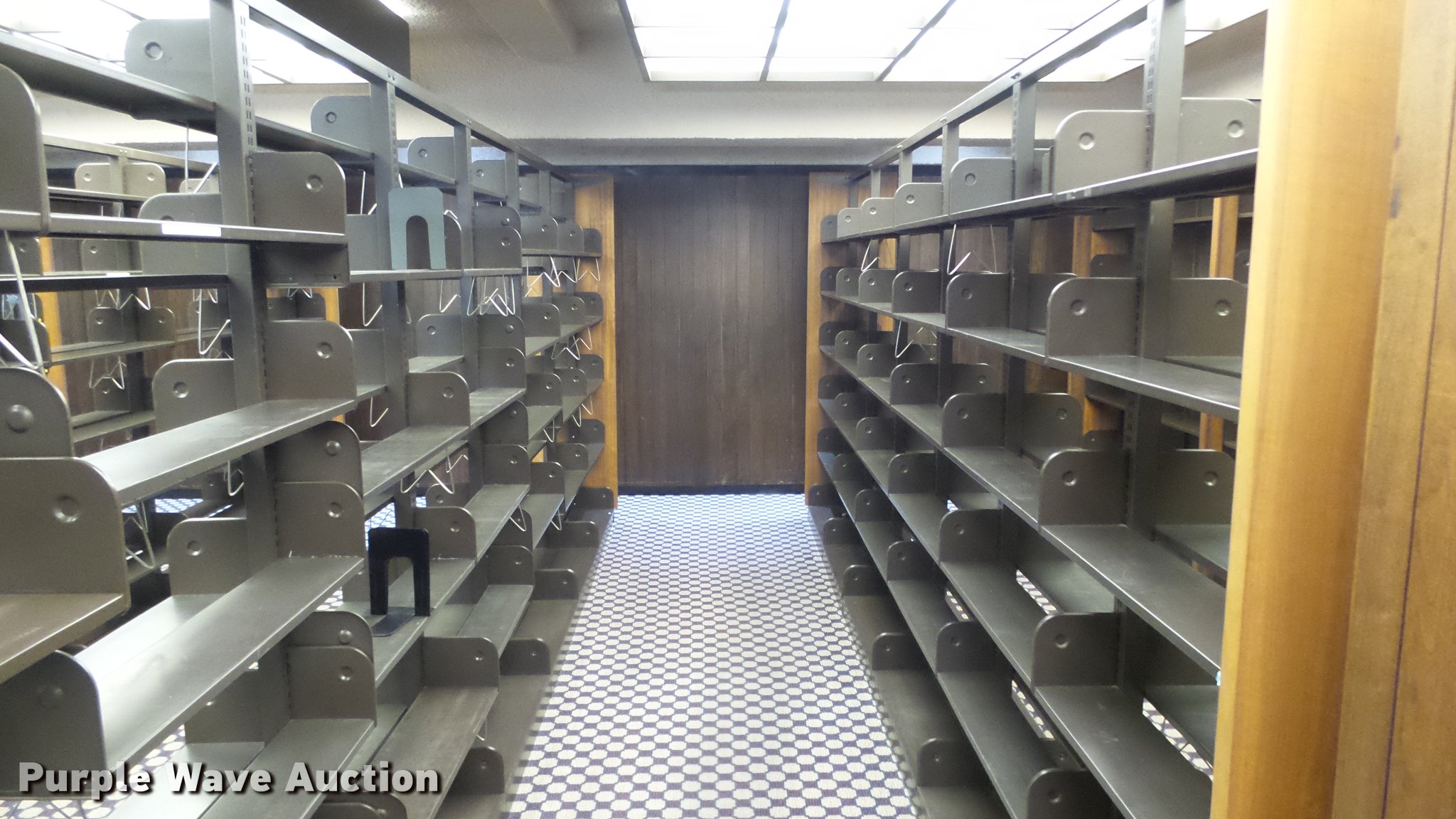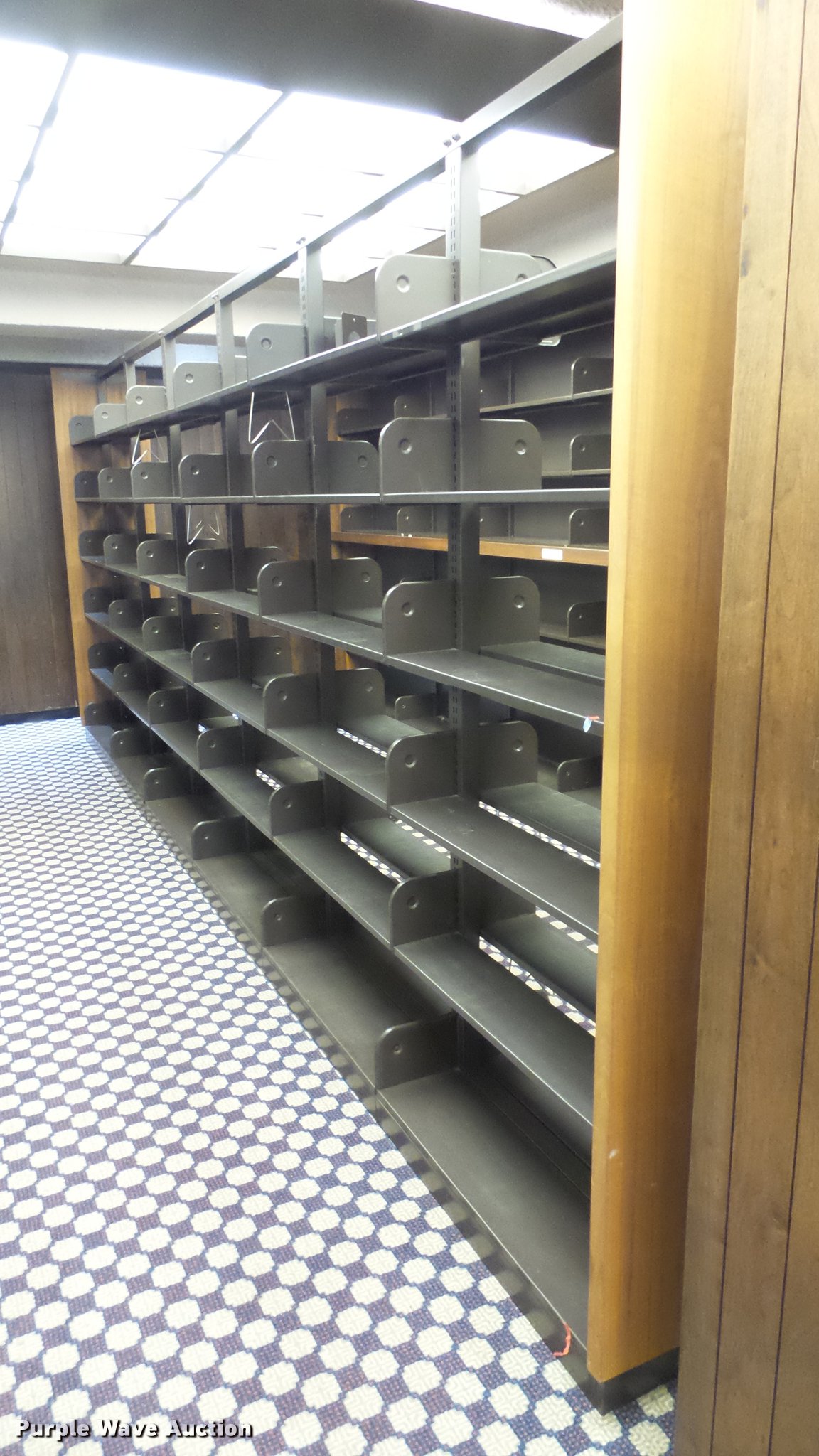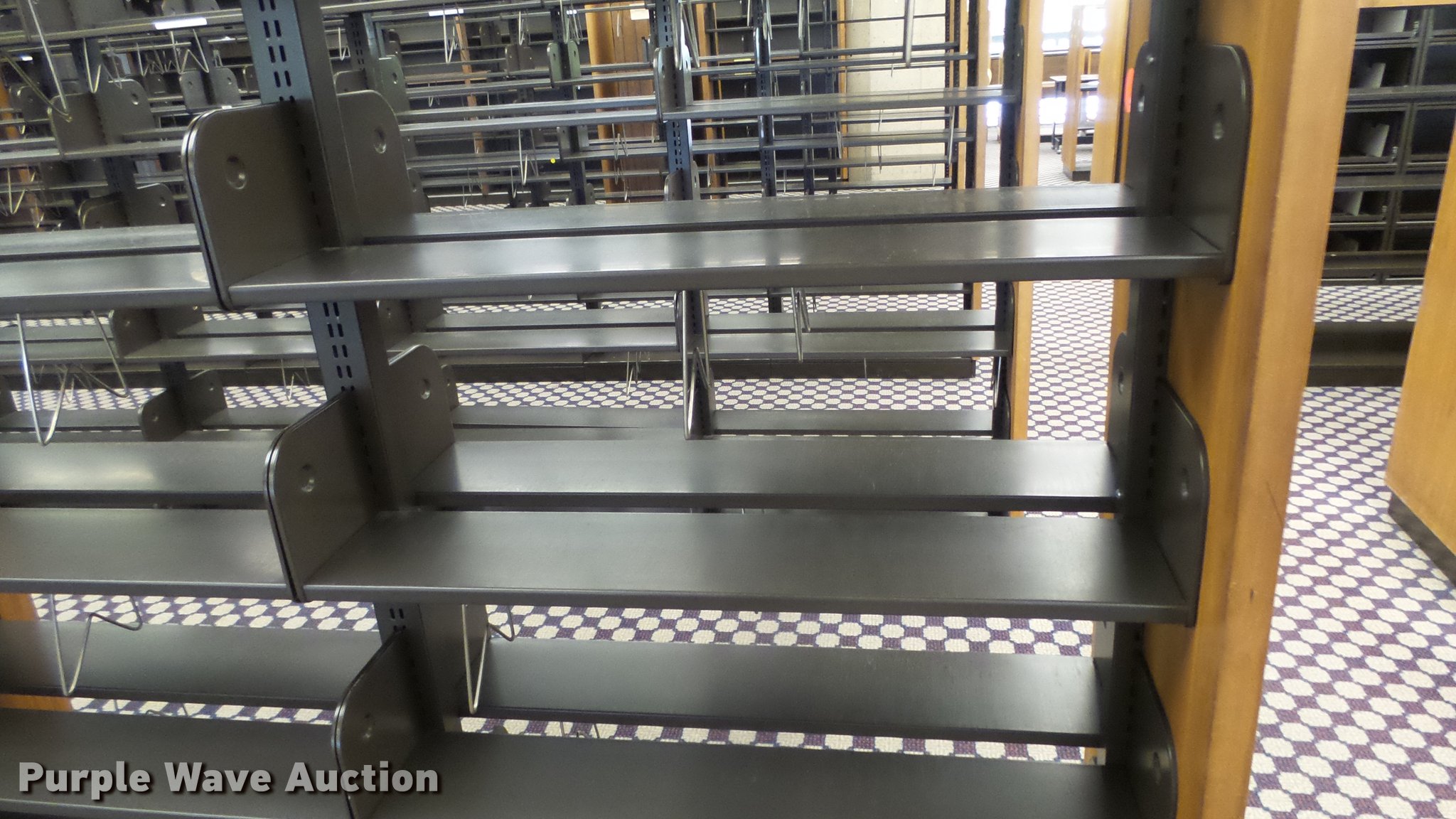 Purple Wave is selling a used Shelving and Storage in Kansas. This item is a (8) floor-to-ceiling style bookshelves with the following: 6-7 tier, Adjustable, Steel frames and shelves, Wood sides and top, Back to back shelves, (2) 75"W x 22'D x 91"H, 291.5"W x 22"D x 91"H, 219"W x 22"D x 91"H, 327"W x 22"D x 91'H, Location 2nd floor
