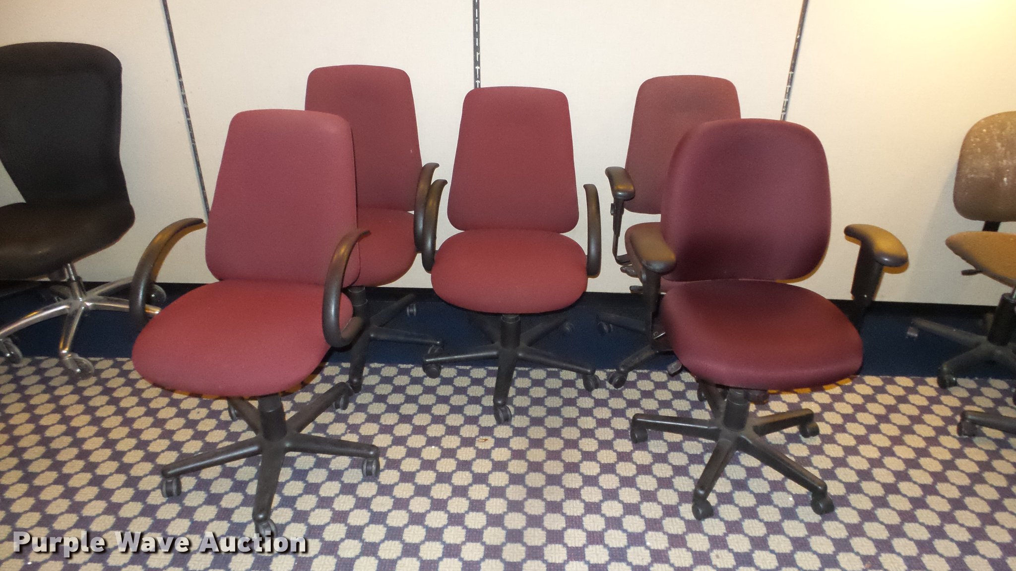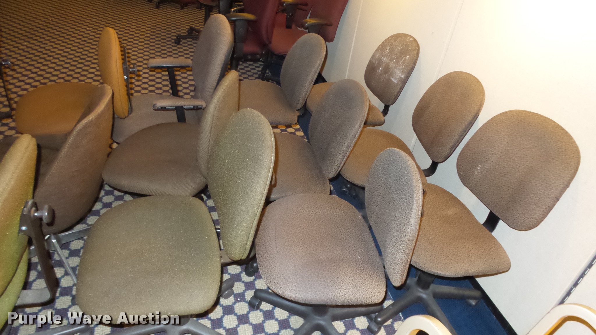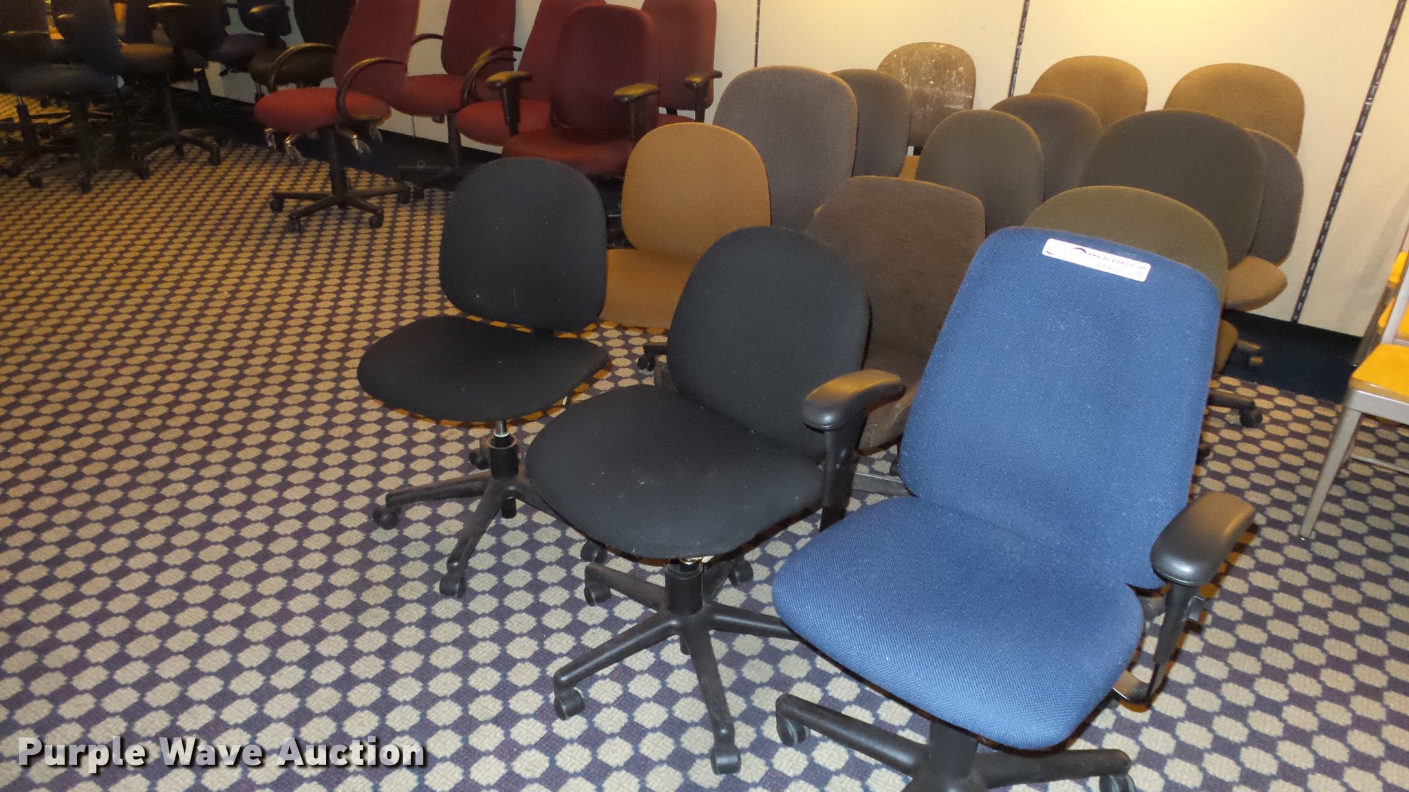 Purple Wave is selling a used Furniture in Kansas. This item is a Approximately 30 chairs with the following: Stationary chairs not included, Location 3rd floor