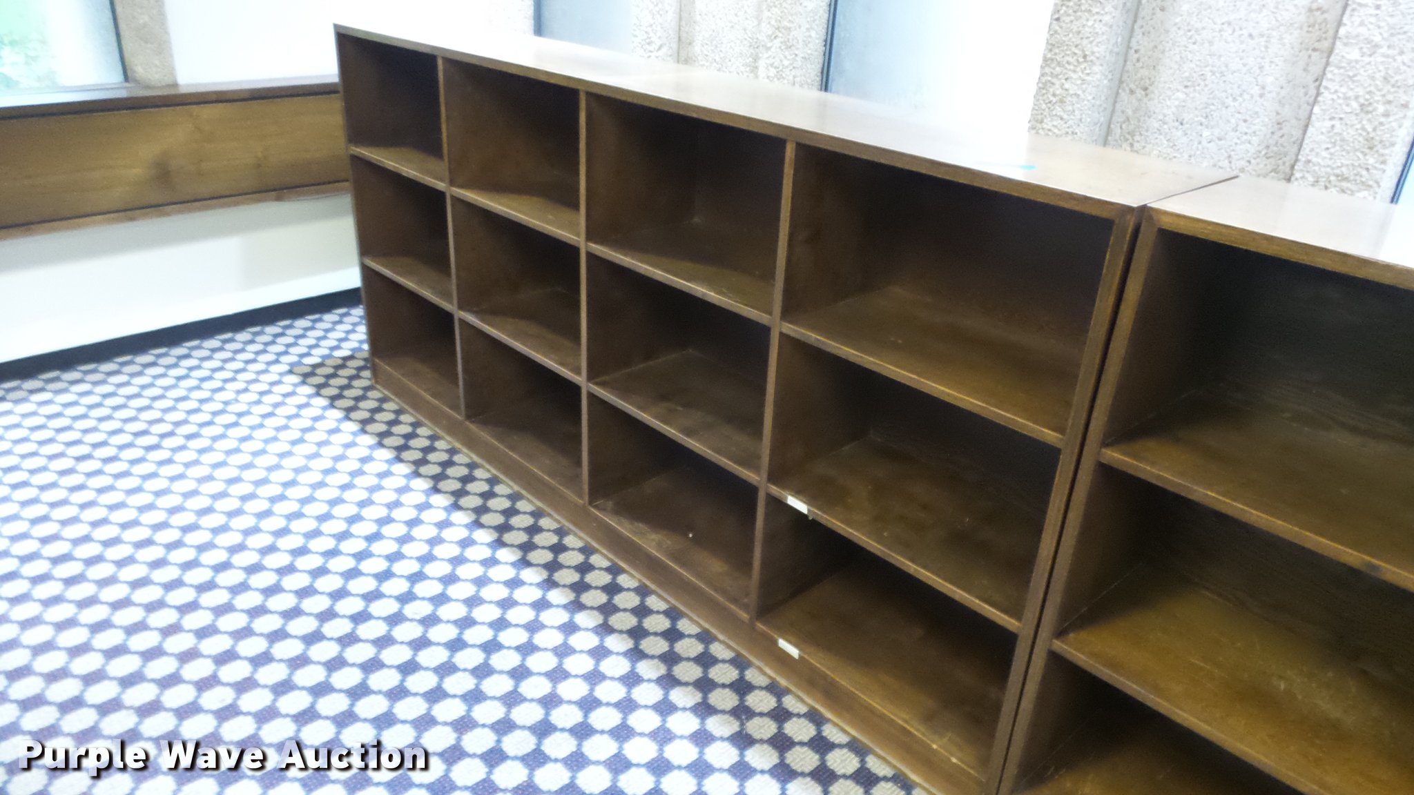 Purple Wave is selling a used Shelving and Storage in Kansas. This item is a (3) wood bookshelves with the following: 8' x 14" x 47"H, Location 3rd floor