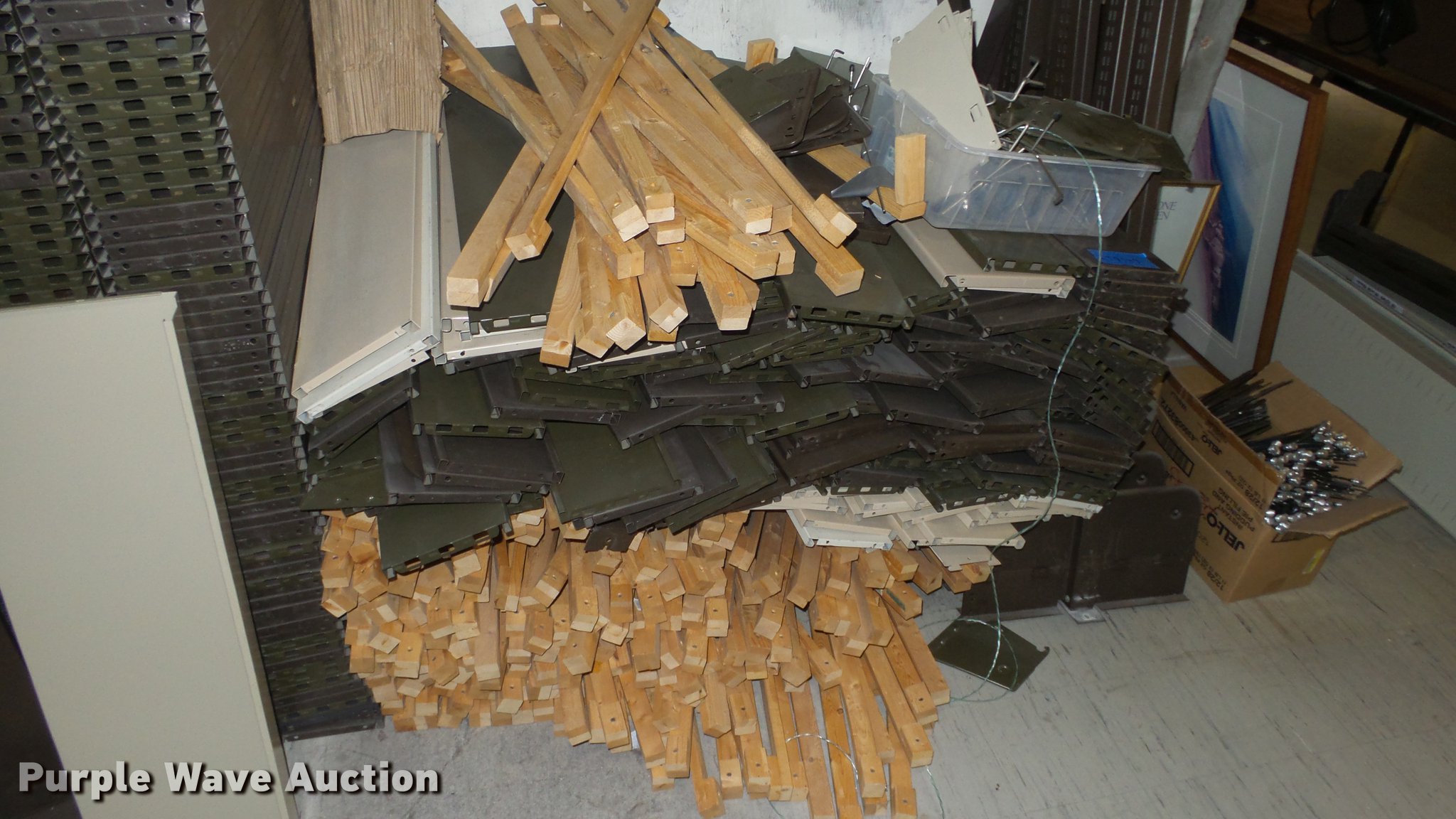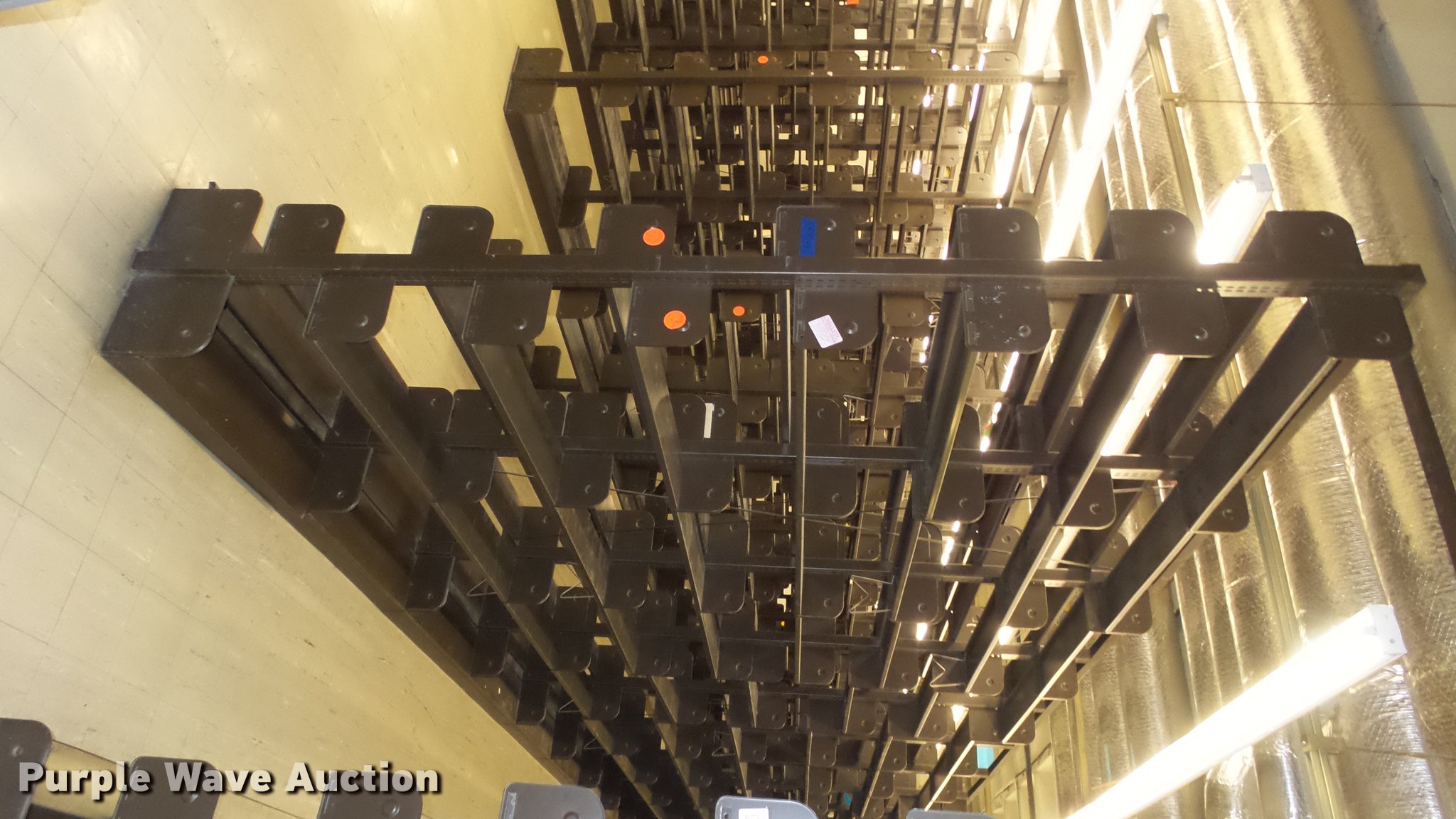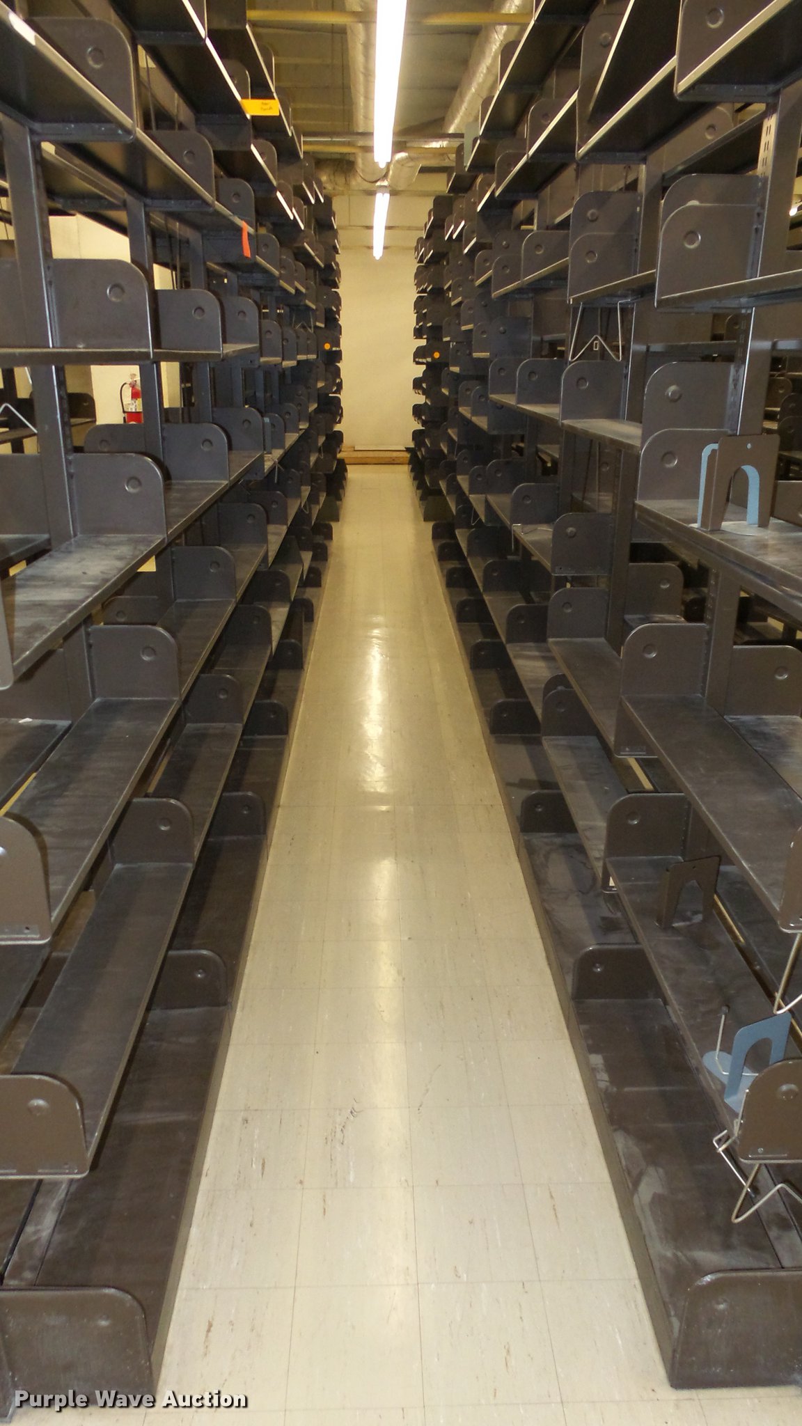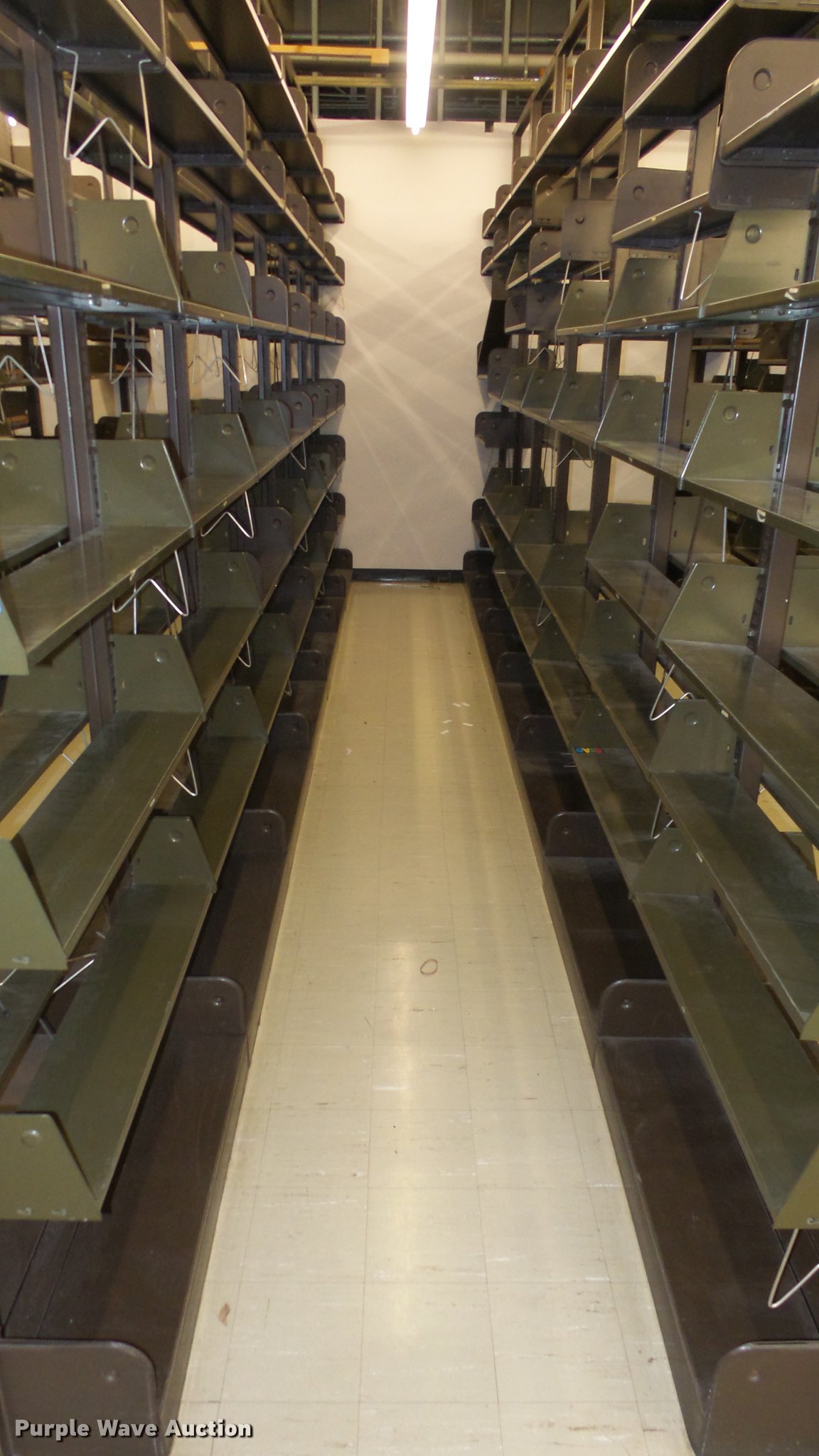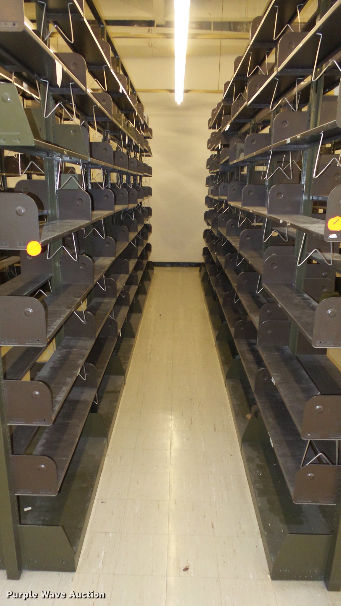 Purple Wave is selling a used Shelving and Storage in Kansas. This item is a Bookcases with the following: (63) sections, Approximately 1,000', 6' to 30' sections, Most 18' to 24', 8 to 10 shelves per section, 108" to 118"H, 21"W, Additional shelves, brackets, uprights, and back stops, Location basement #12, 13, 4, 5