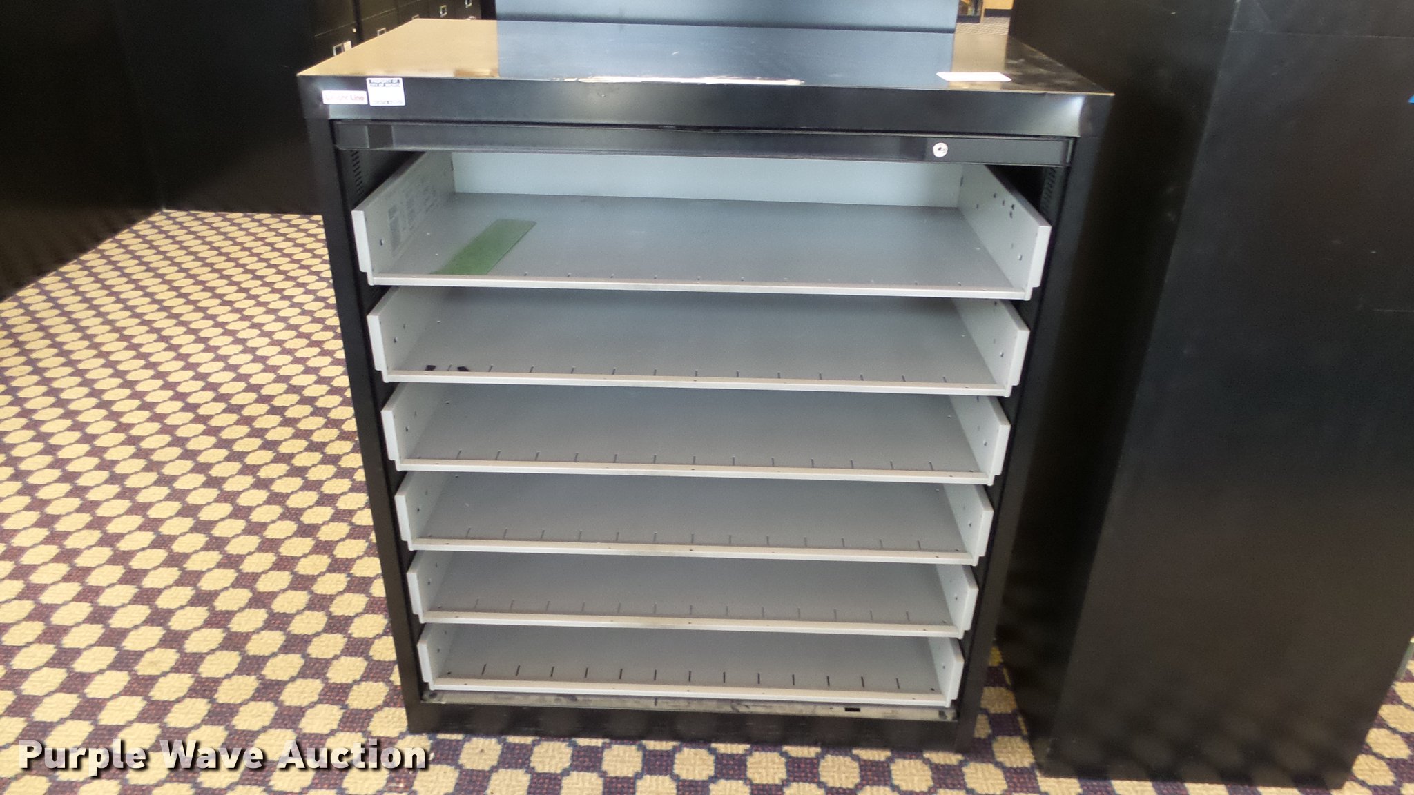 Purple Wave is selling a used Office Supplies and Equip. in Kansas. This item is a (20) index card cabinets with the following: Assorted makes and models, Steel construction, Most are nine drawer, Most are approx 20" x 28" x 52"H, Location 1st floor