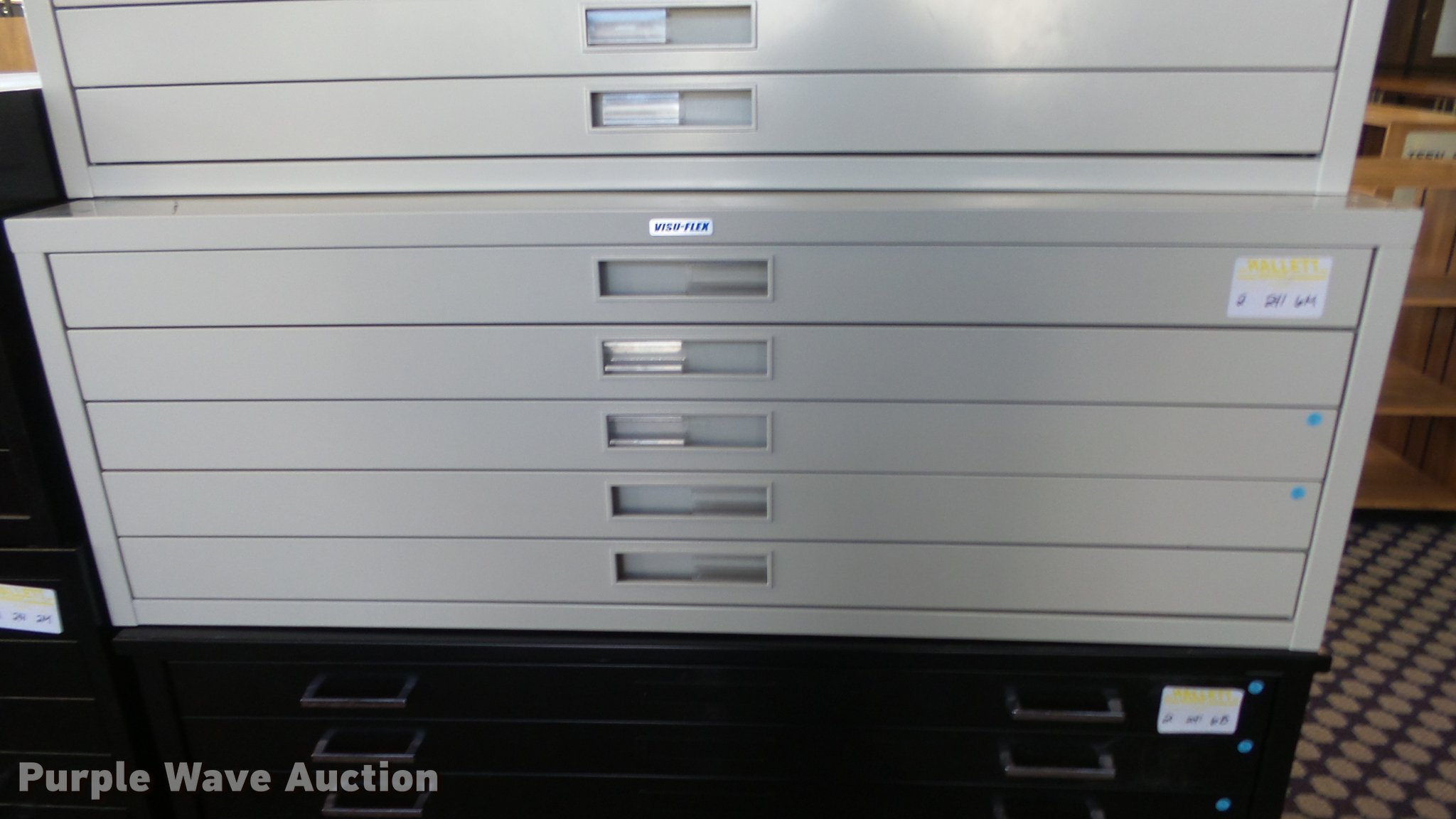 Purple Wave is selling a used Office Supplies and Equip. in Kansas. This item is a (3) map cabinets with the following: (2) Visuflex, Five drawer, 46" x 35" x 16"H, Unknown make, Legs, Five drawer, 46" x 35" x 16"H, Location 1st floor