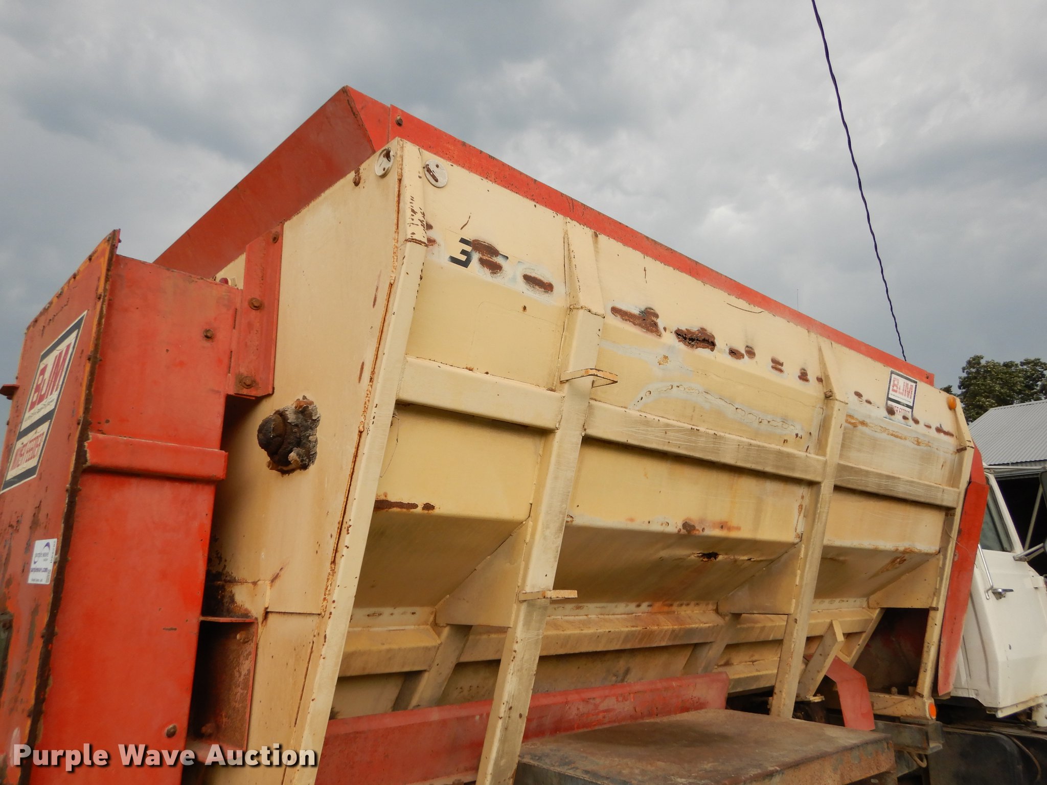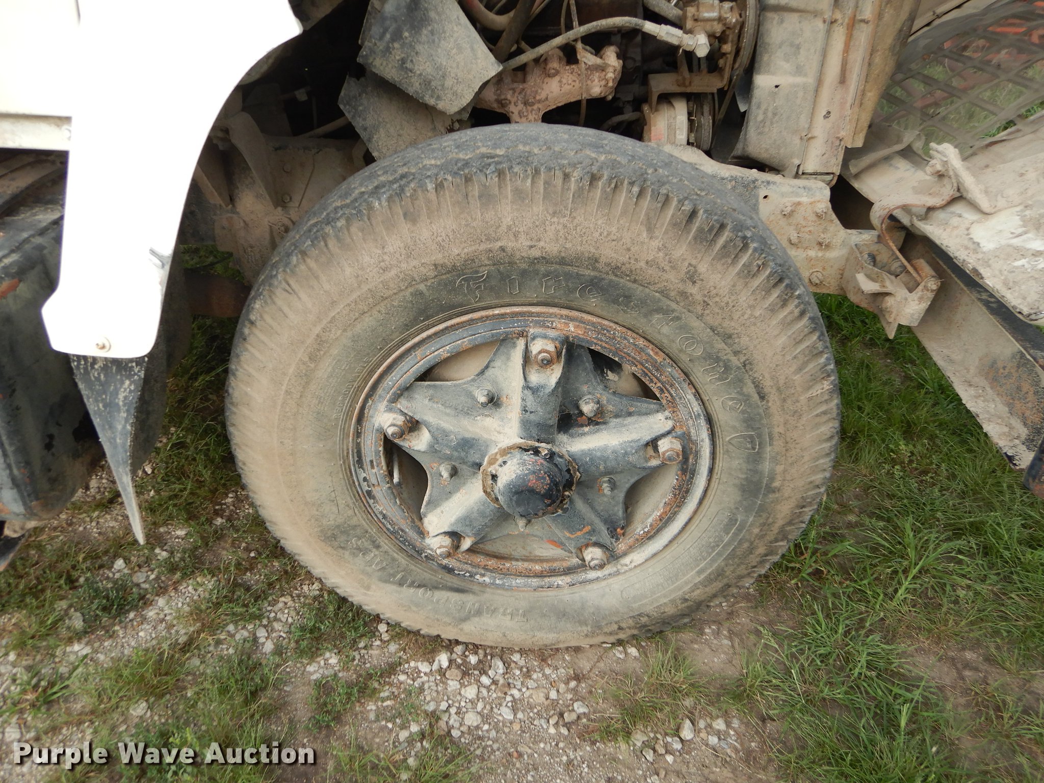 Purple Wave is selling a used Fertilizer or Feed Delivery Truck in Kansas. This item is a 1973 Ford 700 feed mixer truck with the following: 31,235 miles on odometer, Ford 361HD eight cylinder gas engine, Five speed manual transmission, Heat, Vinyl interior, BJM 3312 mixer bed, Hydraulic side chute, Serial 395250, Spring suspension, Hydrualic brakes, 14' wheelbase, 9.00-20 tires, Hood damage, Weak battery, Last used in 2008