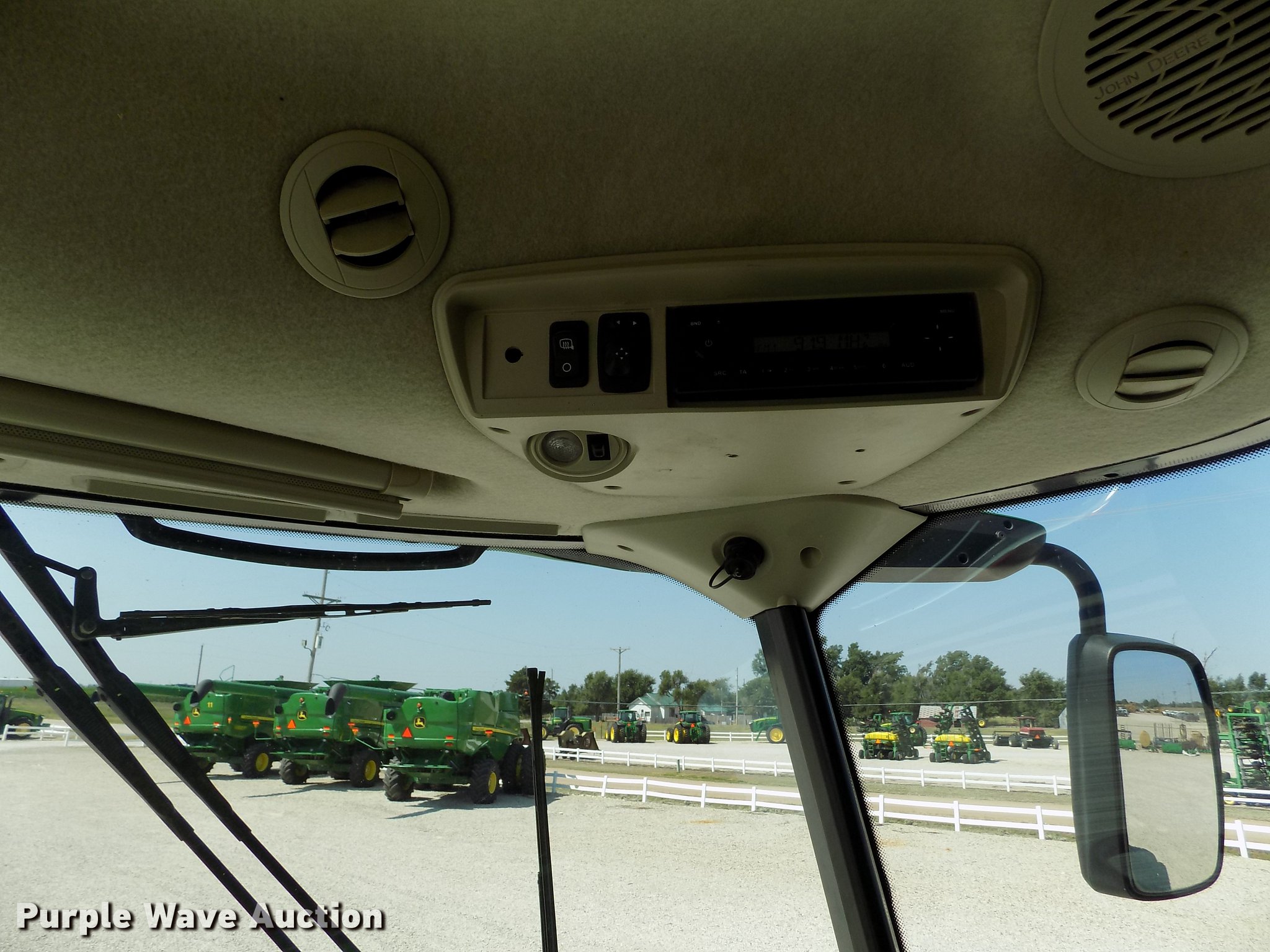 2013 John Deere S670 STS combine. 3,133 engine hours on meter, 2,077 separator hours on meter, John Deere 6090HH015 9.0L six cylinder turbo diesel engine 373 HP, ProDrive transmission 3F-1R gears, Differential lock, Feeder house Lateral tilt, Variable speed, Two speed rotor, Single point header coupler, AC and heat, AM/FM, Tilt steering wheel, Air suspension seat, Visors, Work lights, Ether start, Yield monitor, Straw chopper, Chaff spreader, Power tailboard, 300 bushel grain capacity, Maurer bin extensions, 26'L unloading auger, Round concaves, GreenStar ready, 520/85R42 front tires, 28LR26 rear tires, Serial 1H0S670SHD0755839, Unit# 6. Great Bend, KS 67530