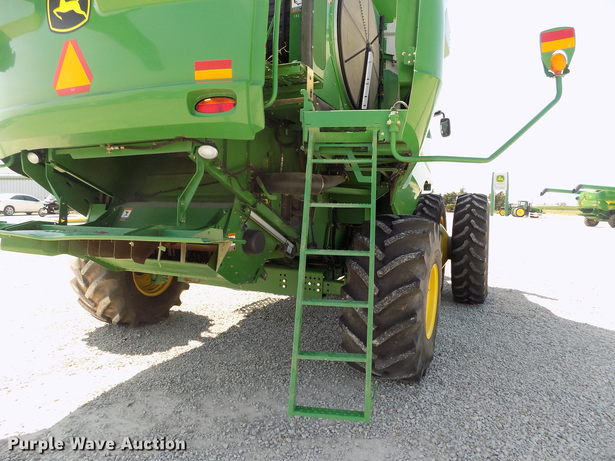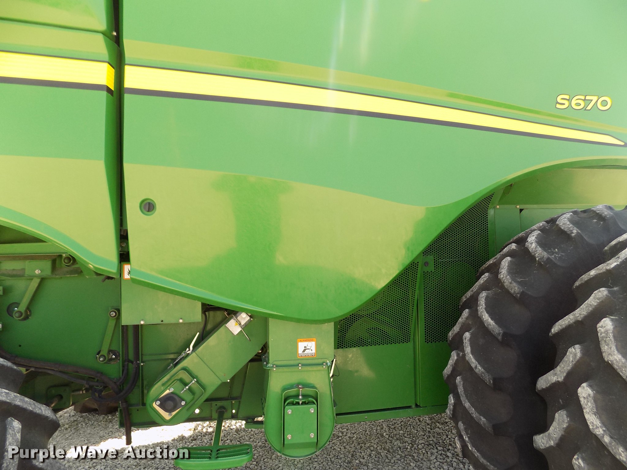 Purple Wave is selling a used Combine in Kansas. This item is a 2013 John Deere S670 STS combine with the following: 3,133 engine hours on meter, 2,077 separator hours on meter, John Deere 6090HH015 9.0L six cylinder turbo diesel engine, 373 HP, ProDrive transmission, 3F-1R gears, Differential lock, Feeder house, Lateral tilt, Variable speed, Two speed rotor, Single point header coupler, AC and heat, AM/FM, Tilt steering wheel, Air suspension seat, Visors, Work lights, Ether start, Yield monitor, Straw chopper, Chaff spreader, Power tailboard, 300 bushel grain capacity, Maurer bin extensions, 26'L unloading auger, Round concaves, GreenStar ready, 520/85R42 front tires, 28LR26 rear tires, Serial 1H0S670SHD0755839, Unit# 6