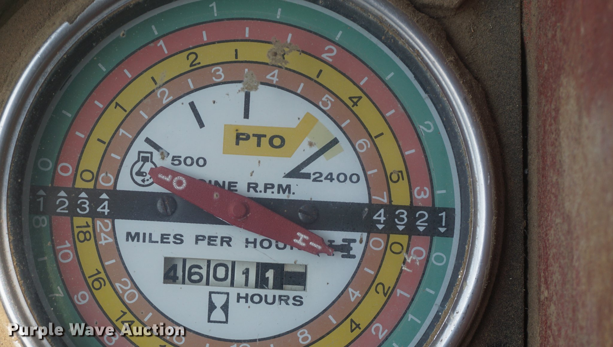 Purple Wave is selling a used Tractor in Kansas. This item is a 1972 International 1466 tractor with the following: 4,601 hours on meter, International six cylinder turbo diesel engine, Torque amplifier transmission, 8F-2R gears, Suspension seat, Three point, Top link, 540/1000 PTO, (2) rear hydraulic remote sets, 10.00-16 front tires, 18.4R38 dual rear tires, Serial 2650116U011665