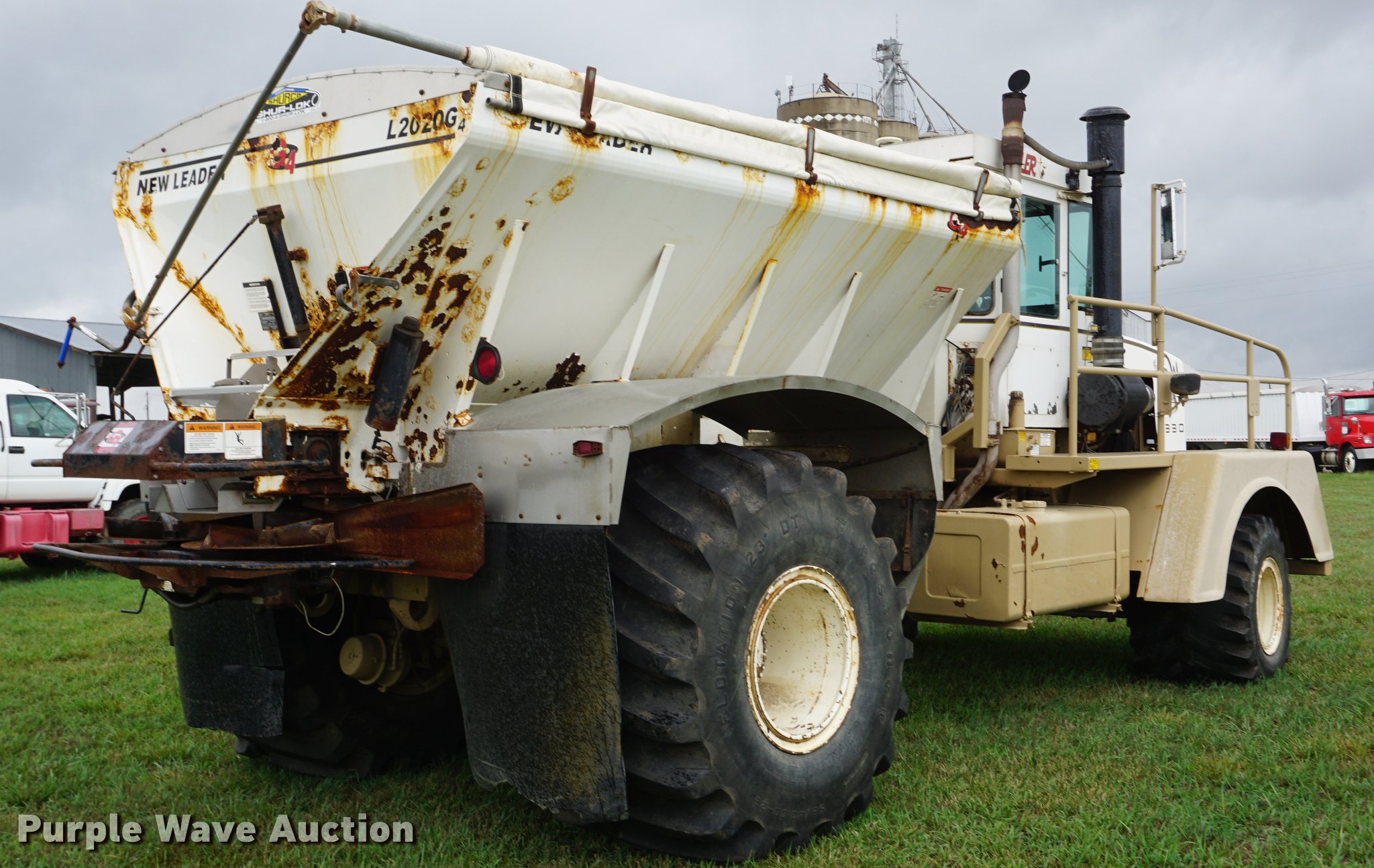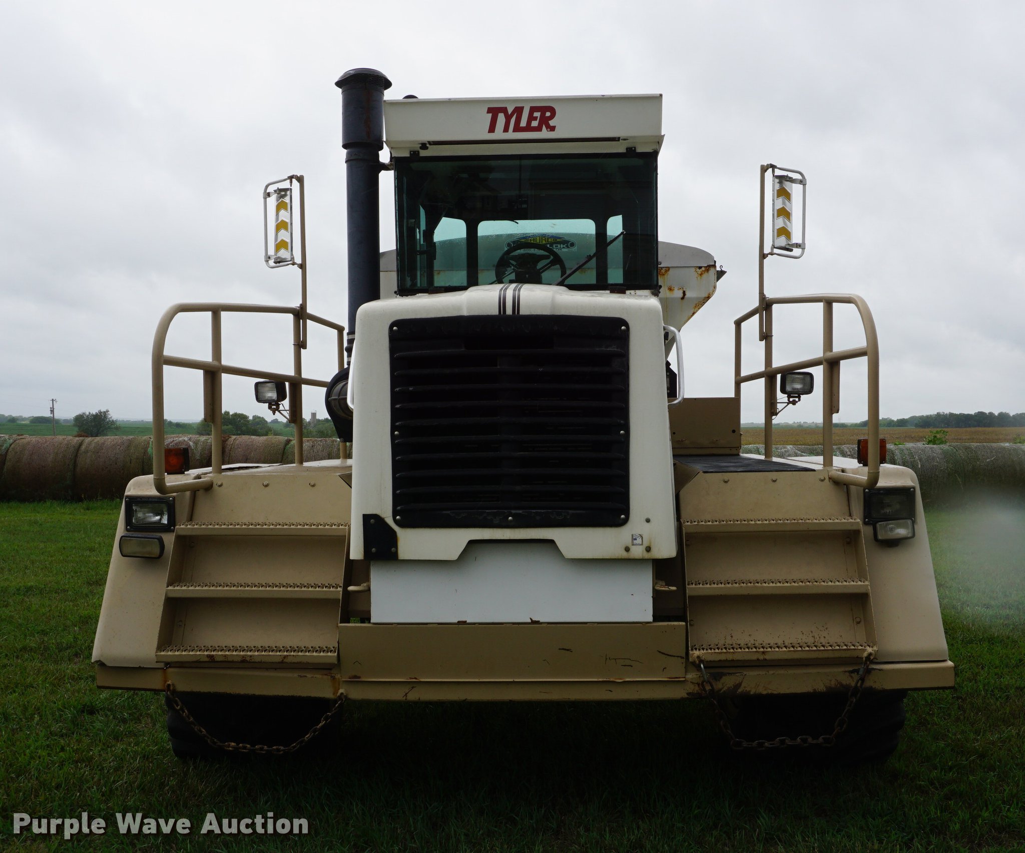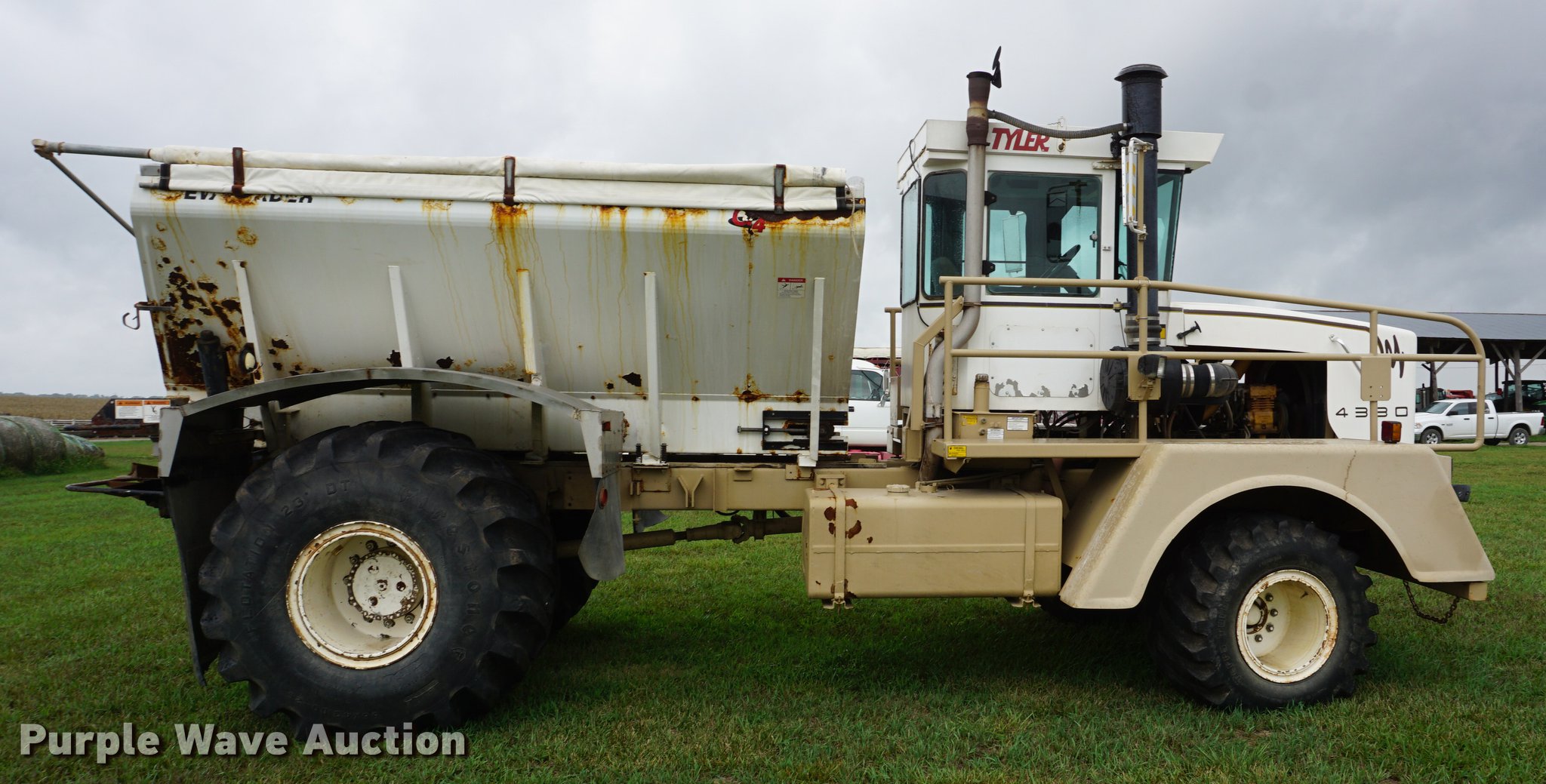 Purple Wave is selling a used Applicator Self Propelled in Kansas. This item is a 1998 Tyler 4330 applicator with the following: 114,017 miles on odometer, 4,578 engine hours on meter, Caterpillar 3208 V8 turbo diesel engine, 330 HP, Allison automatic transmission, Two speed rear end, AC and heat, AM/FM, Suspension seat, Mark IV spreader control, Ag Leader light bar, New Leader L2020G4 dry fertilizer spreader bed, 12'L, Dual spinners, 20"W conveyor belt, Roll tarp, 48x31.00-20 front tires, 66x43.00-25 rear tires, Serial 43300804L01