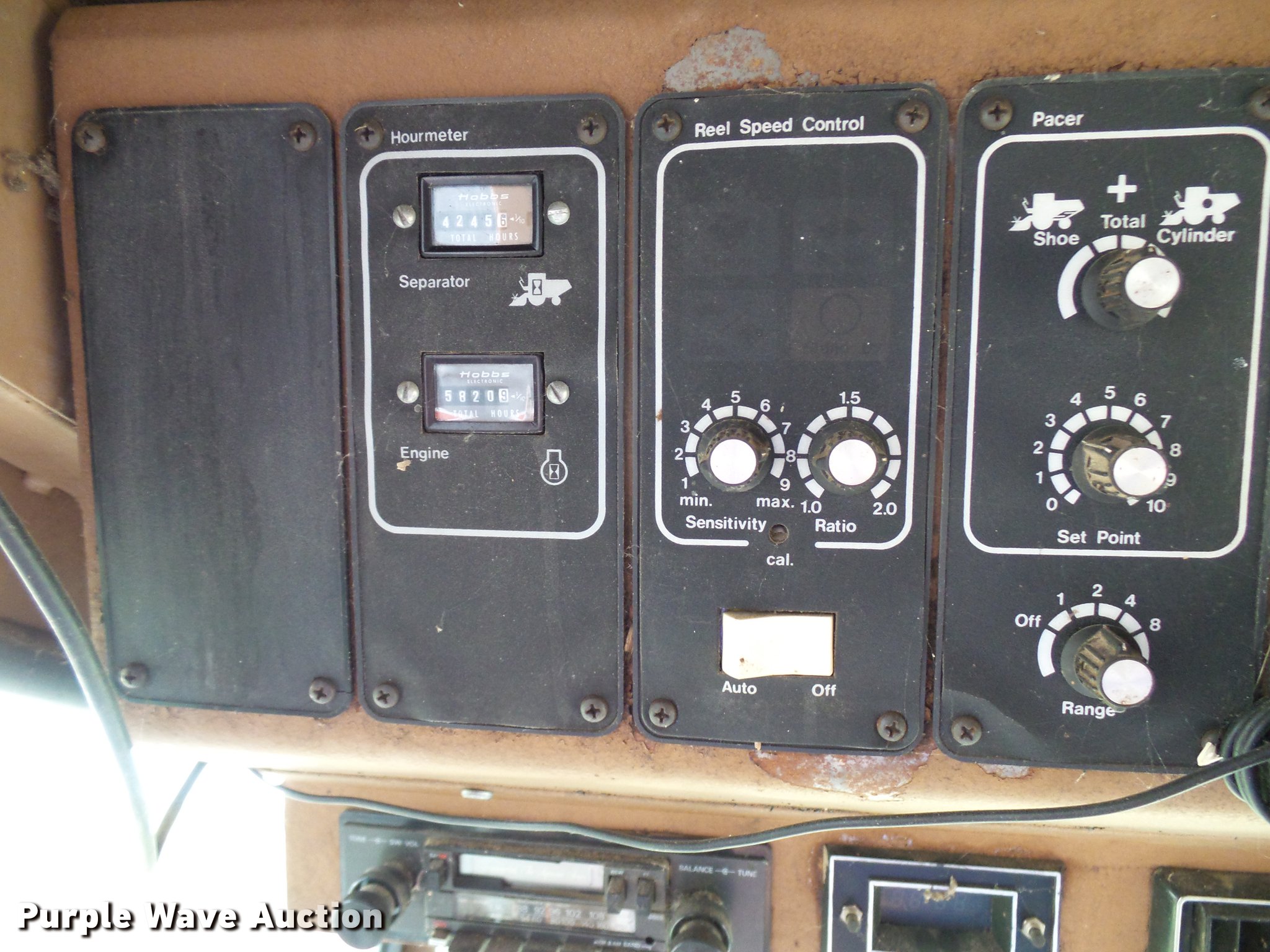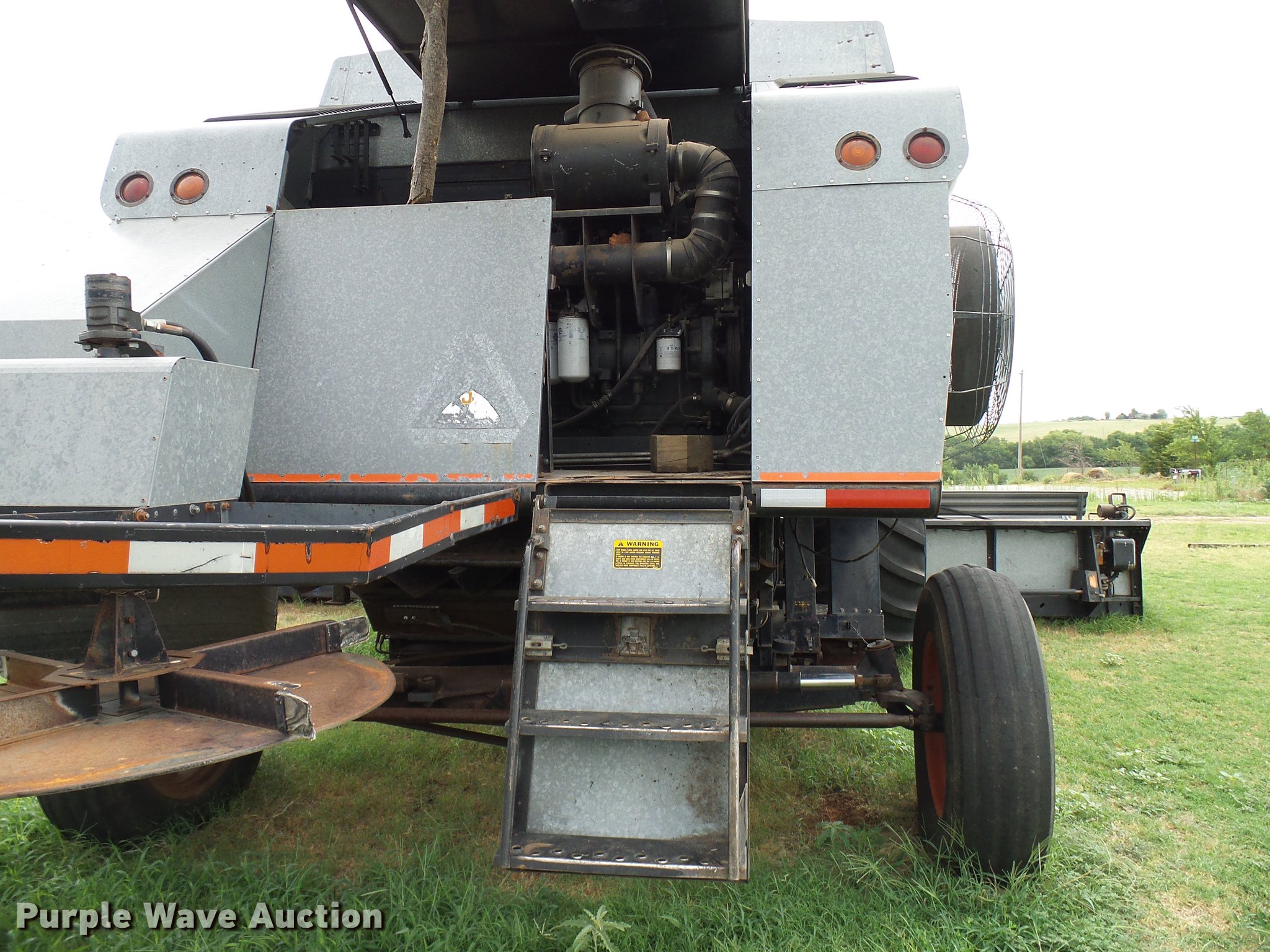 Purple Wave is selling a used Combine in Oklahoma. This item is a Gleaner N7 combine with the following: 5,820 engine hours on meter, 4,245 separator hours on meter, Allis Chalmers six cylinder turbo diesel engine, Hydrostatic transmission, 4F gears, Feederhouse, Reverser, AC and heat, Tilt steering wheel, AM/FM, Suspension seat, Feederhouse, Reverser, Round concaves, Chaff spreader, Straw chopper, Work lights, Armstrong 30.5L-32 front tires, Armstrong 11-24SL rear tires, Header not included, Serial N7K00558218585