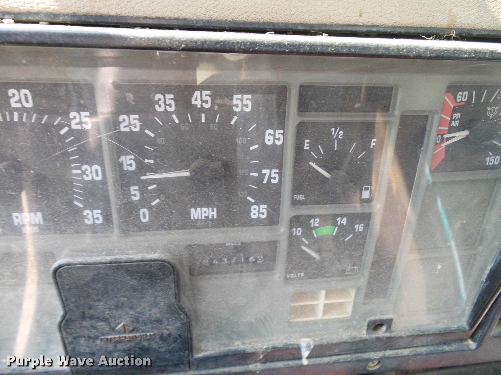 Purple Wave is selling a used Livestock Equip. in Colorado. This item is a 1991 International 8200 livestock truck with the following: 743,716 miles on odometer, Caterpillar 3176 10.3L L6 turbo diesel engine, 325 HP, Serial 24606975, Manual transmission, Tandem axle, Inter-axle differential lock, AC and heat, Cruise, AM/FM, Air suspension seat, Single rear exhaust stack, Air operated fifth wheel plate, Wilson aluminum livestock bed, Interior dividers, Dual rear roll up doors, Dual fuel tanks, Mud flaps, Air brakes, 240" wheelbase, 11R22.5 tires, GVWR 50,000 lbs, FAWR 12,000 lbs, IAWR 19,000 lbs, RAWR 19,000 lbs, Unit# 4526