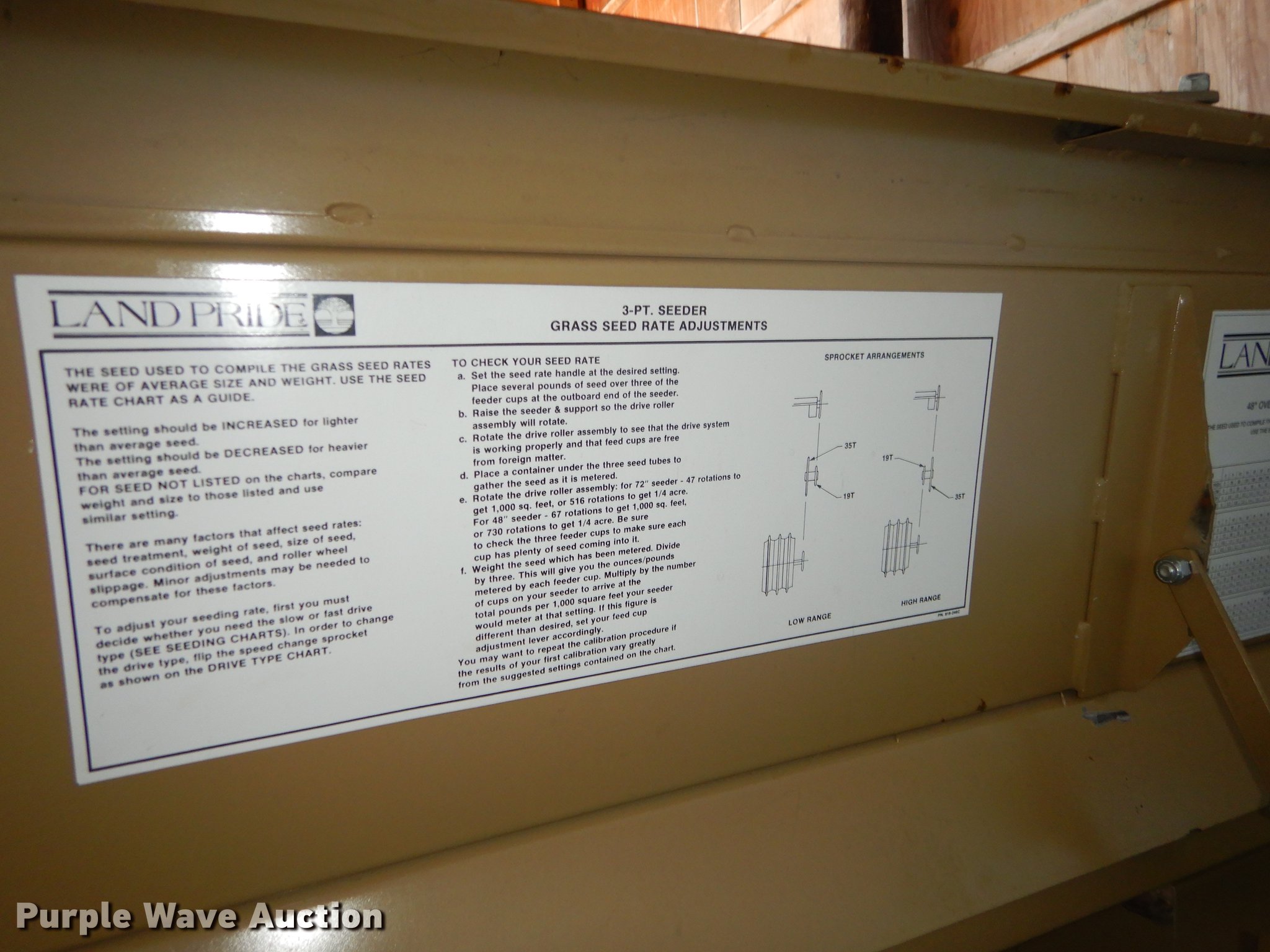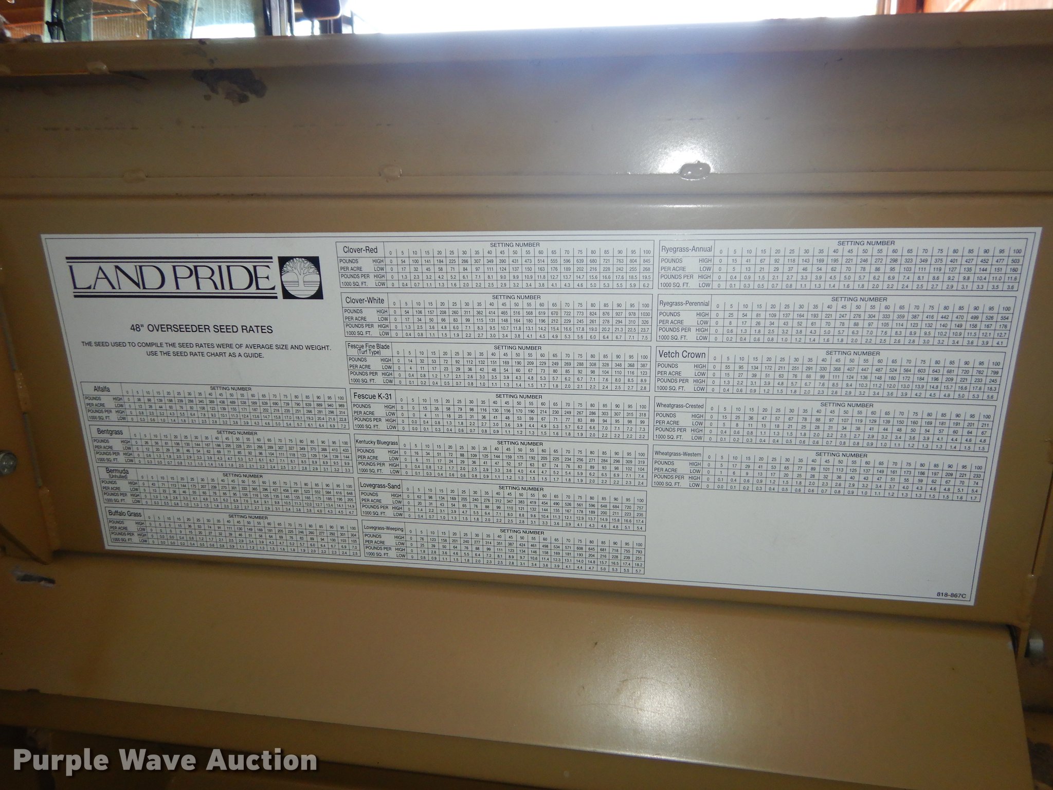 Purple Wave is selling a used Grain Drill or Seeder in Kansas. This item is a Land Pride OS1548 Solid Stand overseeder with the following: 4'W, Front knives, Rear roller/closer, 540 PTO, Three point, Serial 333901