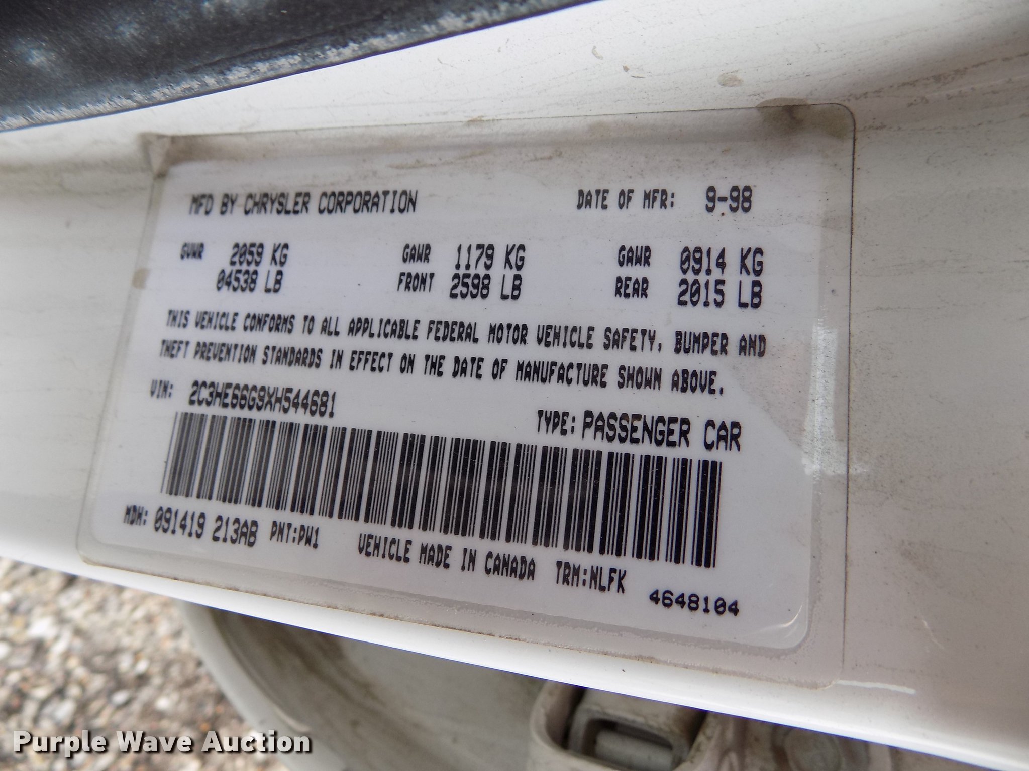 Purple Wave is selling a used Passenger Vehicle in Kansas. This item is a 1999 Chrysler 300M with the following: Unknown miles on odometer, 3.5L V6 SOHC 24V gas engine, Automatic transmission, AC and heat, Tilt, Cruise, AM/FM/CD, Power windows, locks, and seat, Leather interior, Power sunroof, 225/55R17 tires, Hood will not open, No keys, Unknown operating condition