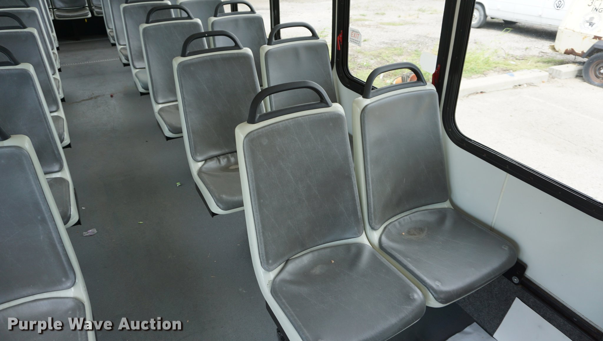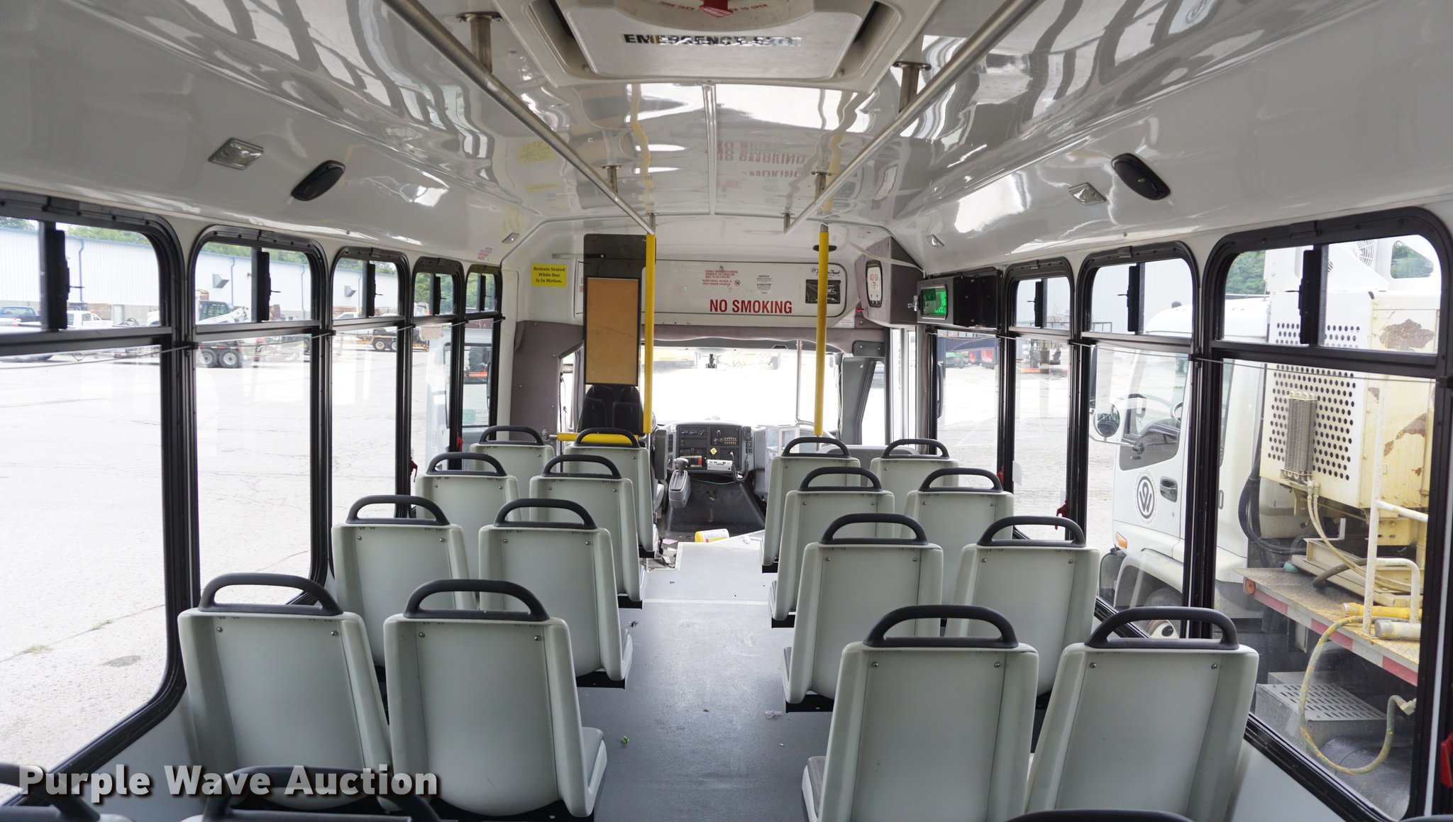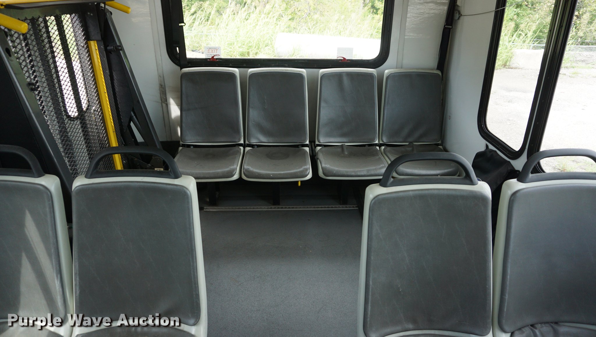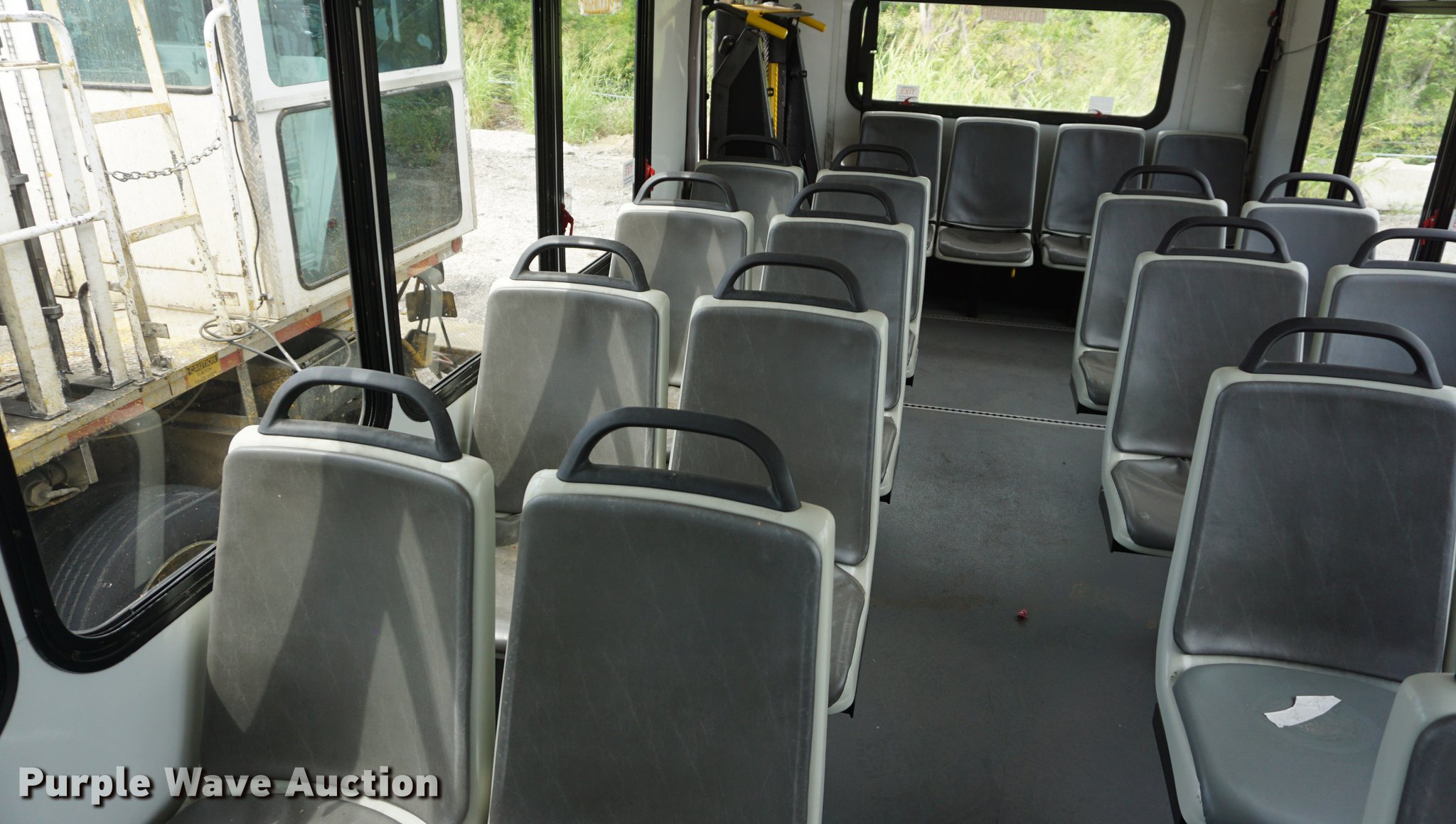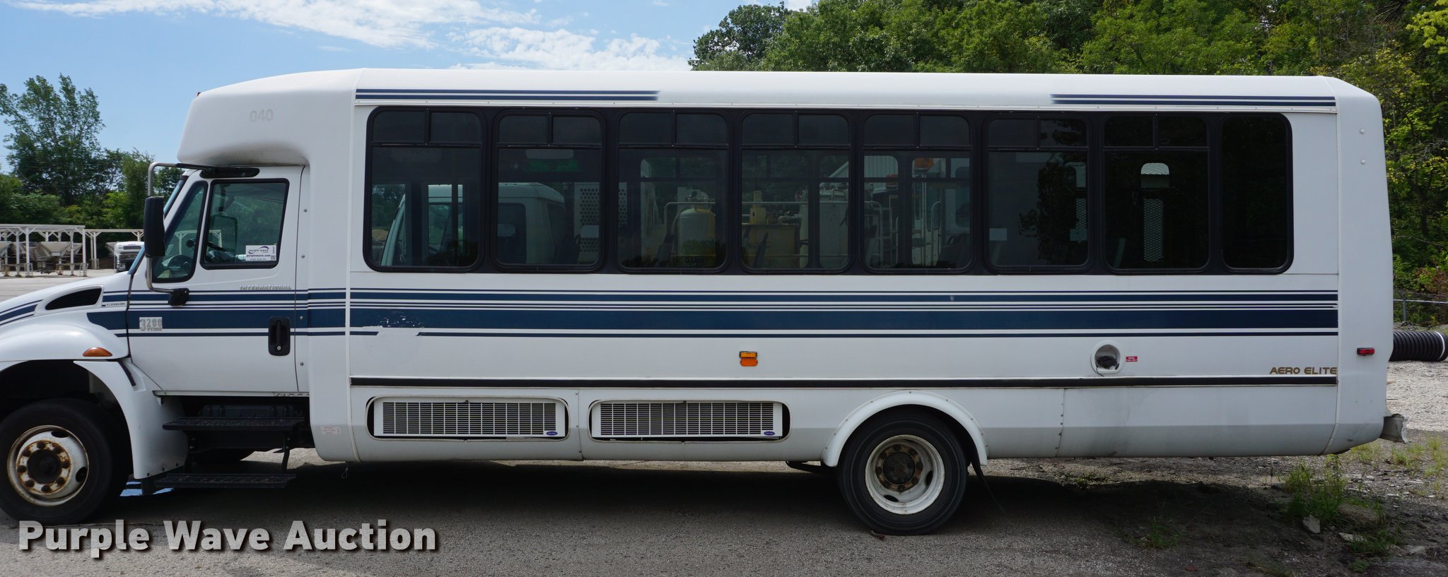 Purple Wave is selling a used Bus in Kansas. This item is a 2007 International 3200 shuttle bus with the following: 132,685 miles on odometer, 14,458 hours on meter, International VT365 6.0L V8 turbo diesel engine, Automatic transmission, Single axle, AC and heat, Rear AC, Suspension seat, Ceiling handrail, 28 passenger capacity, Braun NL919F1B wheelchair lift, Wheelchair tie down area, Ceiling, front, and side emergency exits, Front tow hooks, Air suspension, Hydraulic brakes, 245/70R19.5 tires, GVWR 23,500 lbs, Non-operational, Hole in engine block