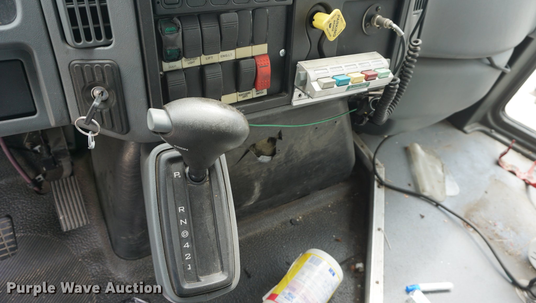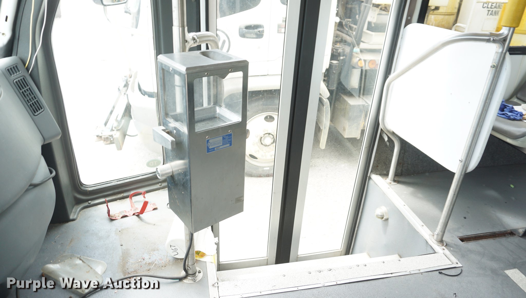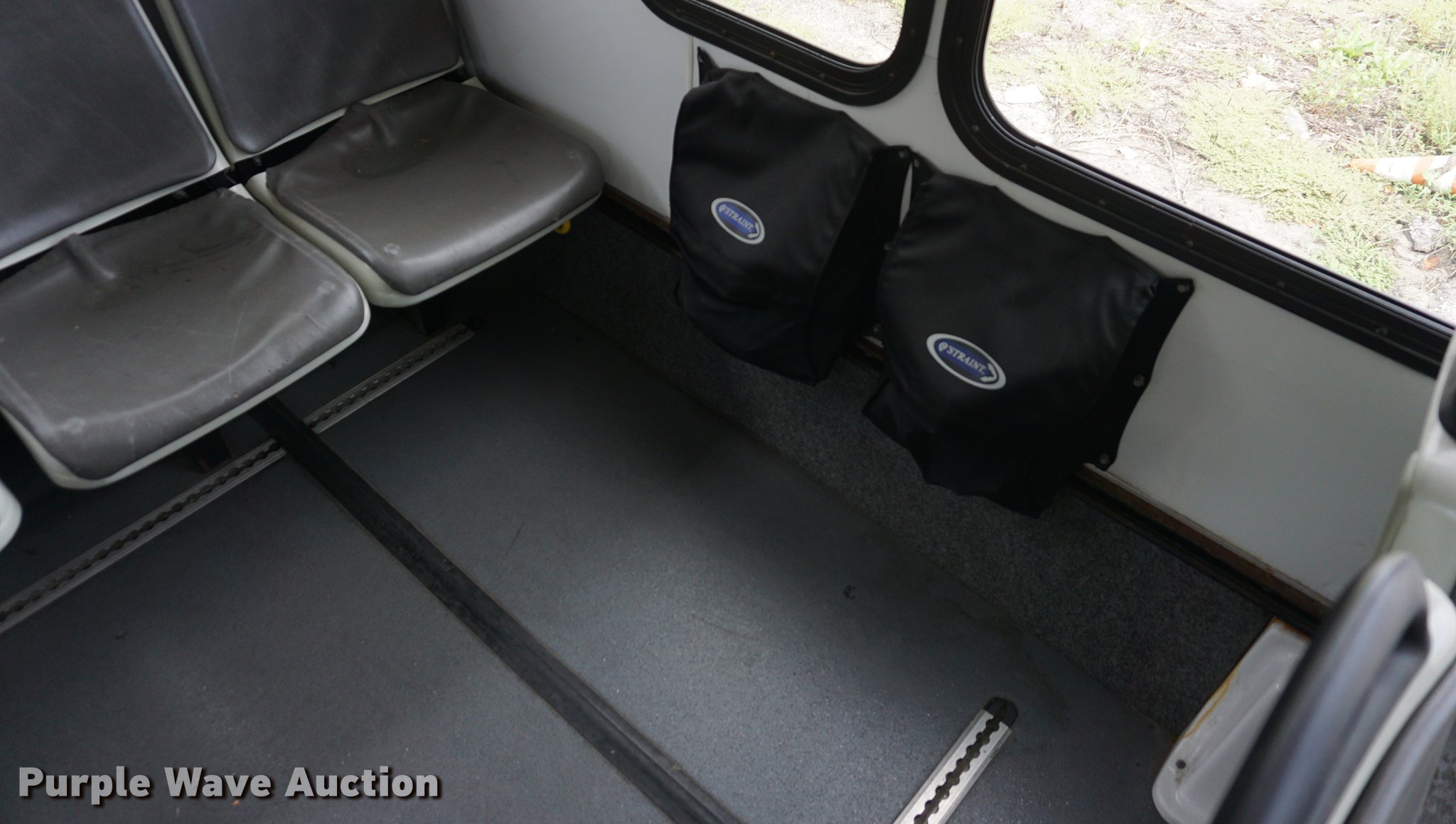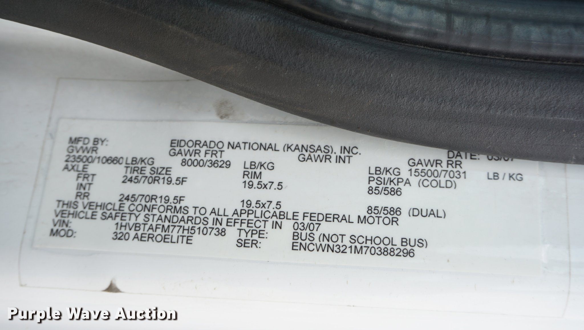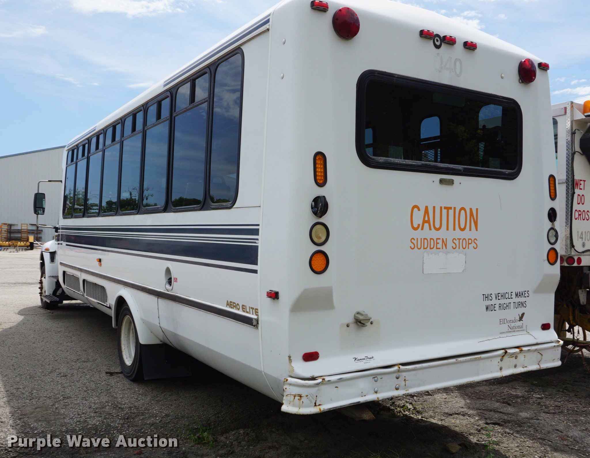 Purple Wave is selling a used Bus in Kansas. This item is a 2007 International 3200 shuttle bus with the following: 132,685 miles on odometer, 14,458 hours on meter, International VT365 6.0L V8 turbo diesel engine, Automatic transmission, Single axle, AC and heat, Rear AC, Suspension seat, Ceiling handrail, 28 passenger capacity, Braun NL919F1B wheelchair lift, Wheelchair tie down area, Ceiling, front, and side emergency exits, Front tow hooks, Air suspension, Hydraulic brakes, 245/70R19.5 tires, GVWR 23,500 lbs, Non-operational, Hole in engine block