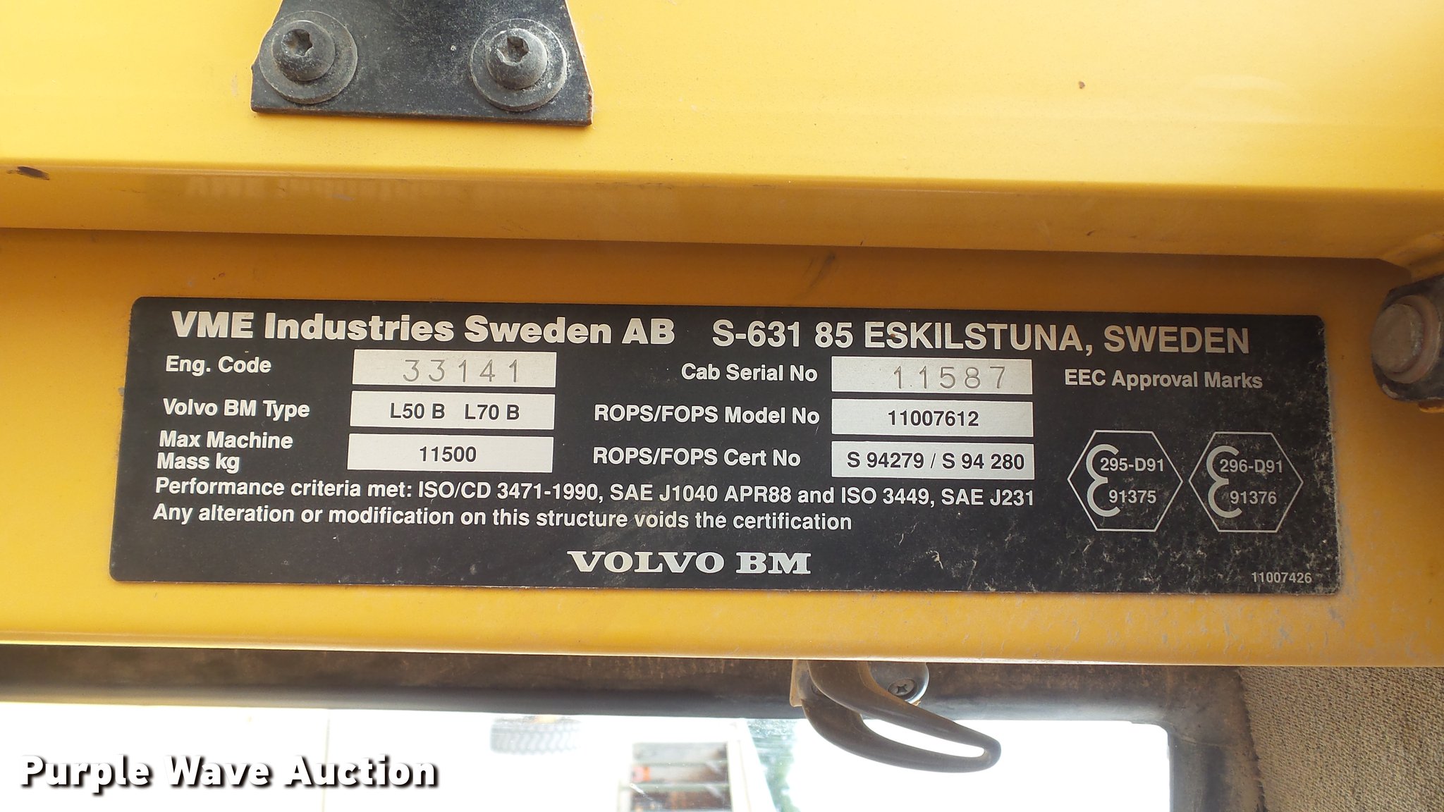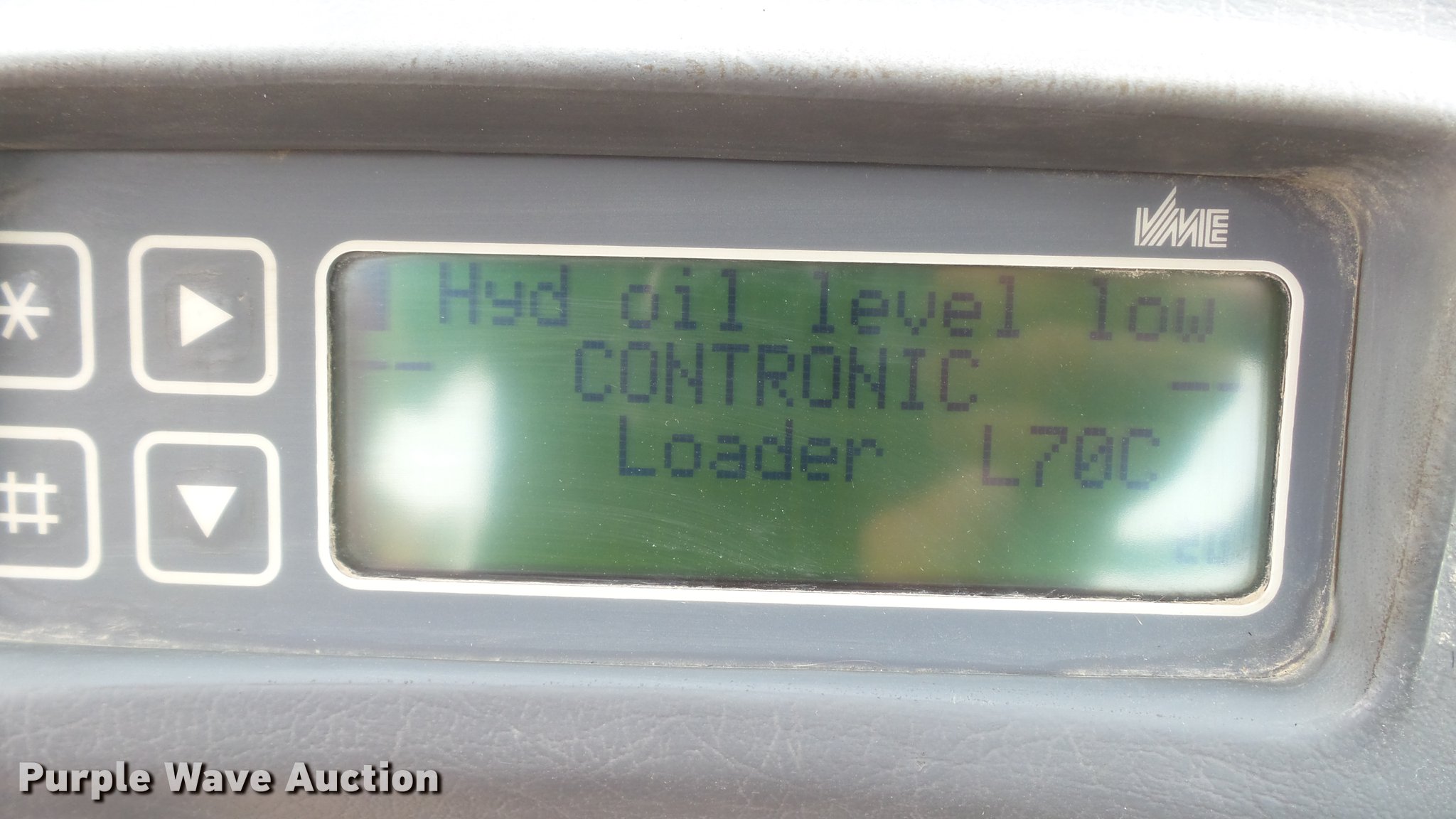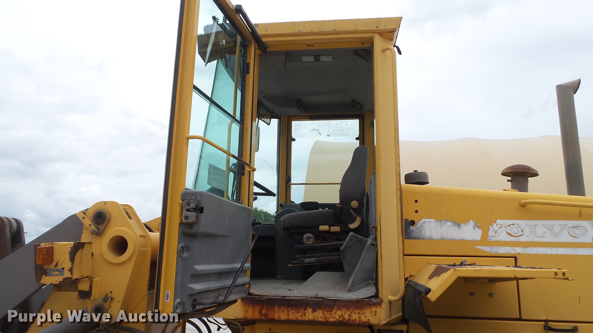 Purple Wave is selling a used Wheel Loader in Missouri. This item is a 1995 Volvo L70C wheel loader with the following: 23,276 hours on meter, Volvo six cylinder turbo diesel engine, Powershift transmission, 4F-4R gears, EROPS, AC and heat, Two-lever bucket controls, Wipers, Front work lights, Block heater, 98"W general purpose bucket, Weld-on cutting edge, Self-leveling, Dymax pallet forks, Hydraulic quick coupler, Front auxiliary hydraulics, 20.5-25 tires, Low engine oil pressure light on, Hydraulic oil leak, Non-operational quick coupler, Serial L70CV11587