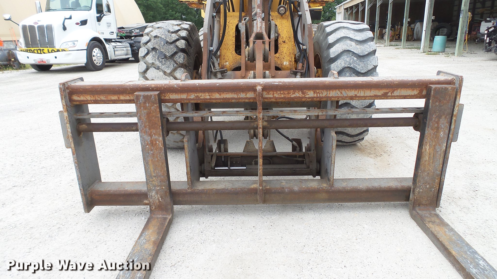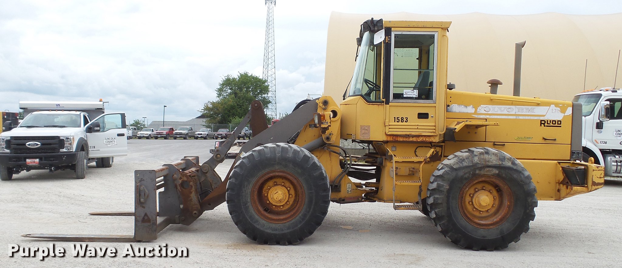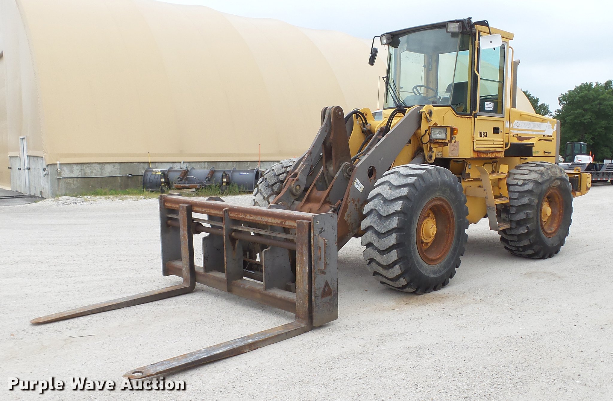 Purple Wave is selling a used Wheel Loader in Missouri. This item is a 1995 Volvo L70C wheel loader with the following: 23,276 hours on meter, Volvo six cylinder turbo diesel engine, Powershift transmission, 4F-4R gears, EROPS, AC and heat, Two-lever bucket controls, Wipers, Front work lights, Block heater, 98"W general purpose bucket, Weld-on cutting edge, Self-leveling, Dymax pallet forks, Hydraulic quick coupler, Front auxiliary hydraulics, 20.5-25 tires, Low engine oil pressure light on, Hydraulic oil leak, Non-operational quick coupler, Serial L70CV11587