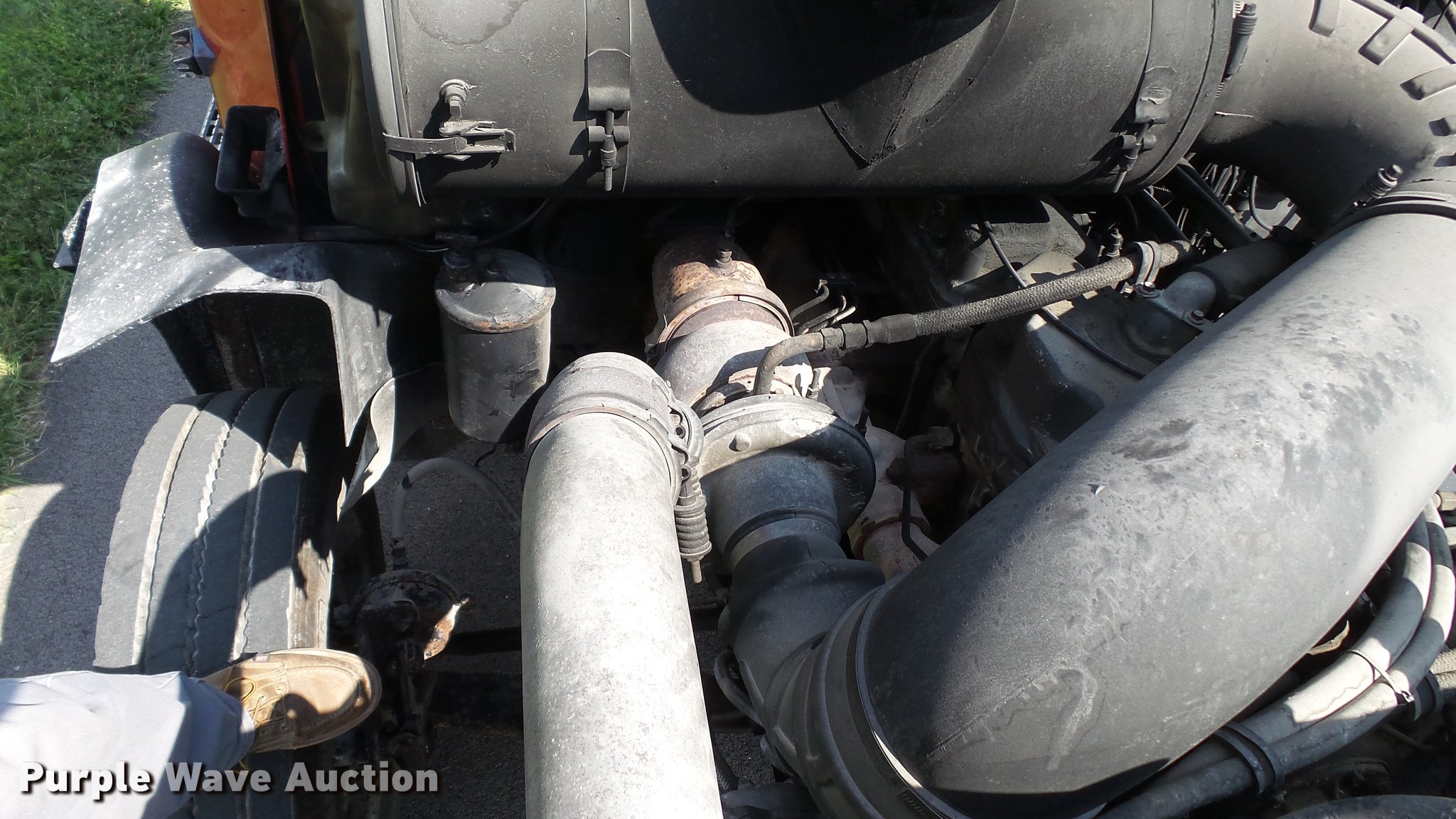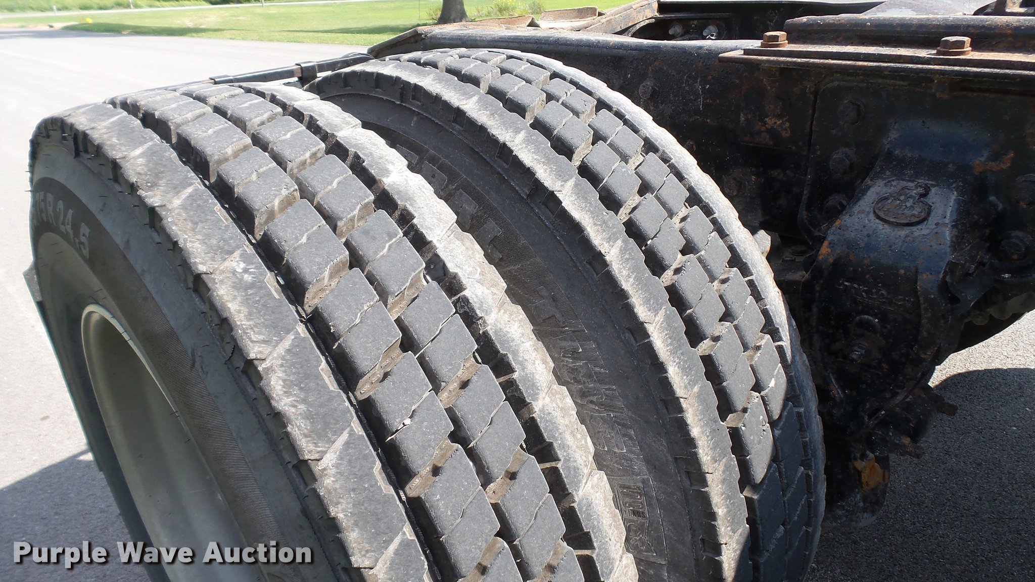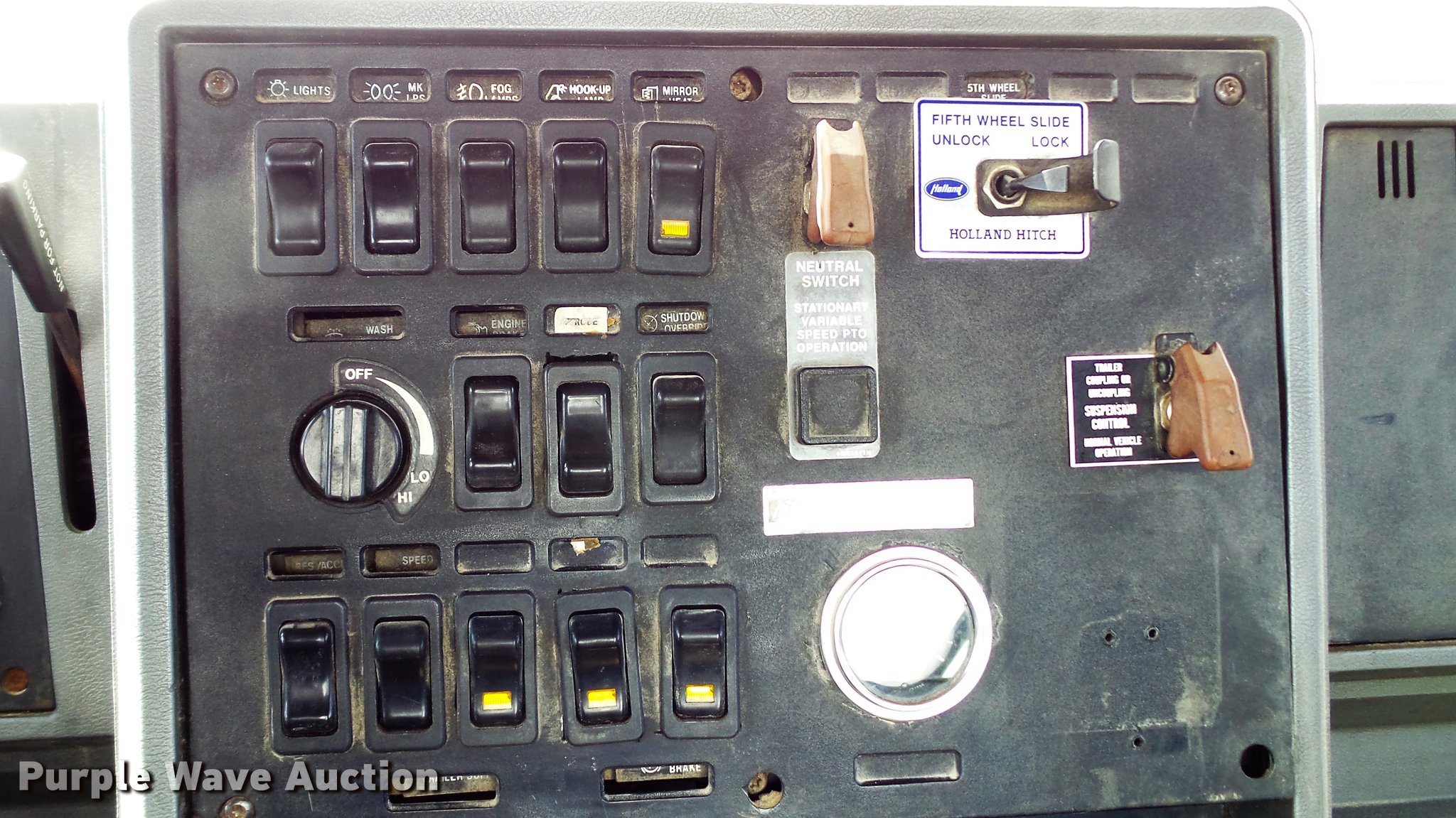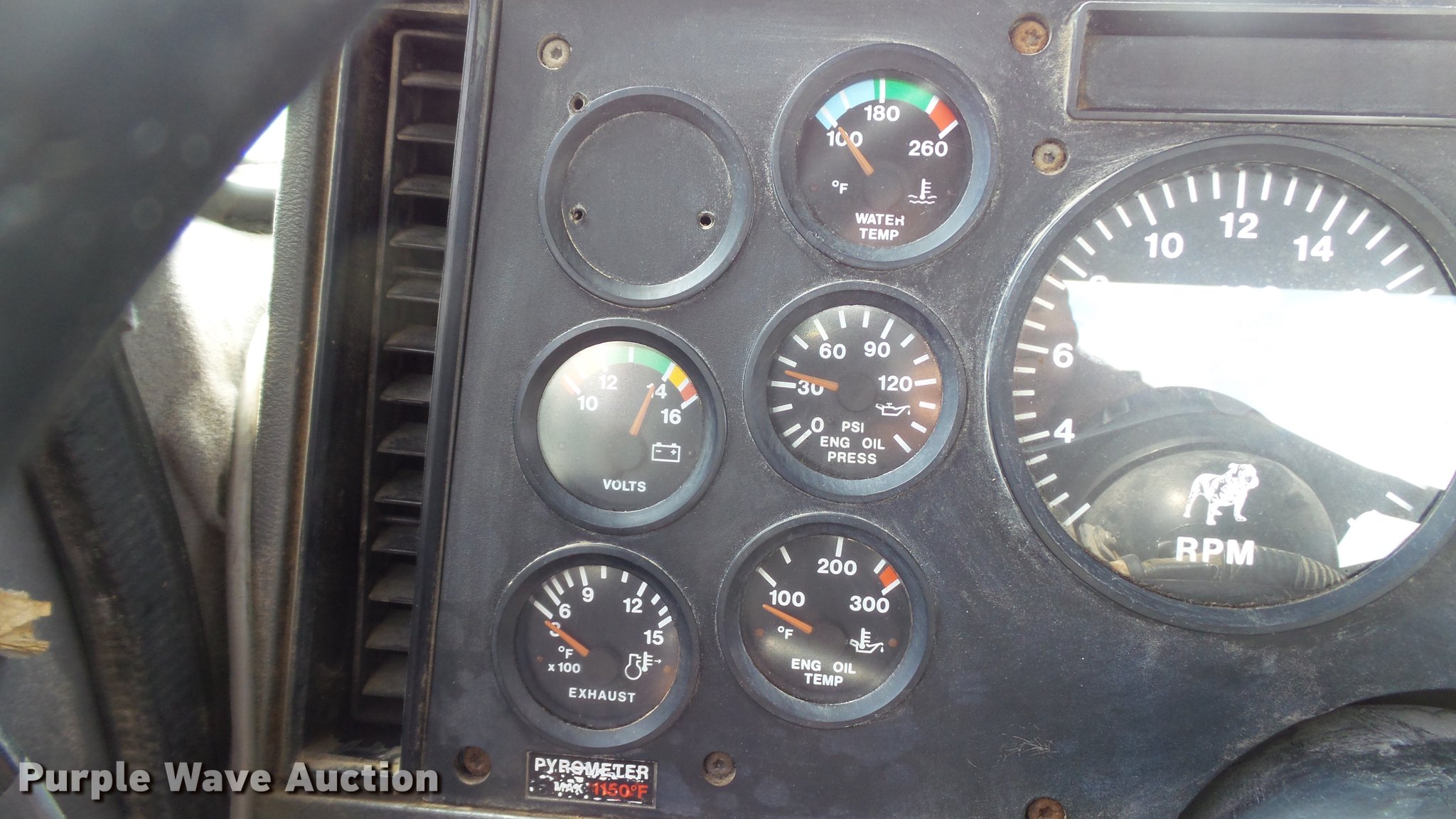 Purple Wave is selling a used Truck Tractor in Missouri. This item is a 1994 Mack CH613 semi truck with the following: 856,633 miles on odometer, 27,363 hours on meter, Mack 12.0L L6 turbo diesel engine, Maxitorque T2130 13 speed manual transmission, Tandem axle, AC and heat, Tilt, Cruise, AM/FM, Heated mirrors, Air suspension seat, Air ride cab, Beacon light, Block heater, Front tow hooks, Exterior visor, PTO, Wet kit, Single exhaust stack, Aluminum deck plate, Air operated sliding fifth wheel plate, Dual fuel tanks, Stainless steel quarter fenders, 206" wheelbase, Air suspension, Air brakes, Engine brake, Aluminum outer wheels, Steel inner wheels, 285/75R24.5 tires, Exhaust leak between turbo and exhaust manifold