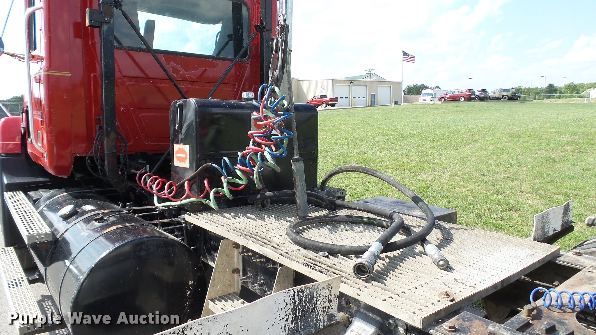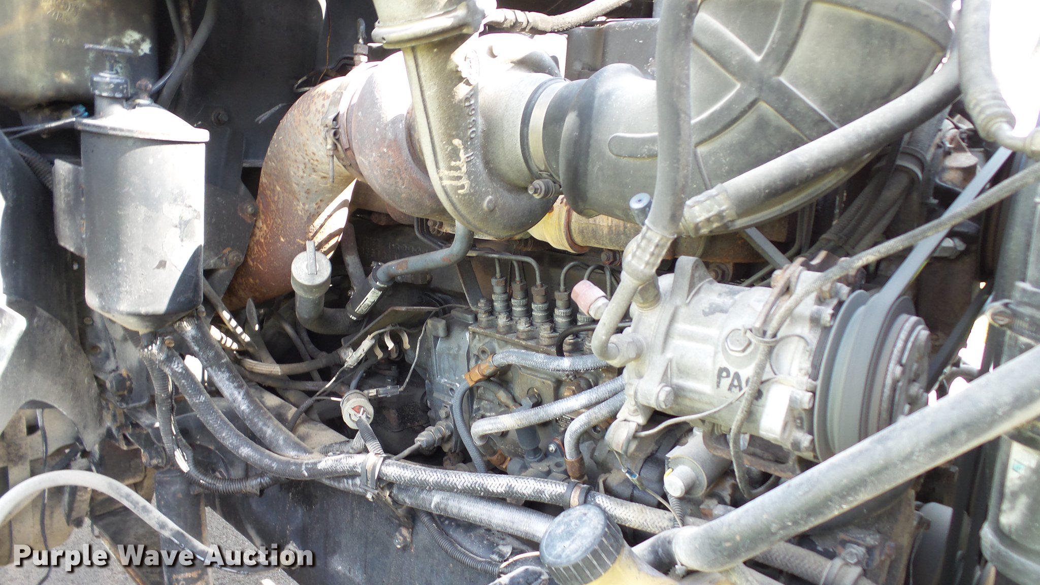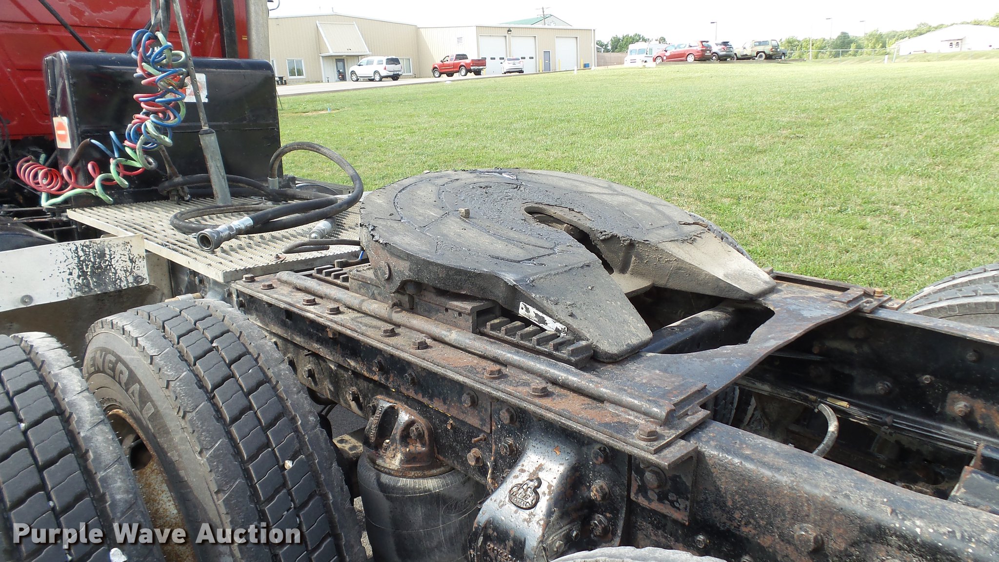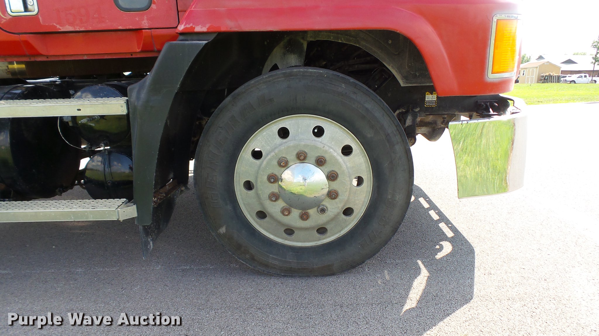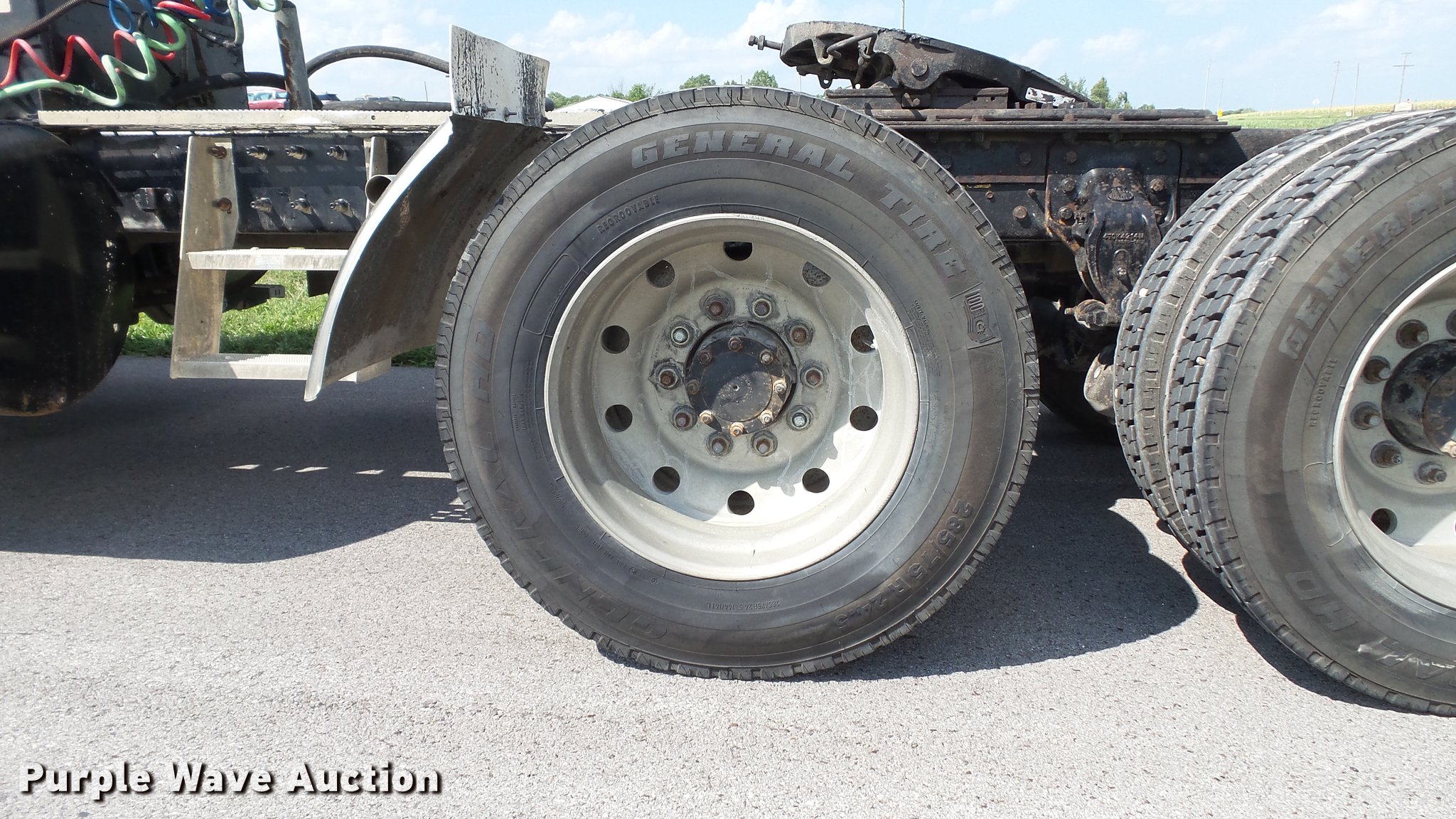 Purple Wave is selling a used Truck Tractor in Missouri. This item is a 1994 Mack CH613 semi truck with the following: 856,633 miles on odometer, 27,363 hours on meter, Mack 12.0L L6 turbo diesel engine, Maxitorque T2130 13 speed manual transmission, Tandem axle, AC and heat, Tilt, Cruise, AM/FM, Heated mirrors, Air suspension seat, Air ride cab, Beacon light, Block heater, Front tow hooks, Exterior visor, PTO, Wet kit, Single exhaust stack, Aluminum deck plate, Air operated sliding fifth wheel plate, Dual fuel tanks, Stainless steel quarter fenders, 206" wheelbase, Air suspension, Air brakes, Engine brake, Aluminum outer wheels, Steel inner wheels, 285/75R24.5 tires, Exhaust leak between turbo and exhaust manifold