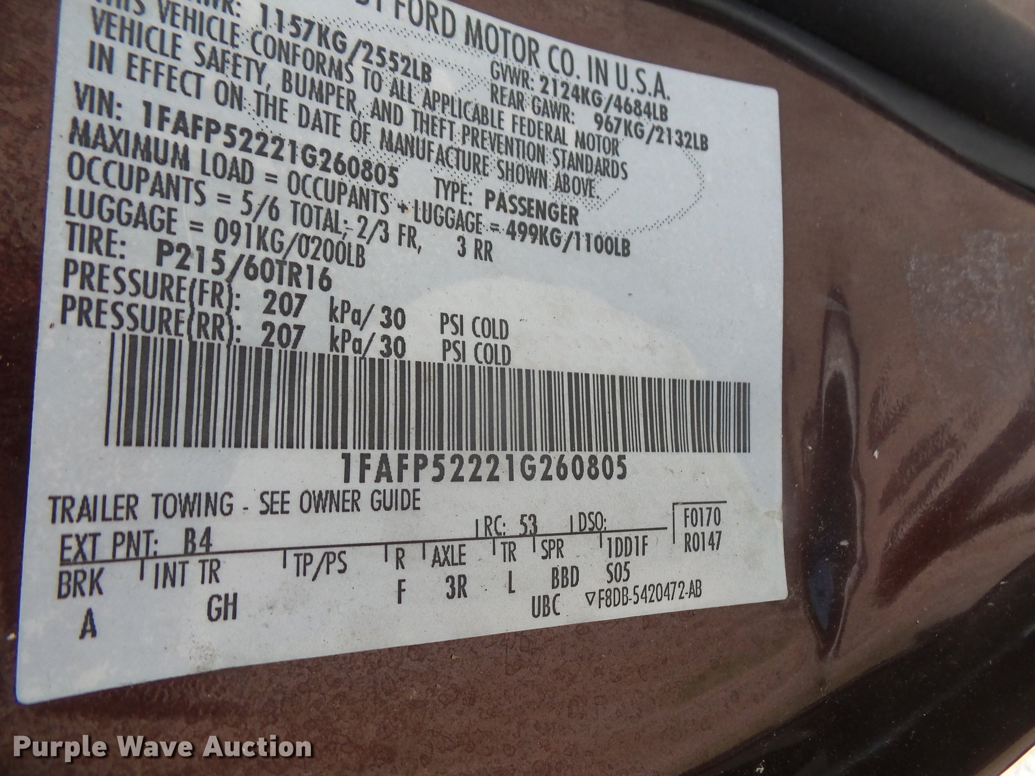 Purple Wave is selling a used Passenger Vehicle in Kansas. This item is a 2001 Ford Taurus LX with the following: 86,929 miles on odometer, 3.0L V6 OHV 12V FFV gas engine, Automatic transmission, AC and heat, Tilt, Cruise, Power windows, locks, and mirrors, Cloth interior, 215/60R16 tires, Radiator issues