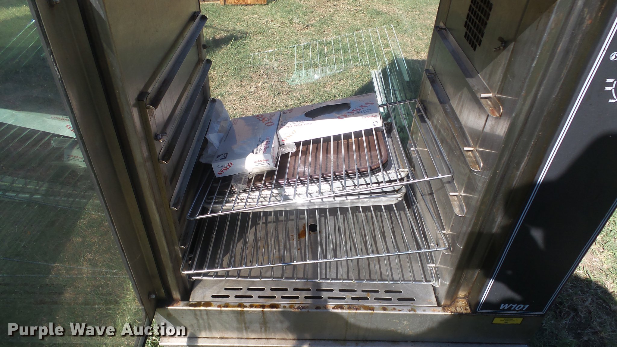 Purple Wave is selling a used Restaurant Equip. in Kansas. This item is a Hobart HR0101 rotisserie oven with the following: Digital display, Hobart W101 holding oven, Three phase, Unknown operating condition