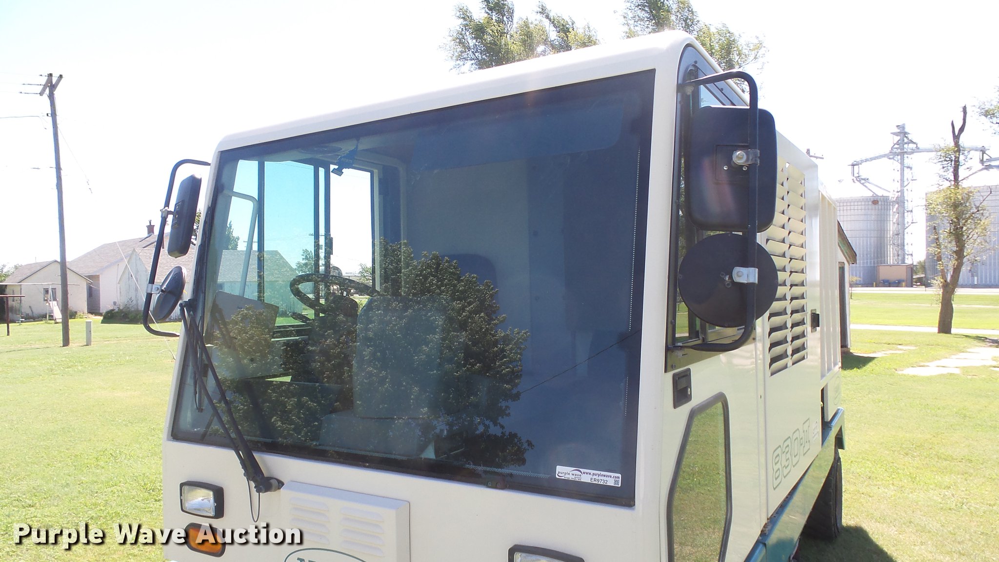 Purple Wave is selling a used Sweeper in Kansas. This item is a Tennant 830-II sweeper with the following: 5,522 miles on odometer, 1,469 hours on meter, Four cylinder diesel engine, Hydrostatic transmission, All wheel steer, AC and heat, AM/FM, Front and side work lights, Approx. 50"W plastic main broom, Gutter broom, Vacuum hose, Water tank, 7x12 tires, Serial 830II-4756